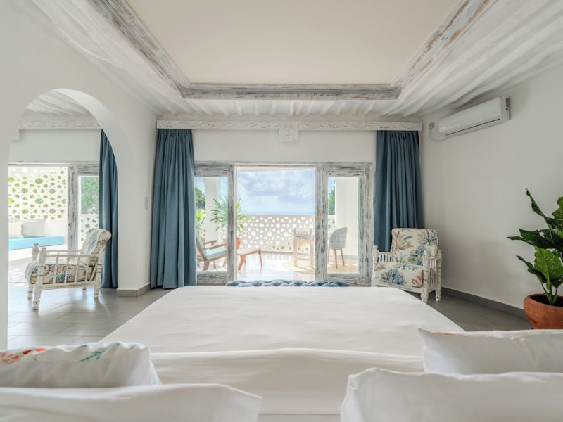 Located on Chale Island, Kenya, Chale Island Resort is a private retreat surrounded by a white sandy beach and indigenous forest, offering sea views. The resort features rooms, Bandas, and suites decorated in a Swahili style. Guests can enjoy a pristine, secluded beach with coral reefs and encounter indigenous colobus monkeys amidst diverse flora and fauna. Dining options include restaurants serving international cuisine, seafood, and dishes made with local ingredients, with the option of beach dining. Activities include snorkeling, diving (PADI-certified courses available), kayaking, windsurfing, paddleboarding, and guided tours to a nearby village. The resort boasts a full-service spa with various treatments, a saltwater pool, and a fitness center. Additional amenities include Wi-Fi, concierge service, a gift shop, laundry facilities, and airport shuttle (surcharge), a 24-hour front desk, and luggage storage. Guests can also enjoy a cafe and unwind at the bars. Room service and daily housekeeping are available. The Chale Island Resort is a Tourist hotel. Located in Citycenter area. The nightlife/restaurants are located in the hotel.
