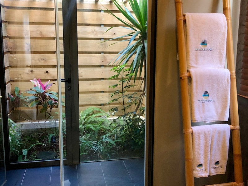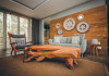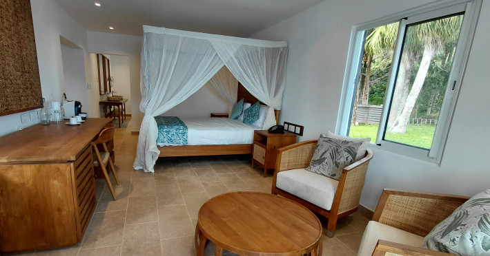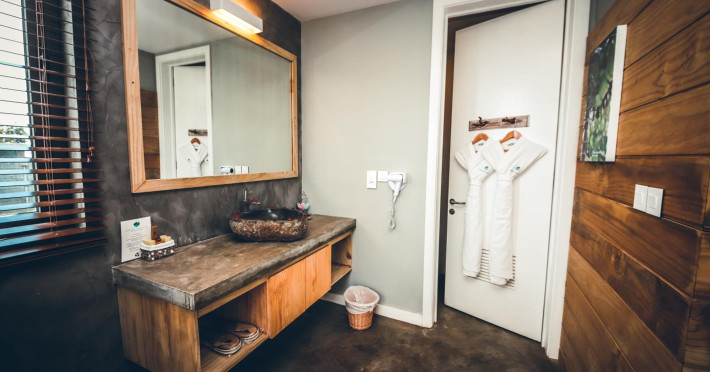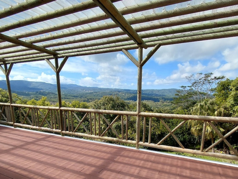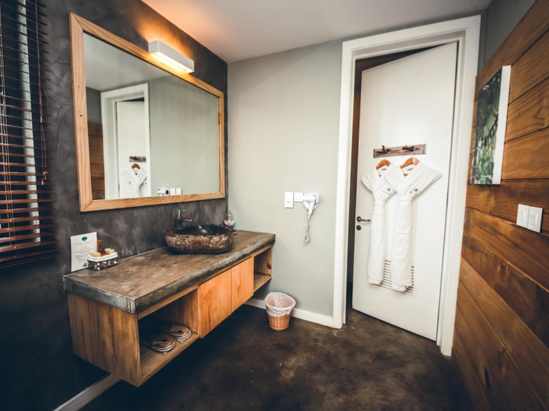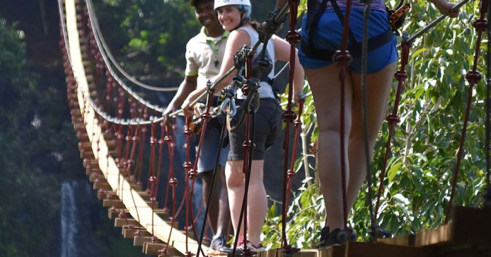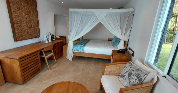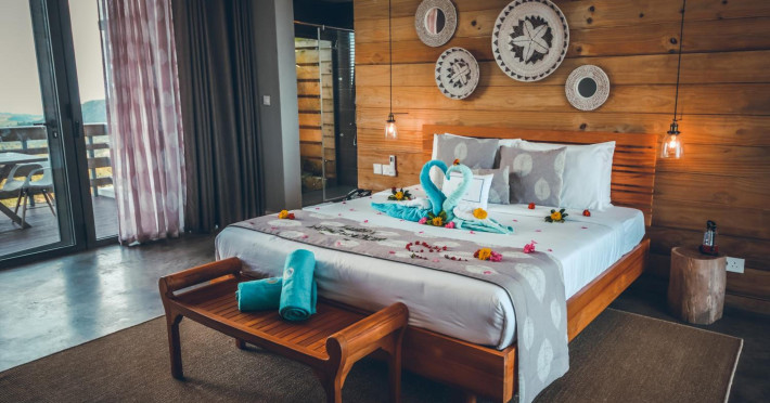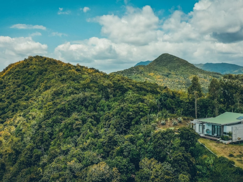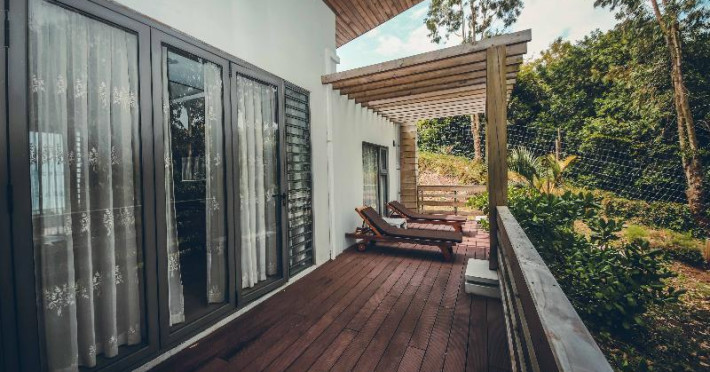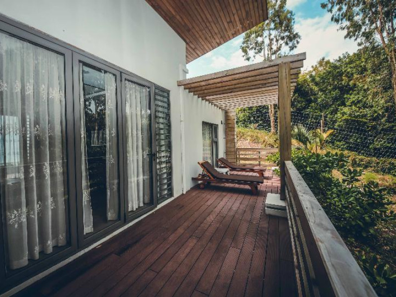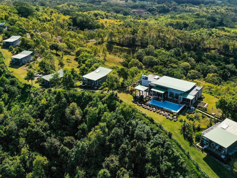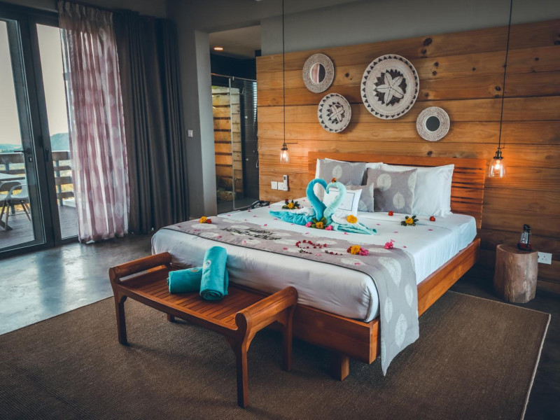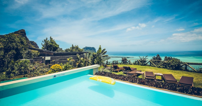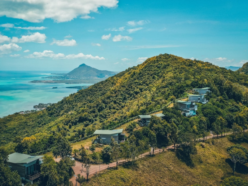Chalets Chamarel is located in the mountains of Chamarel, Mauritius, uniquely situated at the top of a natural forest. The property offers unparalleled panoramic views of the west coast, the Indian Ocean, and surrounding forests. The hotel features 11 chalets built spaciously apart for privacy. Guests can enjoy an outdoor pool, free Wi-Fi, and complimentary self-parking. An airport shuttle service is available for a surcharge. The SeaForest Restaurant offers dining with scenic views. A complimentary continental breakfast is served daily. Services include a 24-hour front desk, multilingual staff, concierge services, and luggage storage. All rooms are air-conditioned and have a private bathroom. The Chalets Chamarel is a hotel.