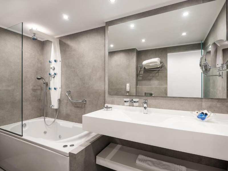 Camerele cu aer condiționat au balcoane mobilate și vedere la mare, la piscine sau la grădină.
