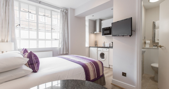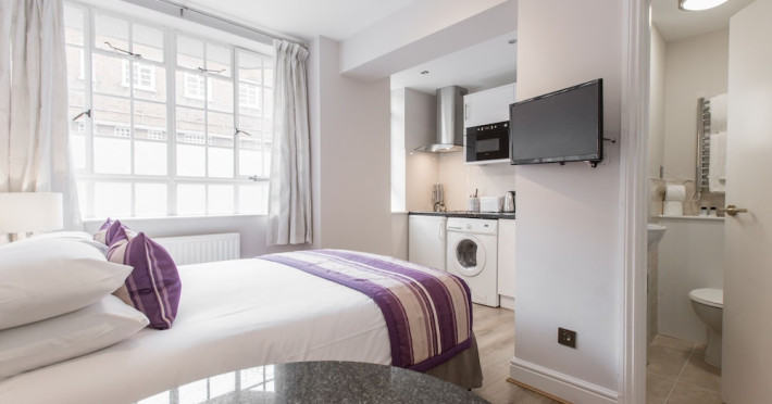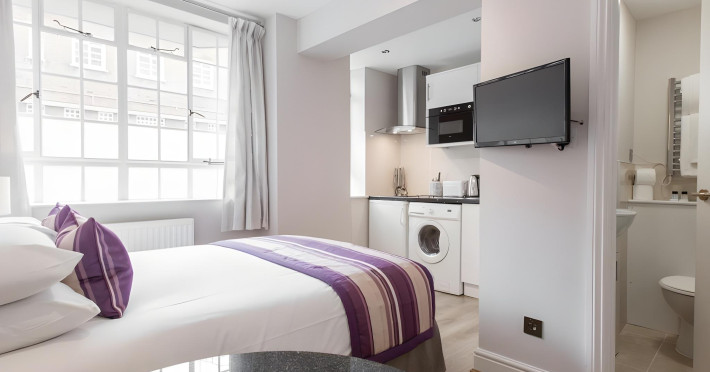 The individually decorated apartments feature kitchenettes with a refrigerator, stovetop, microwave/oven grill, and washer/dryer. Each apartment includes satellite TV and a private bathroom. Complimentary wireless internet access is available. Linen and towel changes are provided weekly. The property is a smoke-free zone and offers luggage storage, safety deposit boxes, and accessible parking. Guests have access to a fitness center, massage, and spa services. The Chelsea Cloisters Serviced Apartments is a Tourist hotel. The nightlife/restaurants are easily accessible by taxi or bus from the hotel.