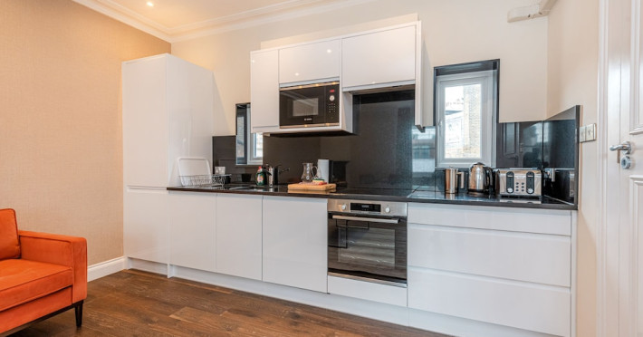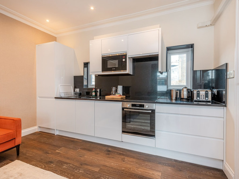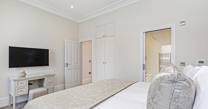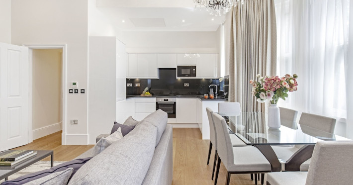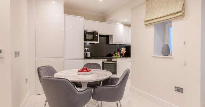 Chesham Court offers spacious serviced apartments in London's Belgravia district, adjacent to Knightsbridge and Sloane Square. Housed in a mid-Victorian mansion, the apartments range from one to three bedrooms, including a penthouse option. Each individually decorated apartment features a fully equipped kitchen with cooking facilities, a dishwasher, and a washer/dryer. Guests can enjoy 24-hour reception and concierge services, lift access, regular linen changes, and weekday maid service. Complimentary Wi-Fi, toiletries, a hairdryer, and an in-room safe are provided. Heating and air conditioning are included, and baby cots and highchairs are available upon request. The property also offers a secure entry system and luggage storage. Harrods and Hyde Park are within a 10-minute walk. The Chesham Court is a hotel.