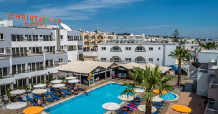 In Ayia Napa (Ayia Napa City Center). With a stay at Christabelle Hotel Apartments, youll be centrally located in Ayia Napa, a 5-minute drive from Nissi Beach and 13 minutes from Fig Tree Bay. This aparthotel is 3.2 mi (5.2 km) from Makronissos Beach and 0.6 mi (0.9 km) from THALASSA Municipal Museum. Make yourself at home in one of the 107 air-conditioned rooms featuring kitchenettes with refrigerators and stovetops. Rooms have private balconies or patios. Complimentary wireless internet access is available to keep you connected. Conveniences include phones, as well as safes and coffee/tea makers. Grab a bite from the snack bar/deli serving guests of Christabelle Hotel Apartments. Relax with your favorite drink at the bar/lounge or the poolside bar. Buffet breakfasts are available daily from 8 AM to 10:30 AM for a fee. Enjoy recreation amenities such as a seasonal outdoor pool or take in the view from a terrace.
