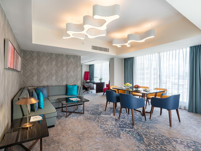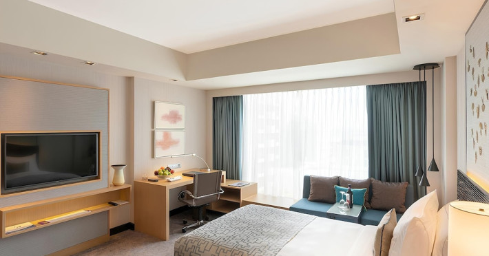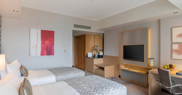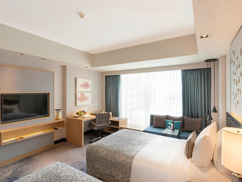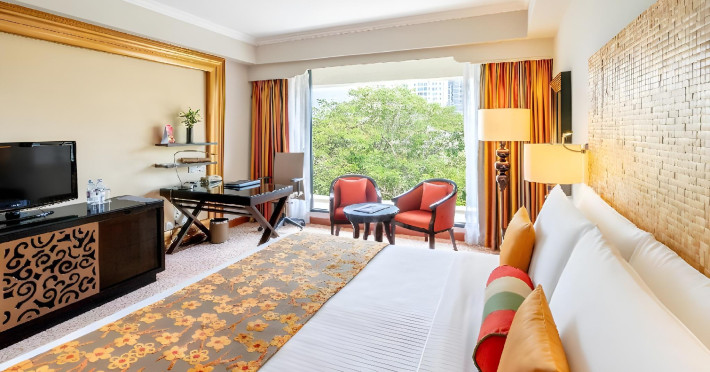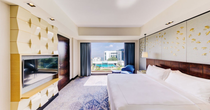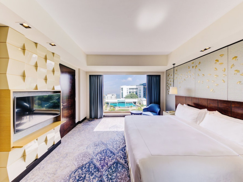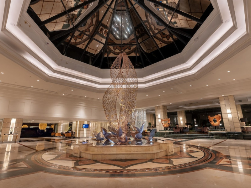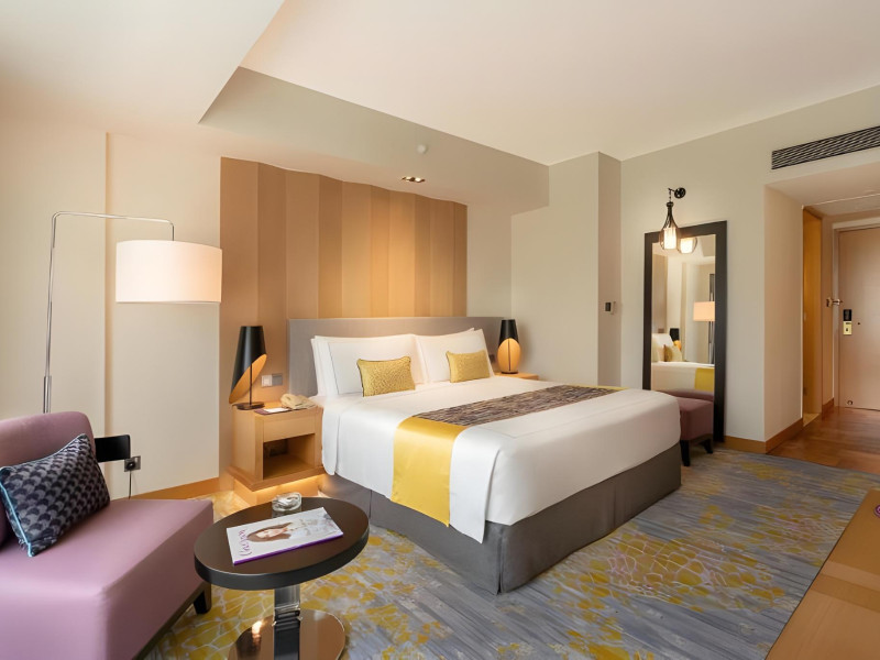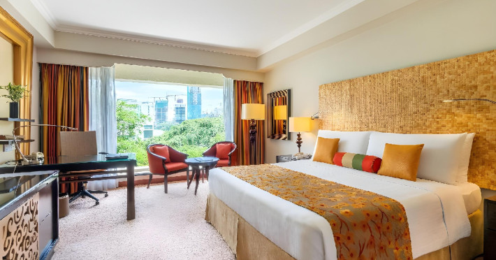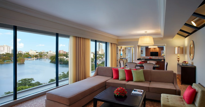 Cinnamon Grand Colombo is a centrally located, family-friendly hotel offering luxurious accommodations and a range of amenities. It is situated on a main road in the heart of the city, near Crescat Shopping Mall, and within walking distance of attractions like the High Commission of India and Galle Face Green. The hotel features 501 air-conditioned rooms with minibars, plasma televisions, complimentary wireless internet access, laptop-compatible safes, and private bathrooms with complimentary toiletries. Guests can enjoy multiple dining options with 14 restaurants, a bar/lounge, and 24-hour room service. Recreational facilities include 2 outdoor swimming pools, a fitness center, a full-service spa with massages, body treatments, and facials, as well as a sauna, steam room, and hot tub. Additional amenities include complimentary wireless internet access, concierge services, a 24-hour business center, conference space, meeting rooms, express check-out, and free valet parking. The hotel also offers services such as car hire, laundry, dry cleaning, and daily housekeeping. Buffet breakfasts are available daily for a fee. The hotel is 36.1 km from Bandaranaike Intl. Airport (CMB). The Cinnamon Grand Colombo is a Business, Child Friendly, Tourist hotel. The nightlife/restaurants are located in the hotel.