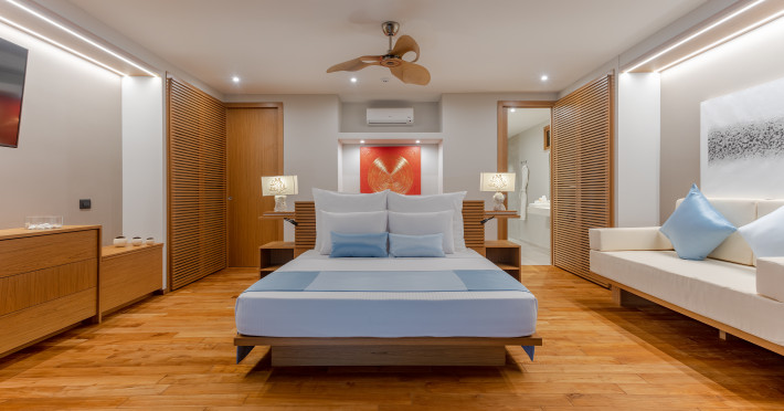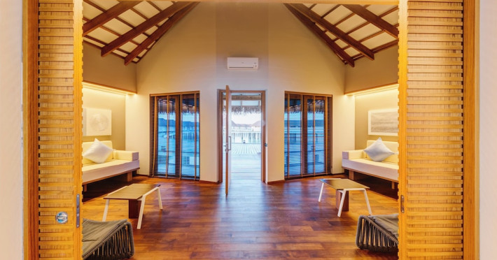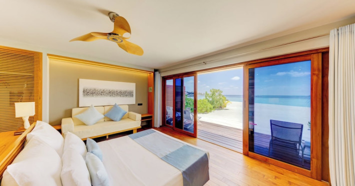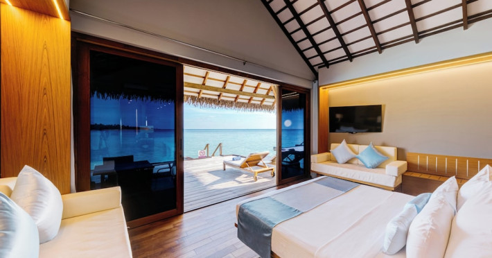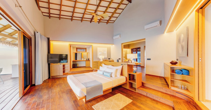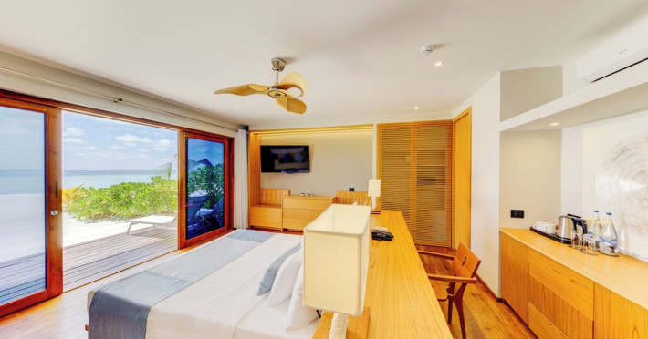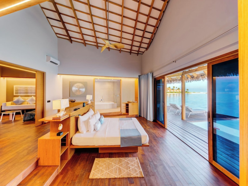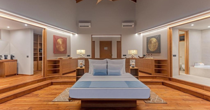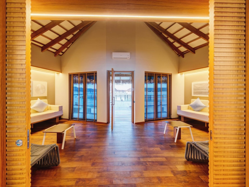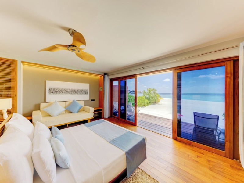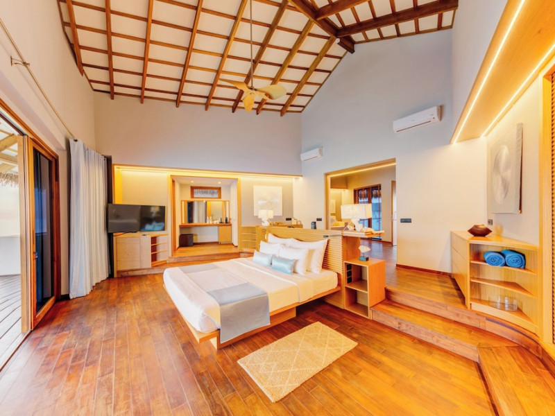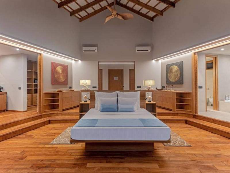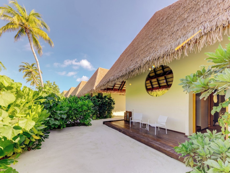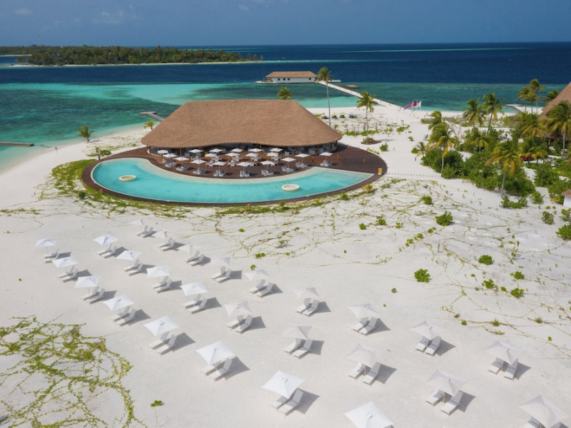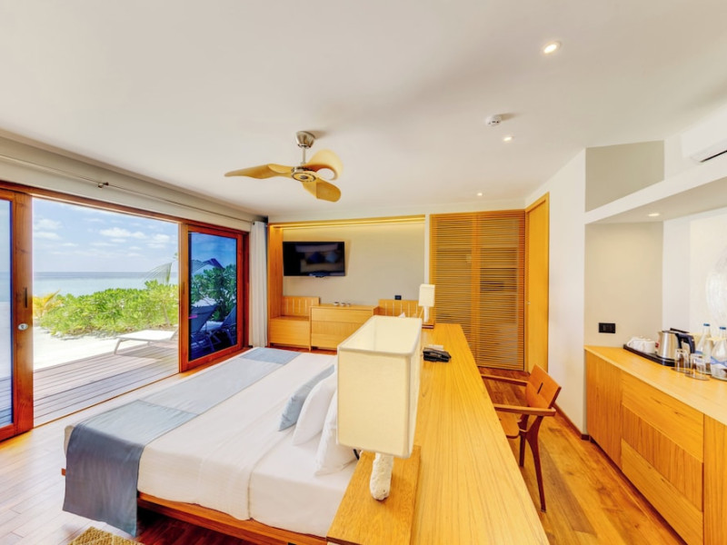Cinnamon Velifushi Maldives is a 5-star beachfront resort in Keyodhoo, South Male Atoll, offering 90 guest rooms. The resort features a restaurant serving international cuisine, a poolside bar, and three additional bars/lounges. Room service is available during limited hours. Amenities include a full-service spa, outdoor pool (note: pool closed May 1-31, 2025), fitness center, complimentary Wi-Fi, gift shops, tour/ticket assistance, and a kids' club. Guest rooms offer minibars, LCD televisions, satellite programming, private bathrooms with showers, complimentary toiletries, hair dryers, phones, safes, and desks. All-inclusive rates are available, though some restaurants, special dinners, beverages, and amenities may incur extra charges. The resort also offers evening entertainment, a 24-hour front desk, multilingual staff, dry cleaning/laundry services, and activities such as billiards and table tennis. Nearby attractions include Aarah Island, Thinadhoo Harbor, and Felidhoo Harbor. Maafushi is 3.5 km away. The Cinnamon Velifushi Maldives is a hotel.