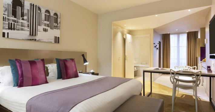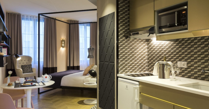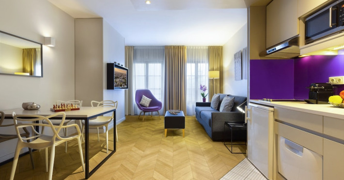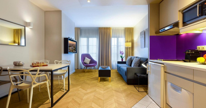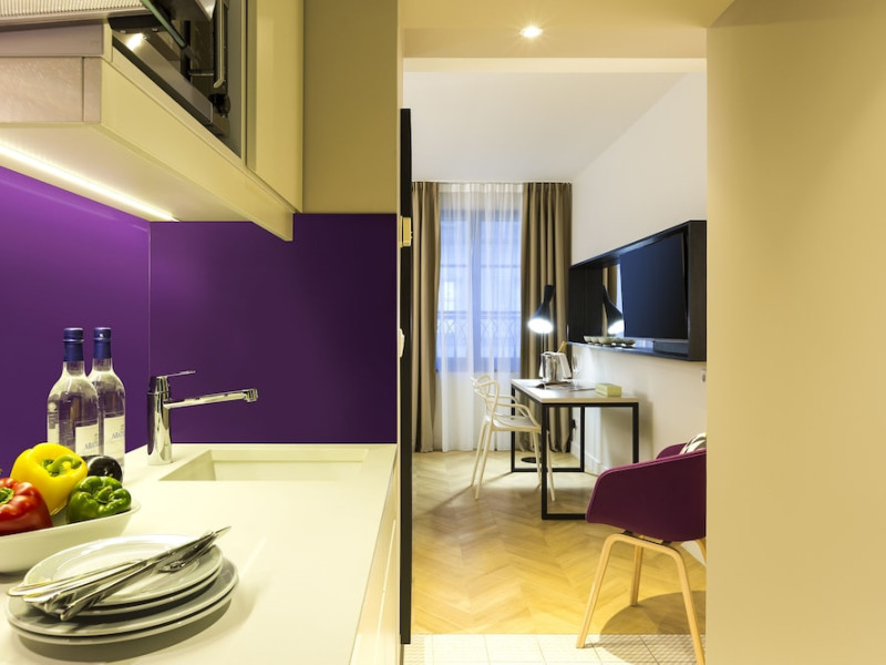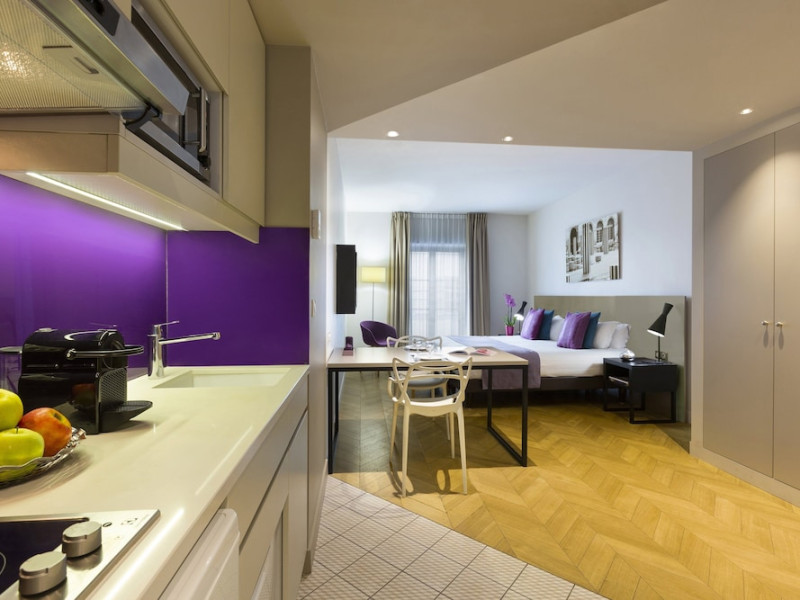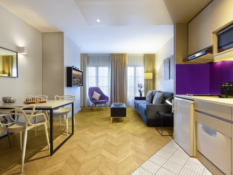 Citadines Opéra Paris, a 4-star aparthotel, offers 72 guestrooms with kitchenettes (refrigerators and stovetops), complimentary wired and wireless internet, flat-screen TVs with satellite programming, phones, safes, and desks. Located in the heart of Paris, it's within a 10-minute walk of Palais Garnier and Galeries Lafayette, and close to Place Vendôme and Rue de Rivoli. Nearby attractions include the Grevin Museum, Grand Rex Cinema, Paris Olympia, and numerous boutiques and restaurants in the Richelieu-Drouot district. Amenities include a terrace, a business center, complimentary newspapers in the lobby, dry cleaning/laundry services, and concierge services. A buffet breakfast is available daily for a fee (weekdays 7:00 AM-10:00 AM, weekends 7:30 AM-10:30 AM). Self-parking is available onsite (fees apply). The nearest airports are Paris Charles de Gaulle (CDG), Paris Orly (ORY), Paris Beauvais (BVA), and Paris (XCR-Chalons-Vatry). The Citadines Opera Paris is a Tourist hotel. The nightlife/restaurants are easily accessible by taxi or bus from the hotel.