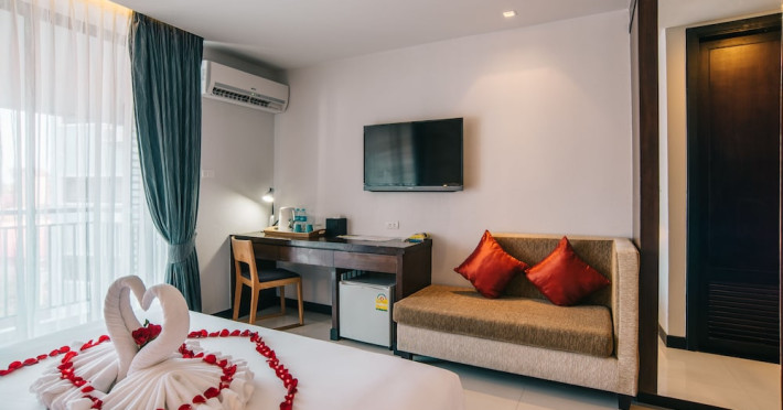 Citrus Patong Hotel by Compass Hospitality is a 4-star hotel centrally located in Patong, within walking distance of Patong Beach and Jungceylon Shopping Center. It offers air-conditioned rooms with a balcony, free Wi-Fi, a flat-screen TV, a desk, a safety deposit box, a refrigerator, and a private bathroom with a shower, complimentary toiletries, a hairdryer, a bathrobe, and slippers. In-room amenities also include a kettle and wardrobe. Guests can enjoy an outdoor pool, a fitness center, and on-site dining at the restaurant, which serves a daily breakfast buffet. Additional amenities include a 24-hour front desk, luggage storage, dry cleaning/laundry services, and a computer station. An airport shuttle is available for a surcharge. Phuket International Airport is approximately 36 km away. The Citrus Patong by Compass Hospitality is a Resort hotel. The nightlife/restaurants are easily accessible by taxi or bus from the hotel.