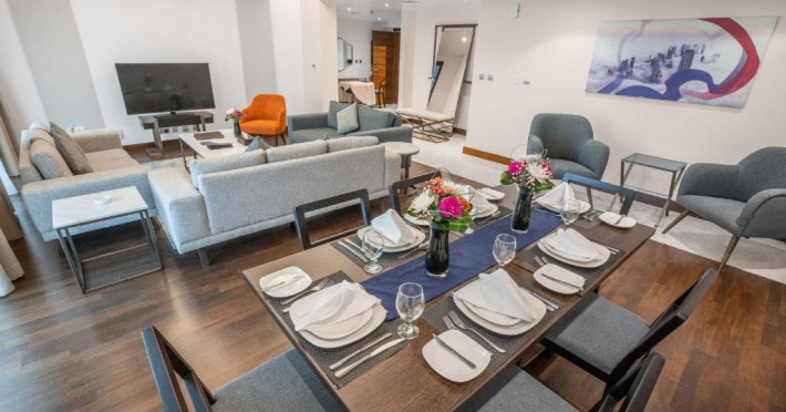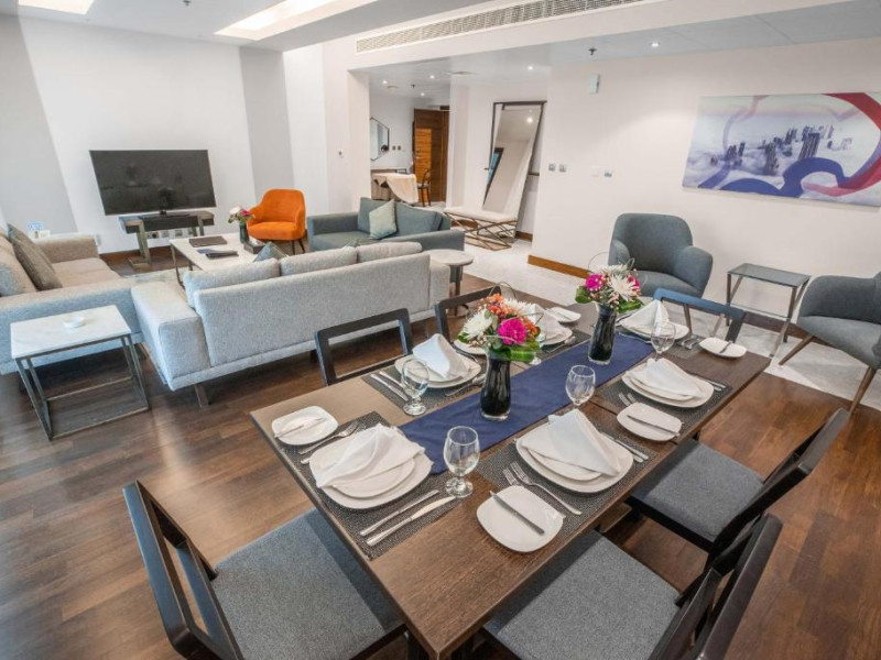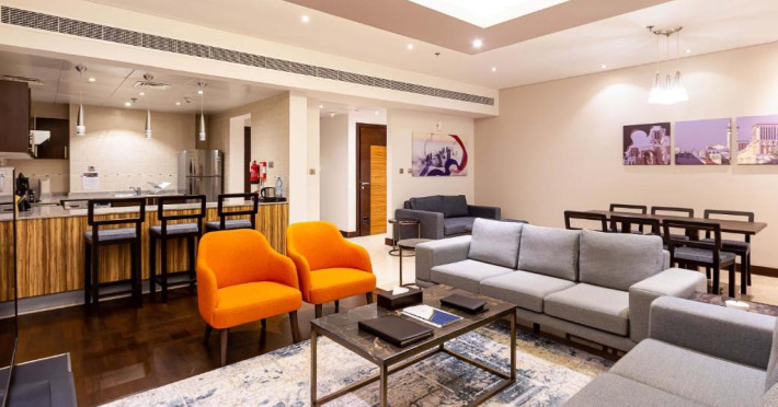 Hotelul pune la dispoziție 271 de apartamente de lux, cu aer condiționat și design modern. Oaspeții beneficiază de articole de toaletă și serviciul zilnic de menaj. Fiecare apartament are zonă separată de living/de luat masa și bucătărie dotată complet, cu aragaz cu capac, mașină de spălat cu uscător încorporat, frigider, prăjitor de pâine, fierbător electric și cuptor cu microunde. Cele mai multe apartamente oferă balcon.