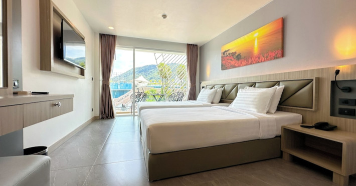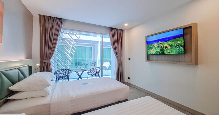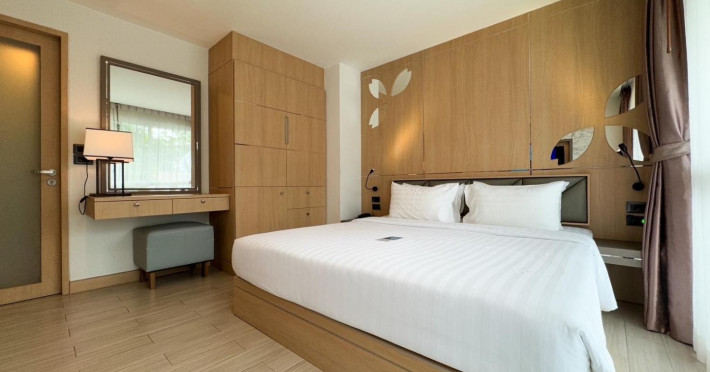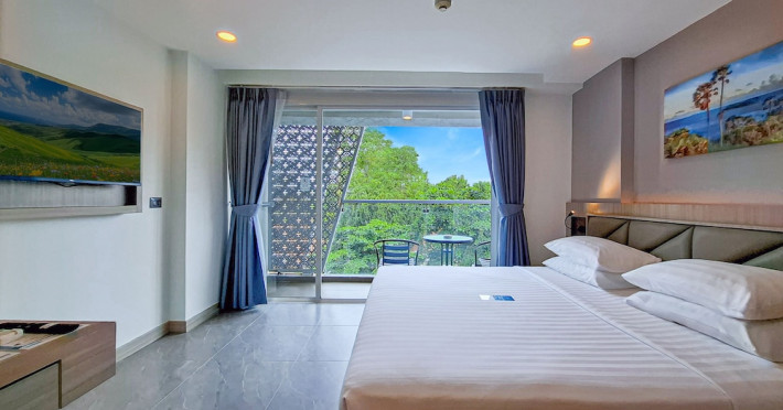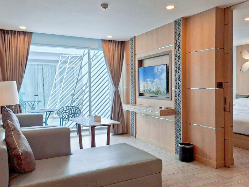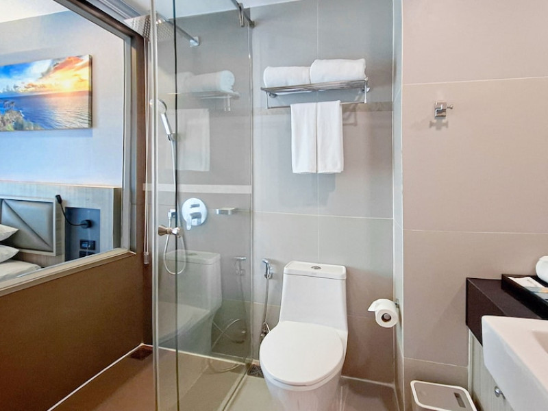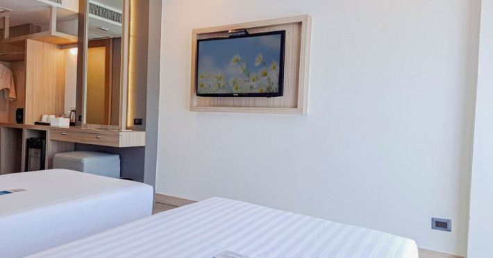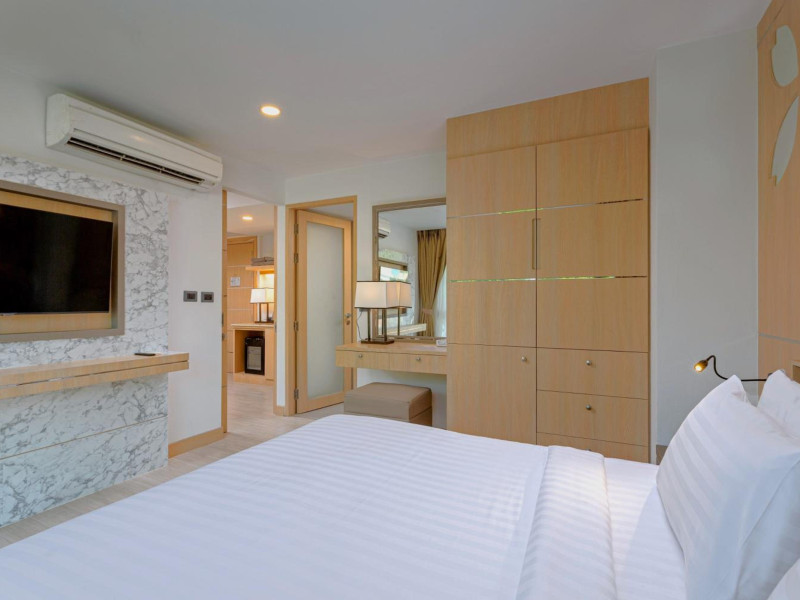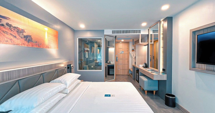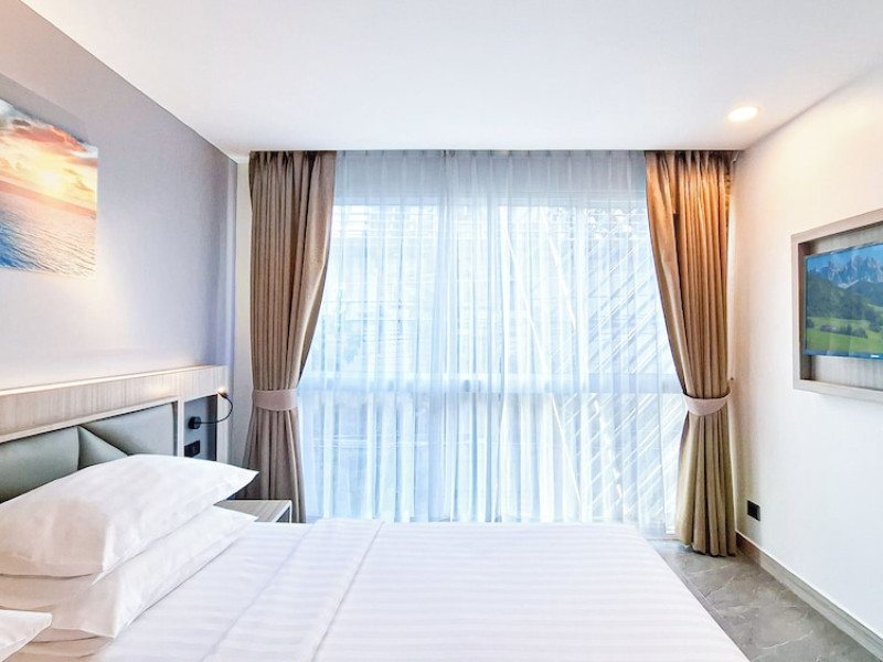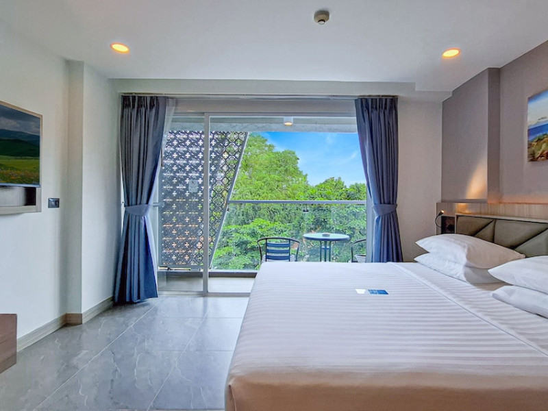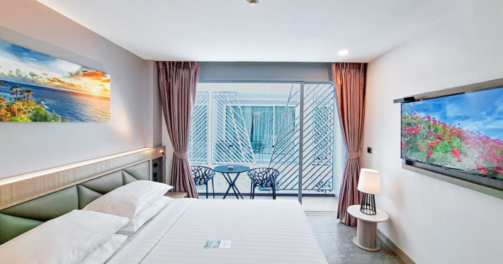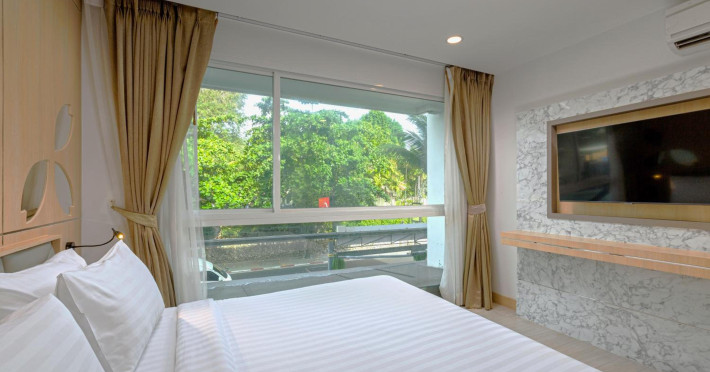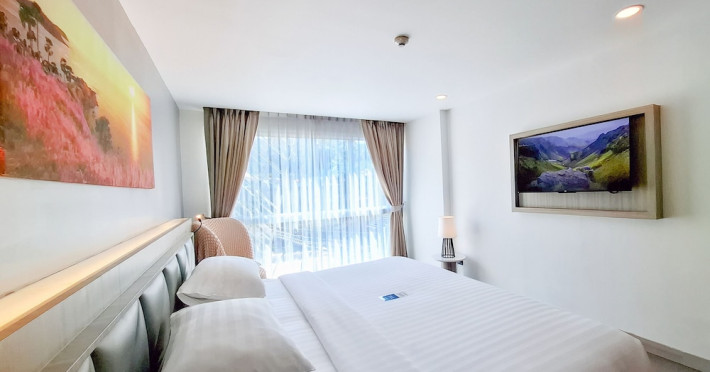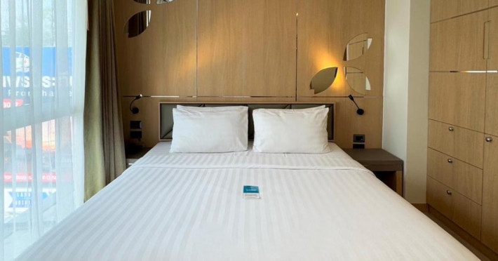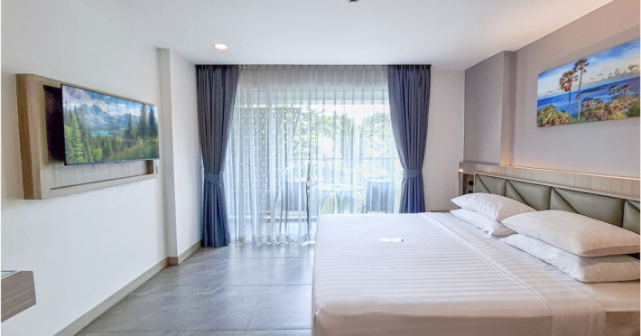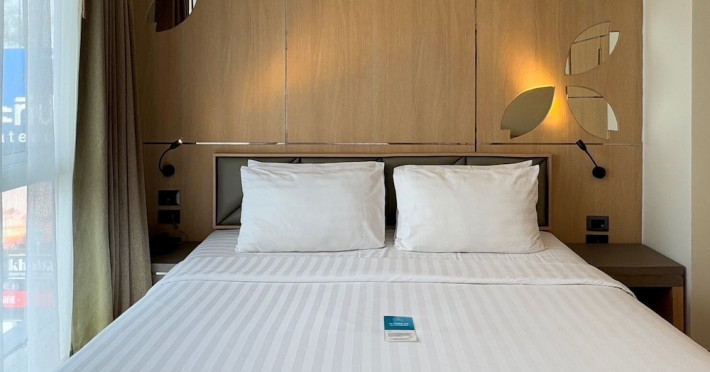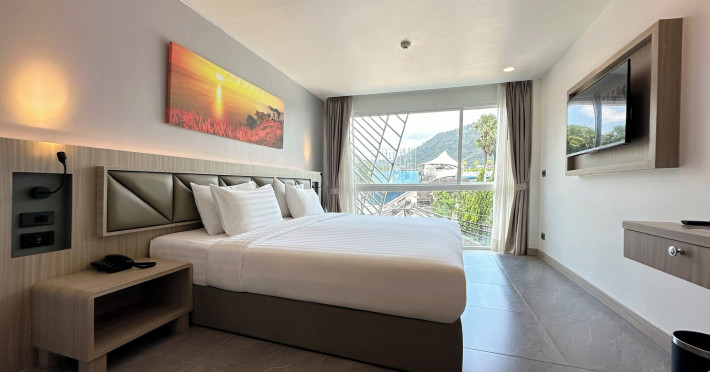 Clarian Hotel Beach Patong, located in the heart of Patong on Phuket's west coast, offers a mix of modern design and natural elements. It is a short walk from Patong Beach and Bangla Road. The hotel features air-conditioned rooms with minibars, Smart TVs, memory foam beds with Frette Italian sheets, digital programming, smart speakers, and complimentary Wi-Fi. Bathrooms include showers with rainfall showerheads and complimentary toiletries. Guests can enjoy two outdoor swimming pools, a health club, and a sauna. Dining options include two restaurants, a coffee shop/cafe, a bar/lounge, and a swim-up bar. Buffet breakfast is available. Additional amenities include a 24-hour business center, concierge services, dry cleaning/laundry services, and airport/bus station shuttle services (surcharge). Nearby attractions include Patong Beach, Bangla Road, and Jungceylon Shopping Center. Phuket International Airport is approximately 32-35 km away. The Clarian Hotel Beach Patong is a hotel.