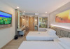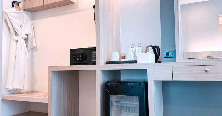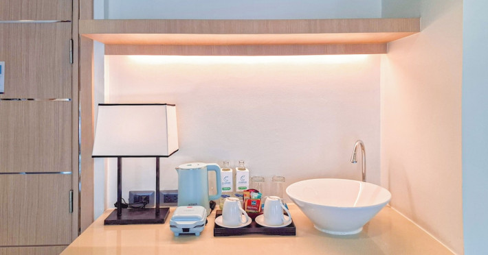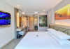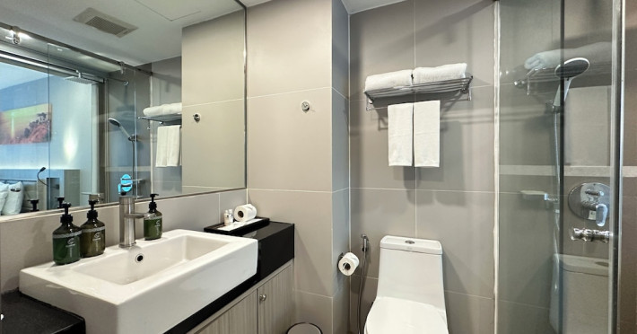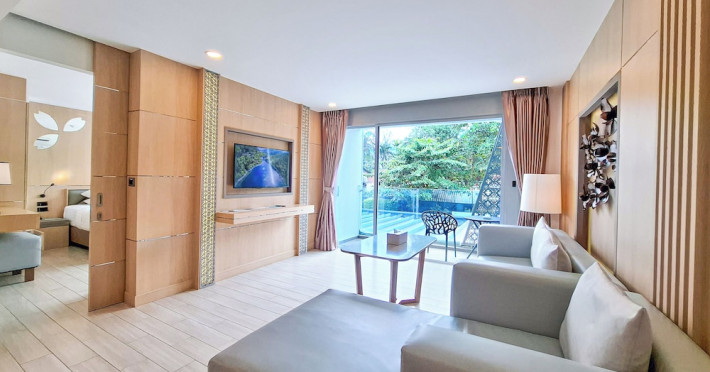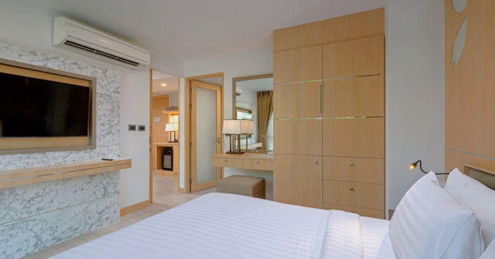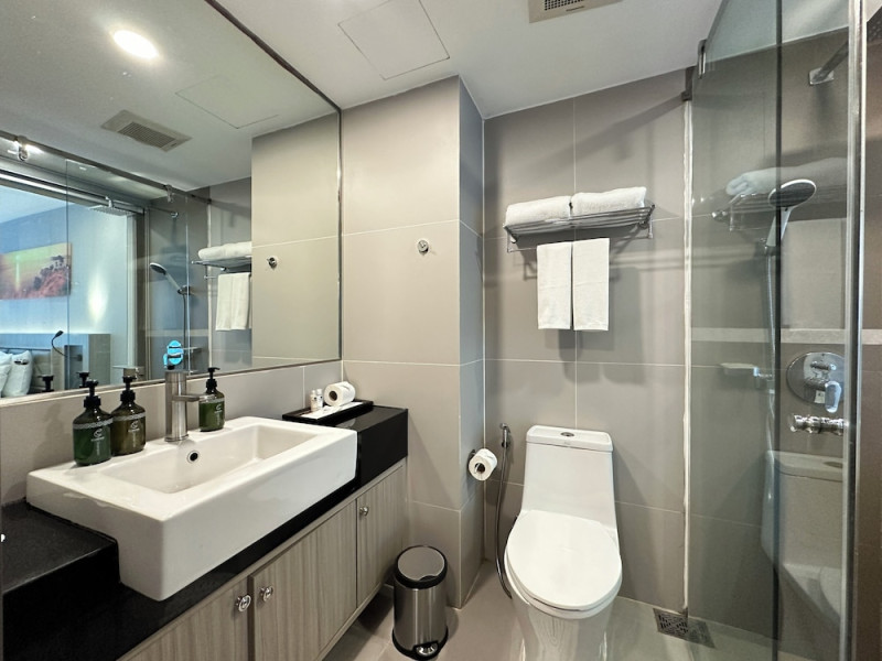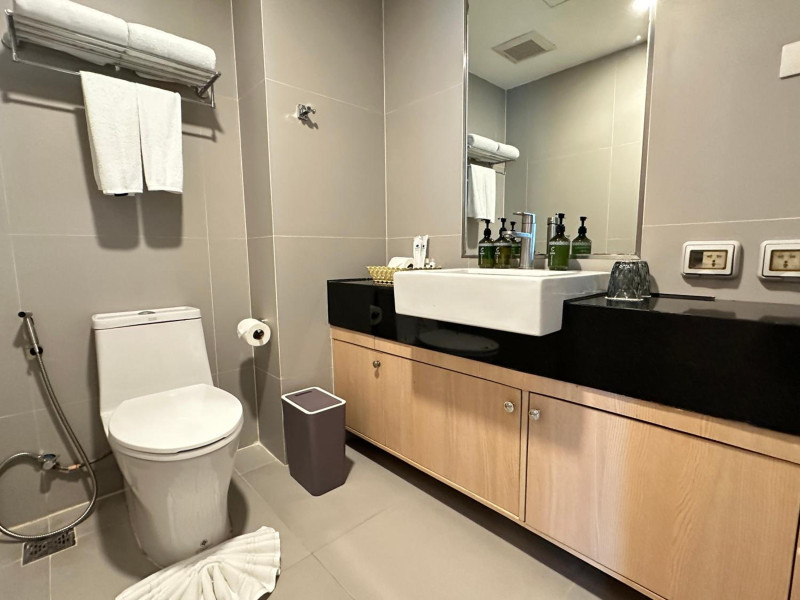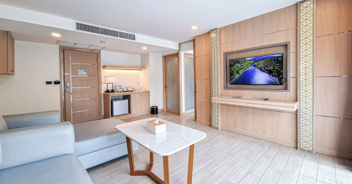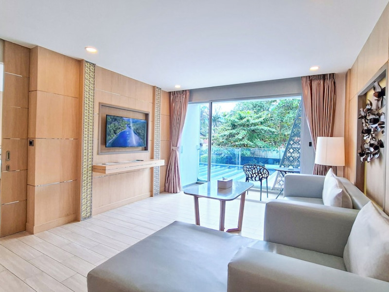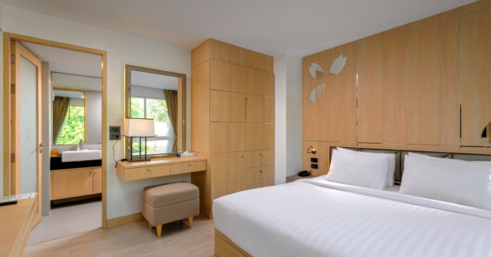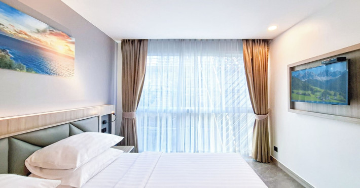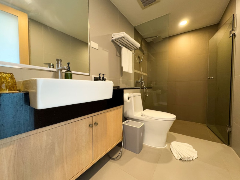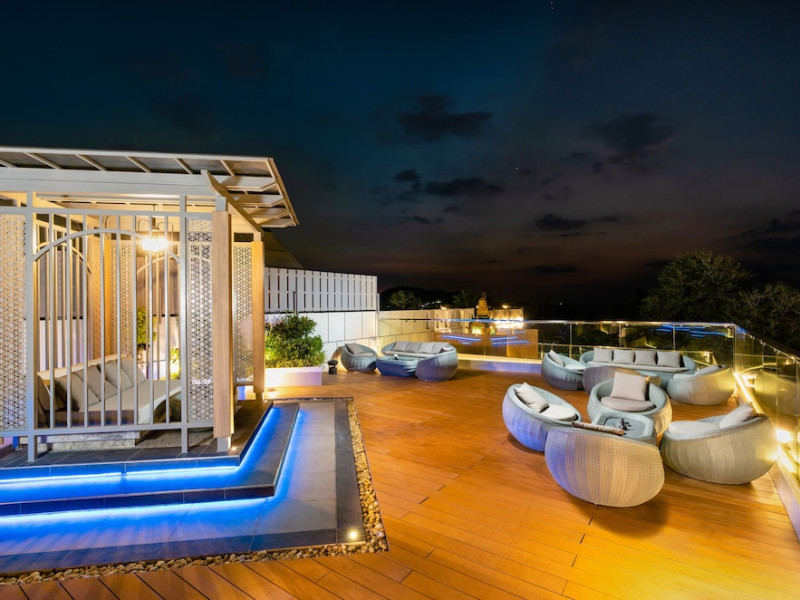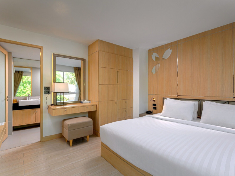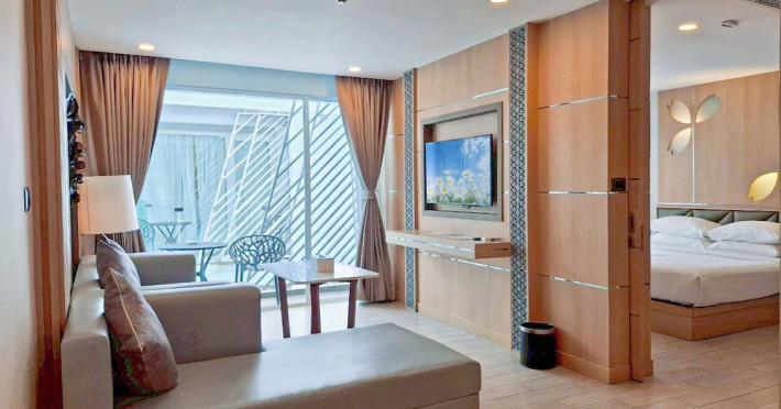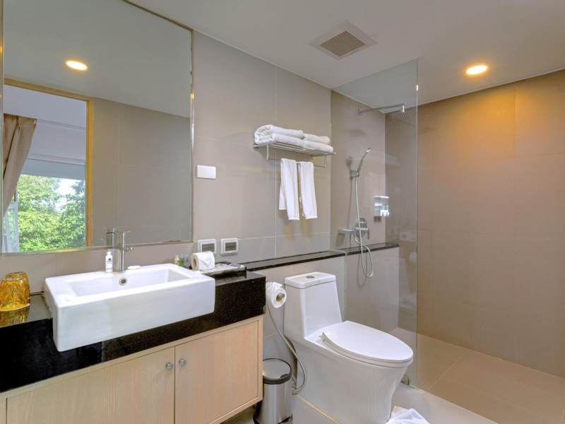 Clarian Hotel Beach Patong, located in the heart of Patong on Phuket's west coast, offers a mix of modern design and natural elements. It is a short walk from Patong Beach and Bangla Road. The hotel features air-conditioned rooms with minibars, Smart TVs, memory foam beds with Frette Italian sheets, digital programming, smart speakers, and complimentary Wi-Fi. Bathrooms include showers with rainfall showerheads and complimentary toiletries. Guests can enjoy two outdoor swimming pools, a health club, and a sauna. Dining options include two restaurants, a coffee shop/cafe, a bar/lounge, and a swim-up bar. Buffet breakfast is available. Additional amenities include a 24-hour business center, concierge services, dry cleaning/laundry services, and airport/bus station shuttle services (surcharge). Nearby attractions include Patong Beach, Bangla Road, and Jungceylon Shopping Center. Phuket International Airport is approximately 32-35 km away. The Clarian Hotel Beach Patong is a hotel.