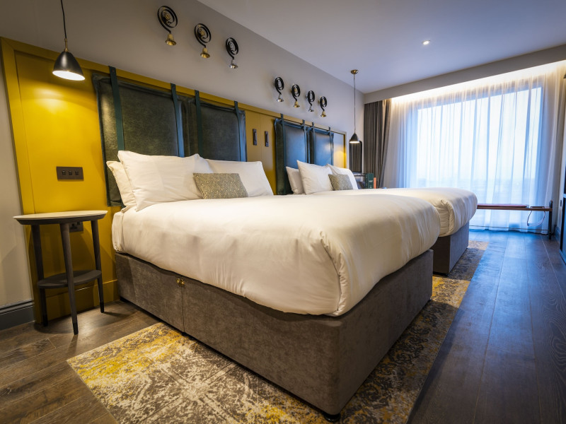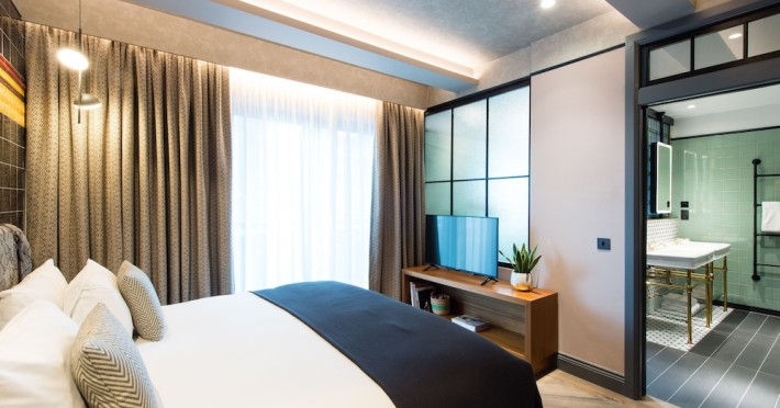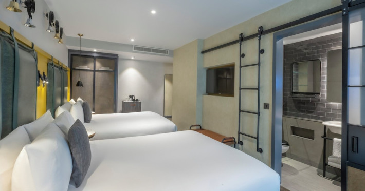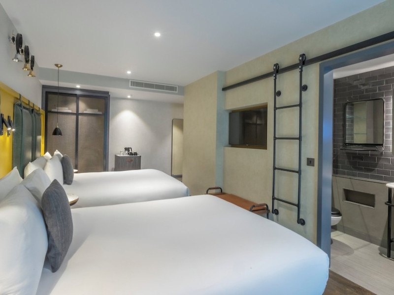 The hotel offers guestrooms featuring flat-screen televisions, complimentary wireless internet access, private bathrooms with rainfall showerheads, and complimentary toiletries. Conveniences include phones, safes, and complimentary bottled water.