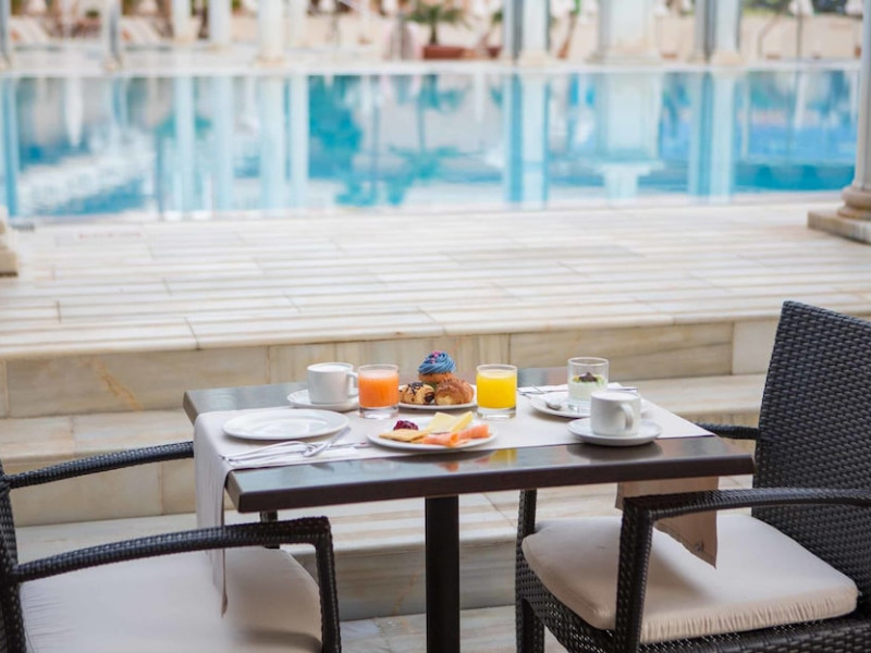 Located on the beachfront in Playa de Las Américas, within the Mare Nostrum Resort complex, Cleopatra Palace Hotel offers comfortable rooms with balconies. Guests can enjoy recreational amenities including an outdoor pool, hot tub, and bicycle rentals. The hotel features complimentary wireless internet access, concierge services, a business center, express check-in/check-out, and a banquet hall. Dining options include a buffet restaurant, 24-hour room service, a beach bar, and two additional bars. The hotel also offers a solarium with sun loungers and umbrellas, a Jacuzzi, and a children's pool. An airport shuttle is available for a surcharge, and free self-parking is provided. Each of the 431 air-conditioned rooms includes a minibar, satellite programming, and a bathroom with a shower/tub combination, complimentary toiletries, and a bidet. Nearby attractions include Arona Pyramid, El Camison Beach, and Las Vistas Beach. The Cleopatra Palace Hotel is a Tourist hotel. The nightlife/restaurants are located in the hotel.