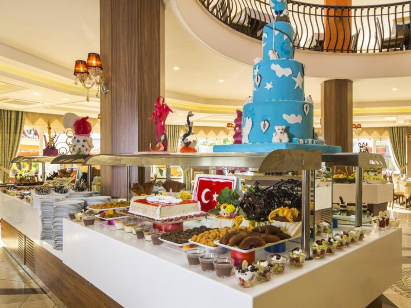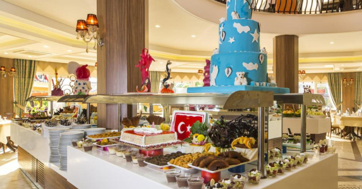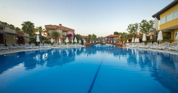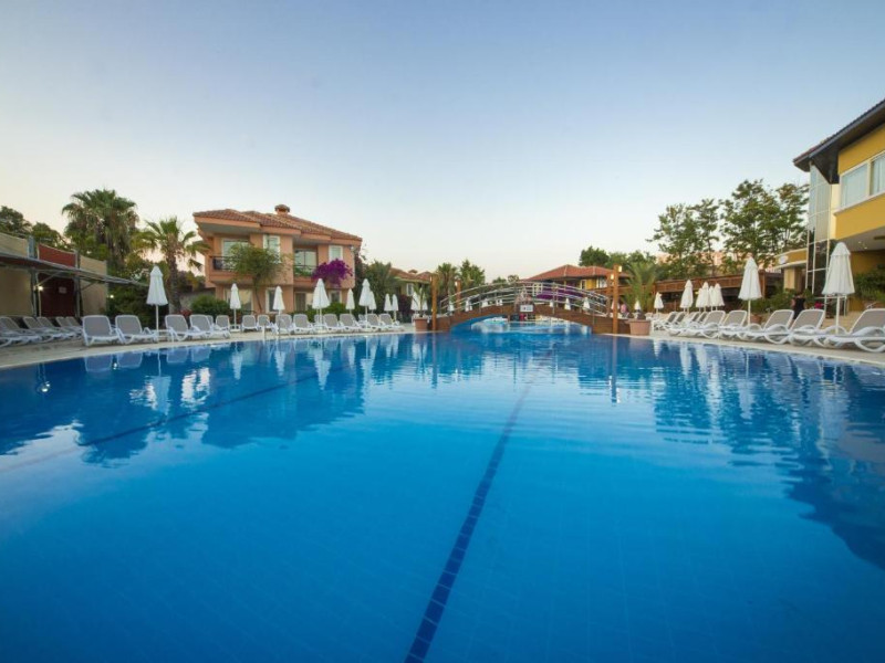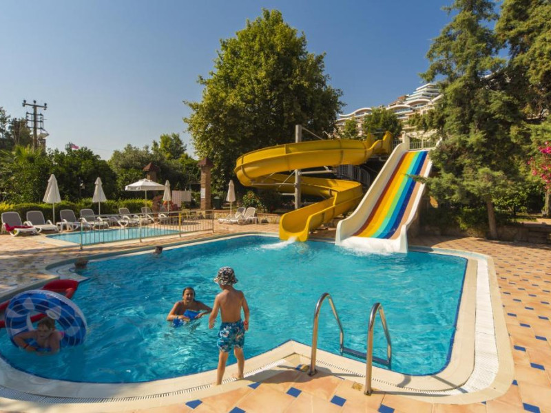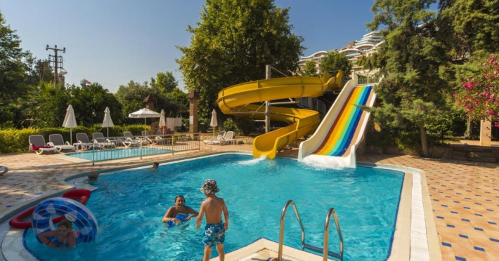 Situat la 150 de metri de plaja sa privată de-a lungul țărmului Mării Mediterane, acest hotel oferă piscină mare în aer liber, centru de fitness și baie turcească. Există teren de tenis, loc de joacă pentru copii și piscină cu tobogane de apă.