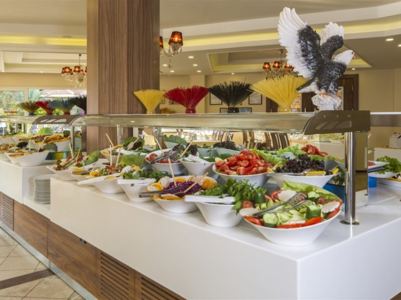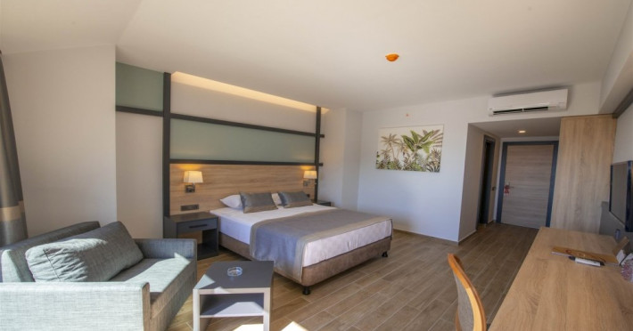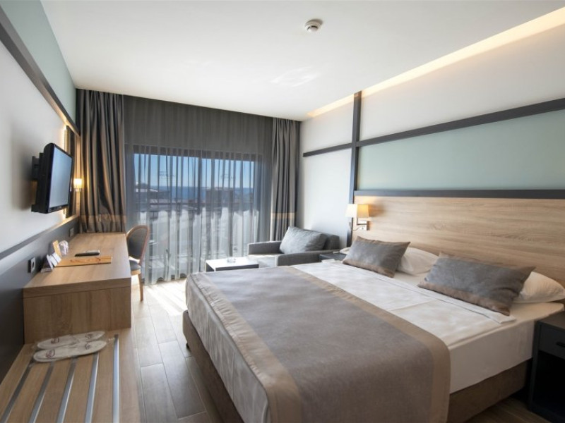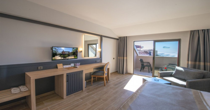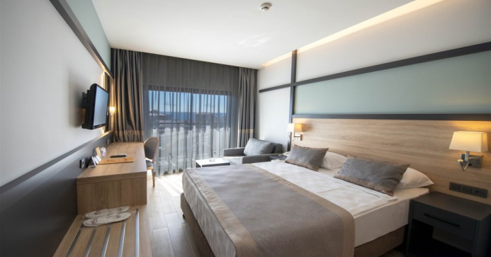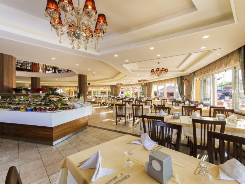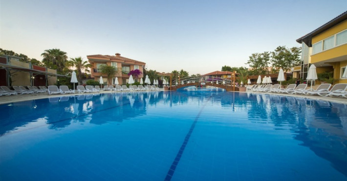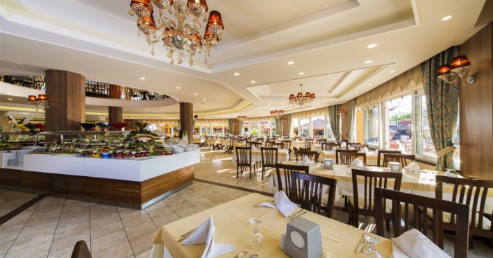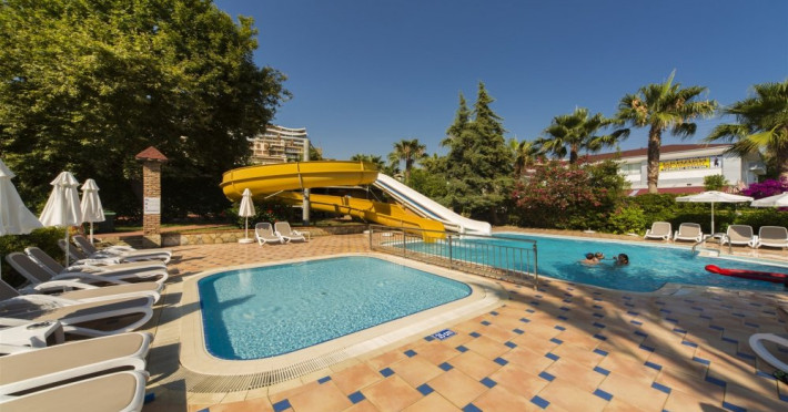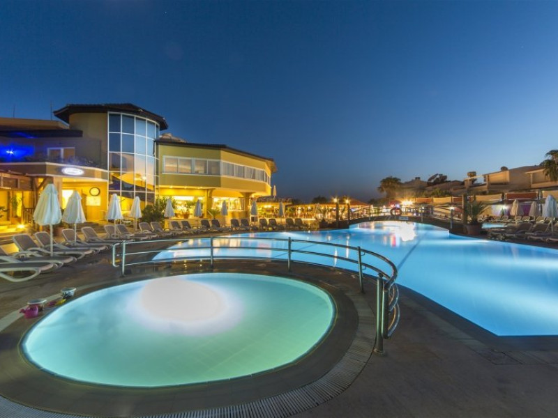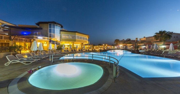 Facilitati hotel: Oaspetii pot beneficia de restaurant principal, baruri, piscina exterioara, sezlonguri, umbrele, sala fitness, sauna, darts, boccia, volei, tenis de masa, Wi-fi, gimnastica, piscina pentru copii, tobogane, loc de joaca, kids club.