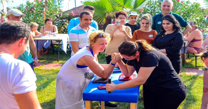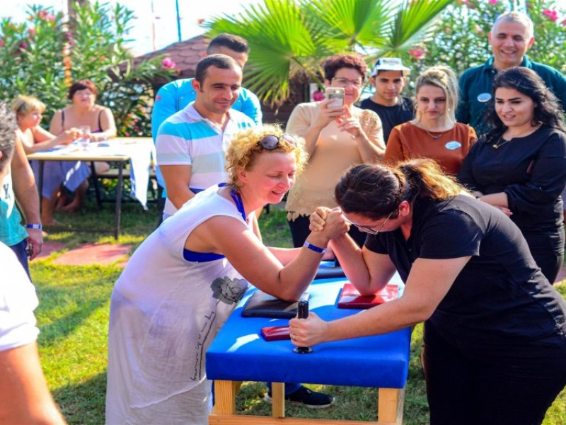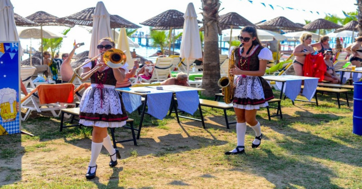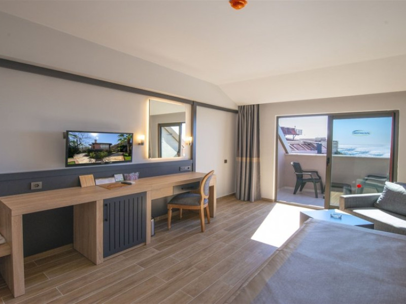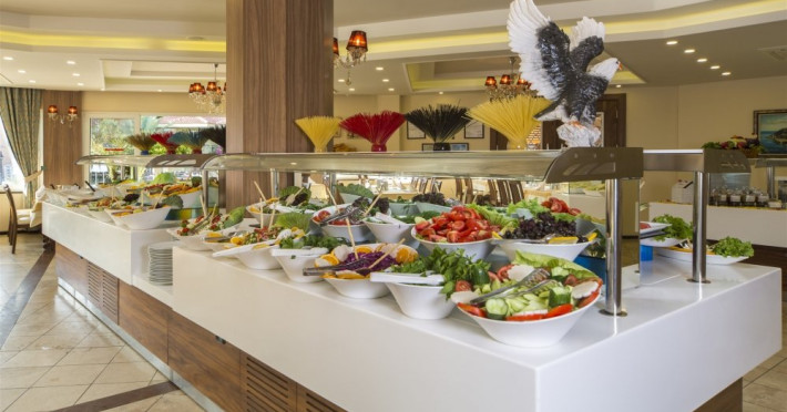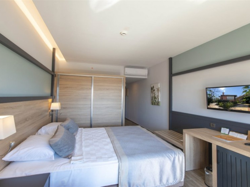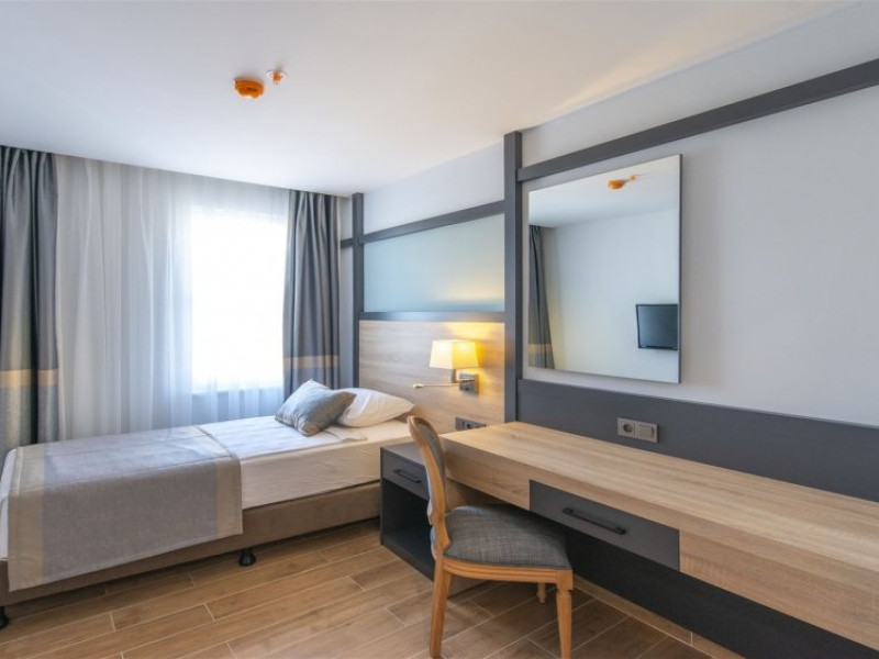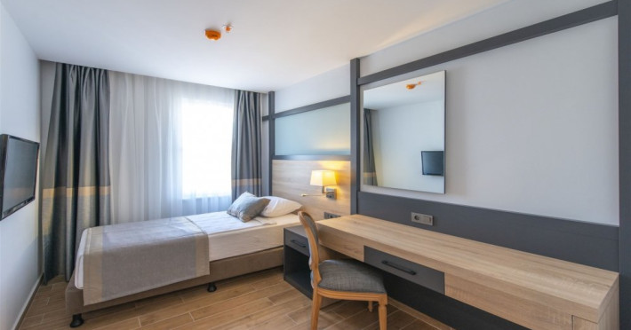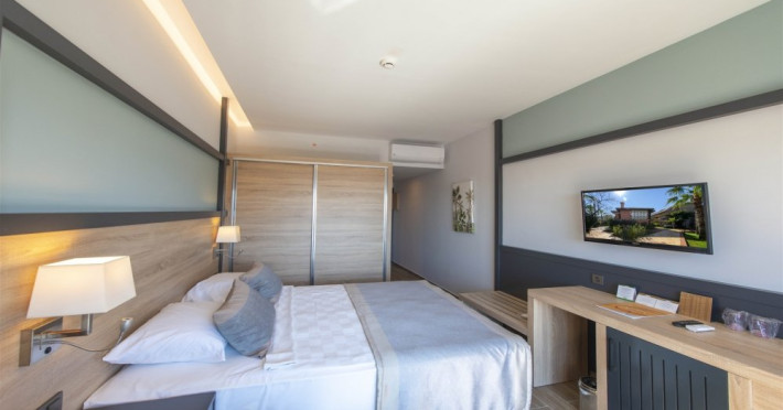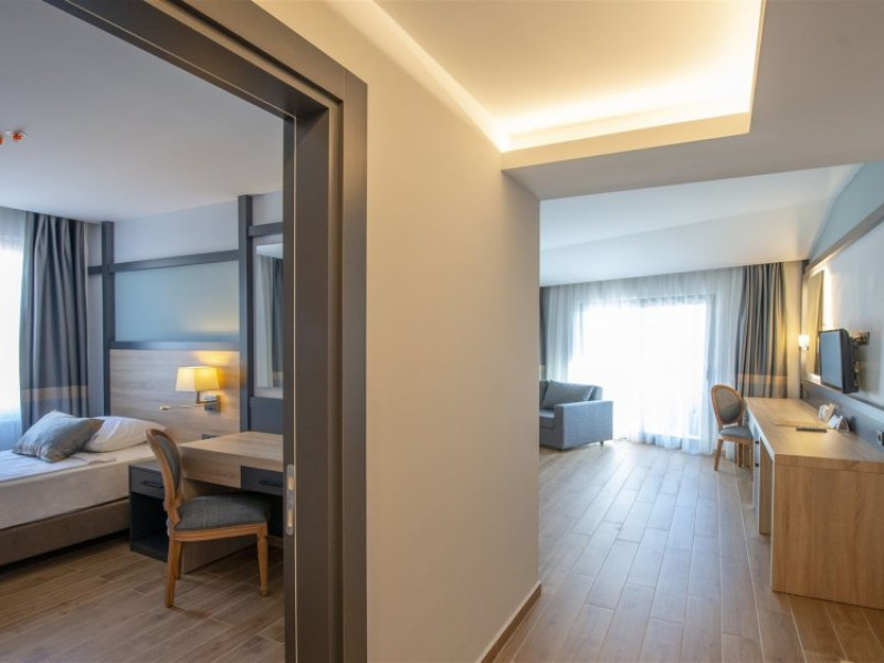 Facilitati hotel: Oaspetii pot beneficia de restaurant principal, baruri, piscina exterioara, sezlonguri, umbrele, sala fitness, sauna, darts, boccia, volei, tenis de masa, Wi-fi, gimnastica, piscina pentru copii, tobogane, loc de joaca, kids club.
