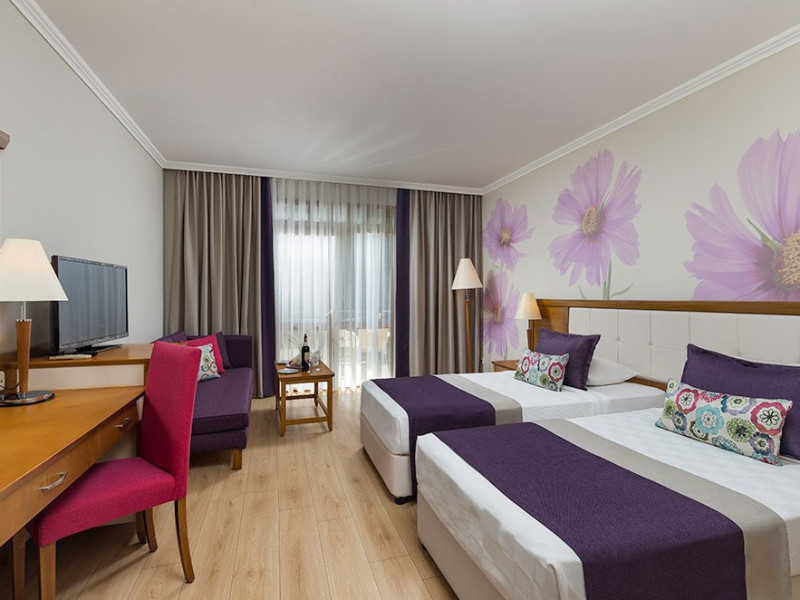 Facilitati hotel: Hotelul ofera oaspetilor sai urmatoarele facilitati: restaurant principal, 3 restaurante a la carte, cafenea, discoteca, Sali de conferinta, amfiteatru, piscina interioara, piscina exterioara pentru adulti si copii, discoteca, muzica live, sauna, baie turceasca, centru fitness, internet wireless, teren de tenis, volei pe plaja, darts, tenis de masa, mini club, loc de joaca pentru copii, piscina. Servicii cu plata: sucuri proaspete de fructe si cocktail-uri, masaj si alte tratamente de intretinere, nocturna si echipament pentru tenis, biliard, sporturi de apa.