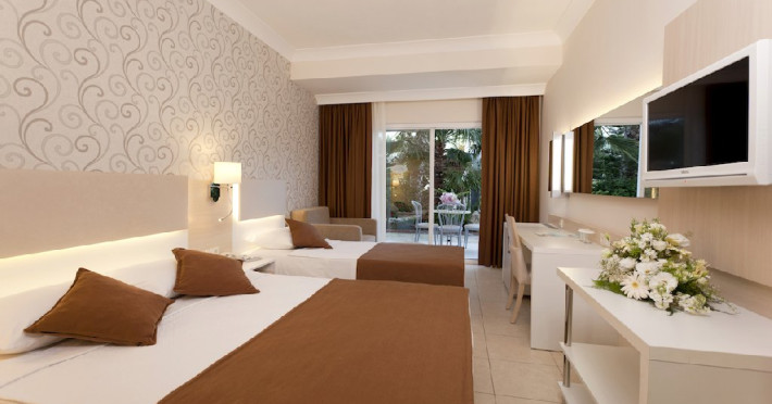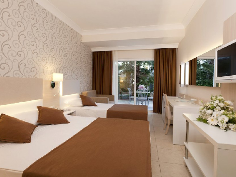 Facilitati hotel: Hotelul pune la dispozitia turistilor: receptie 24h, restaurant principal, 4 tipuri de bar, piscina exterioara, piscina interioara, piscina pentru copii, tobogane, sezlonguri si umbrele, plaja privata, centru spa, centru fitness, tenis de masa, billiard, volei, servicii medicale, WIFI, amfiteatru, minimarket, librarie, terasa, loc de joaca pentru copii, mini discoteca.