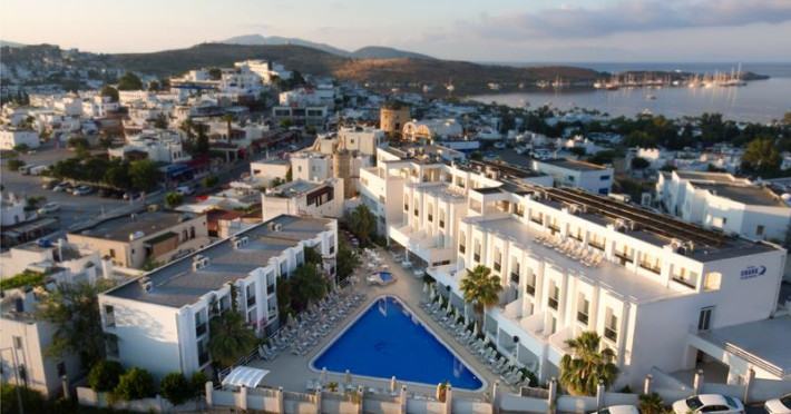 The Club Shark is a 4 star Hotel with a spectacular panoramic sea and mountain views, located in the Gumbet Town Centre. The Hotel is just 300 m away from the main beach and 2 km away from Bodrum City Centre. The distance from the Airport is 42 km.
