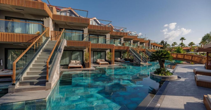 Complexul de vacanta format din mai multe cladiri este situat intr-o gradina frumoasa, plina de copaci maturi, langa o plaja privata cu nisip. Hotelul este inconjurat de varfuri muntoase, care creeaza o panorama superba. Serviciul Ultra All Inclusive asigura un program bogat de animatie pe timpul zilei si dupa lasarea intunericului, iar dumneavoastra va puteti bucura de preparate delicioase si gustari, disponibile toata ziua. O vacanta minunata in familie intr-un mediu minunat, in armonie cu natura.