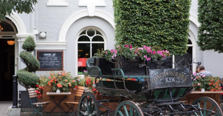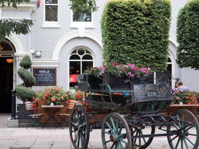 Located on Kew Green, opposite the Royal Botanical Gardens, this 17th-century inn offers a traditional bar and restaurant, a large garden, and en suite, air-conditioned bedrooms. All rooms feature a flat-screen TV with Sky channels, a work desk, a mini fridge, and a Nespresso machine. The hotel provides good public transport links to Central London and easy access to the M4, M25, M3 and South Circular. Please note: Between September 16, 2024, and November 4, 2024, bedroom refurbishments will be taking place, with potential for noise and disturbance. The Coach & Horses Hotel is a hotel.