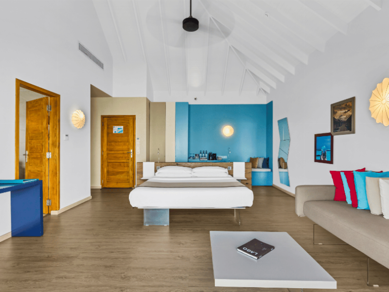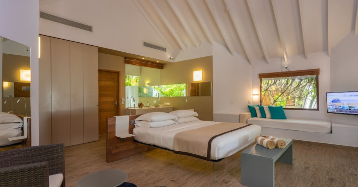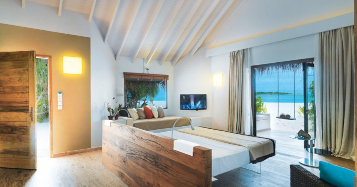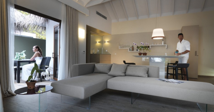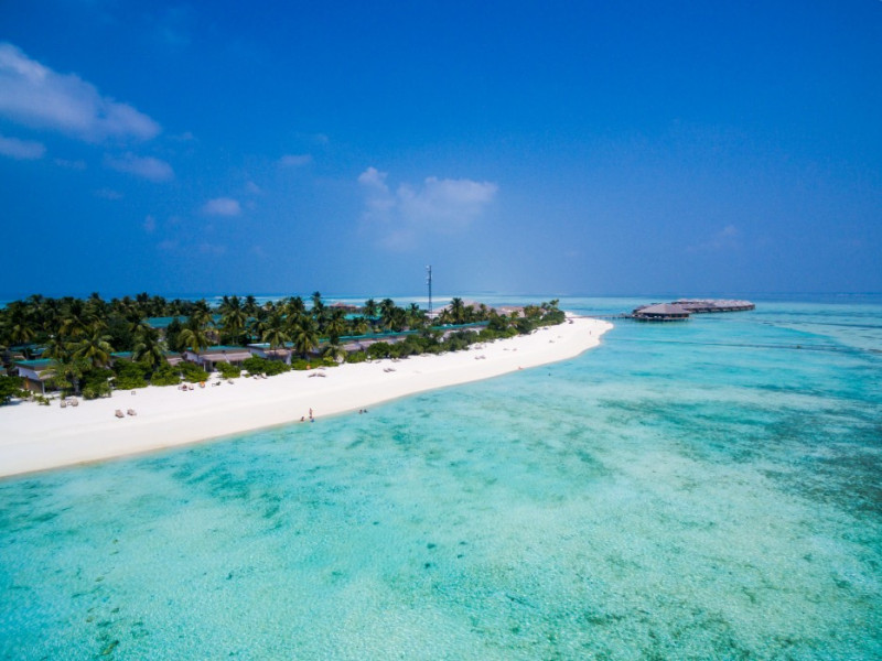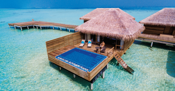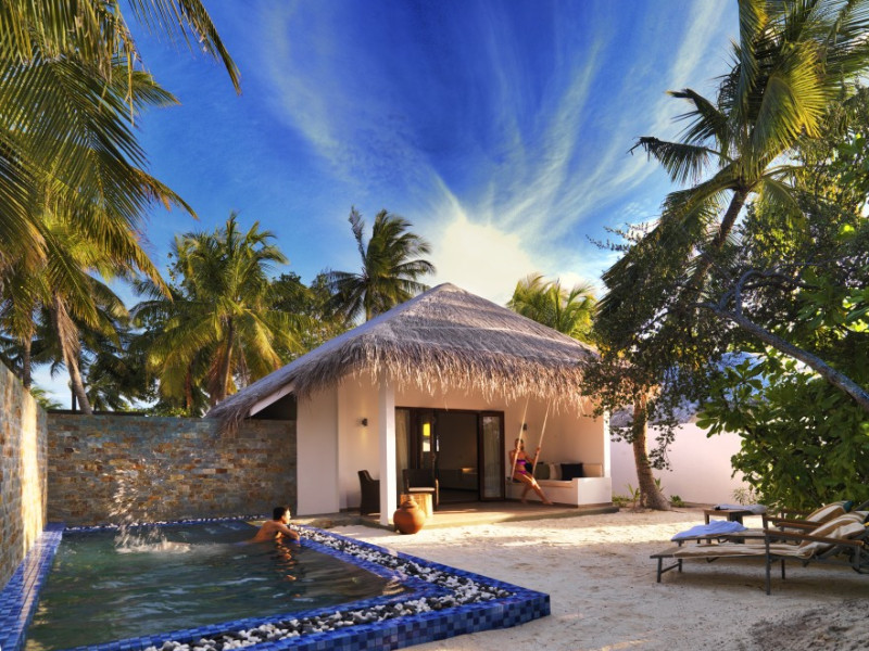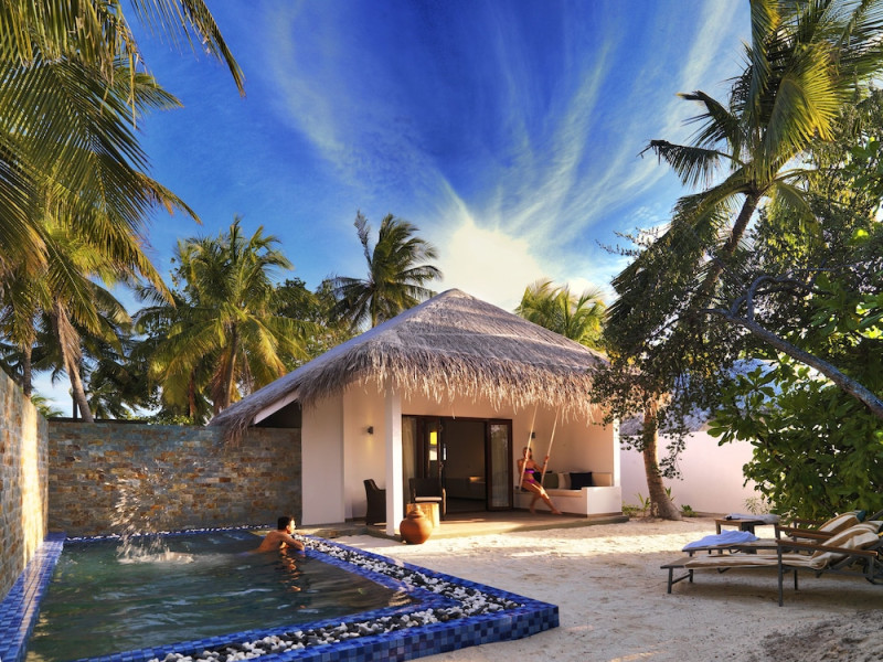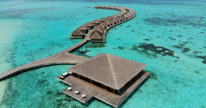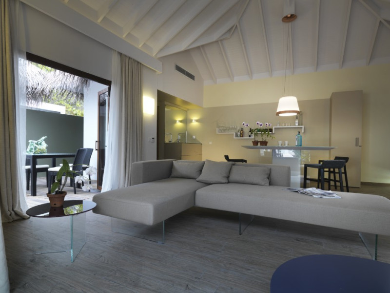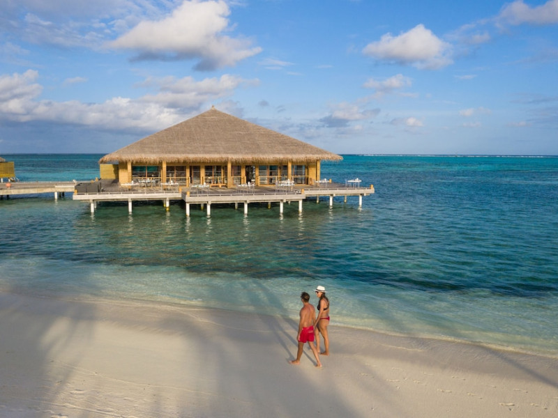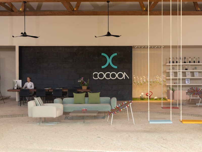 The stunning island of ‘Ookolhufinolhu’ (sandbank point) is located in Lhaviyani atoll, a 30-minute scenic seaplane ride from Male’ international airport. Cocoon blends the best of Italian design with the Maldives’ stunning natural beauty, all set against the backdrop of the azure Indian Ocean. Cocoon’s interiors are exclusively designed by Lago, one of Italy’s finest design companies. This 5-star, family-friendly, stylish resort, based on the principle of ‘affordable luxury’, is the perfect destination from which to discover the Maldives, whether you are honeymooning, scuba diving, or just looking for a place to unwind and relax. Inspired by the concept of lightness, Cocoon aims to regenerate the spirit and soothe the mind. Everything has been carefully planned to create a perfect atmosphere of harmony and tranquillity. The resort offers guests both privacy and a place to socialise if they wish, in the island’s clubs, restaurants and bars. Cocoon’s ‘community table’ is a place where people from all over the world sit together to break bread and cultural barriers. Guest accommodation includes Beach Villas, Beach Suites, Family Beach Villas, Beach Suites with Pools, Lagoon Villas, Lagoon Suites, Lagoon Suites with Pools and a Presidential Suite. Cocoon offers an affordable Half Board+ package, which includes breakfast, dinner and drinks. The resort boasts a variety of restaurants and bars, offering a wide array of food and drinks, surrounded by beautiful tropical greenery and the stunning turquoise lagoon. Lhaviyani Atoll is a great place to enjoy world-class scuba diving, with over 50 dive sites, including famous local shipwrecks. Cocoon also boasts a ‘Pupa Kids Club’, tailor-made guest excursions and entertainment, and a spa.