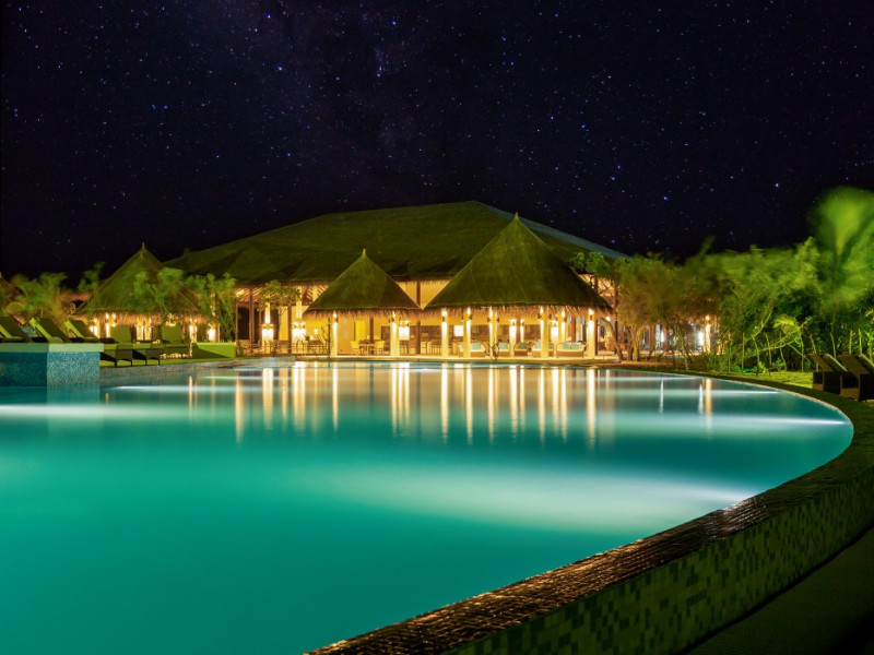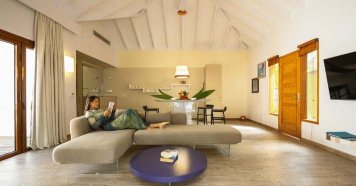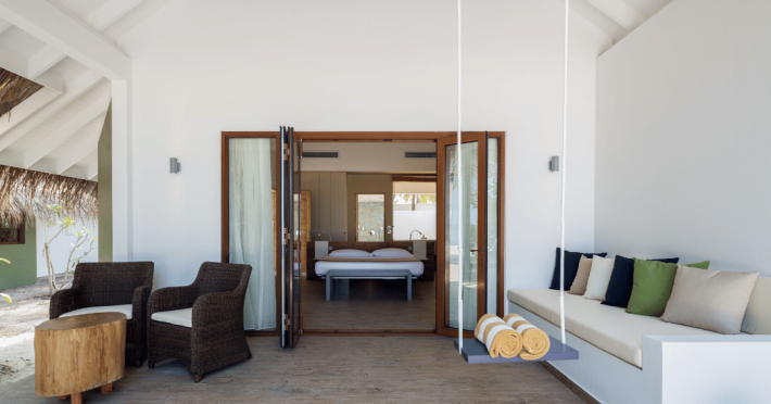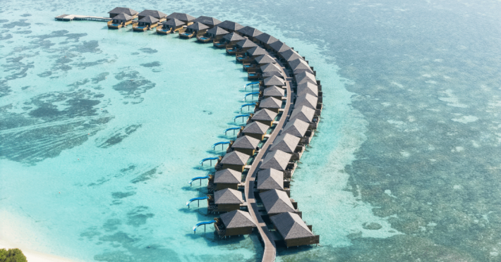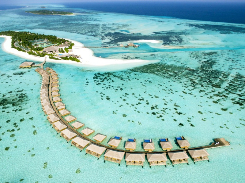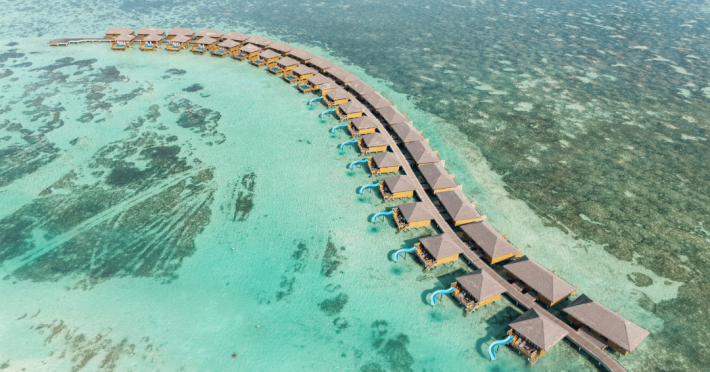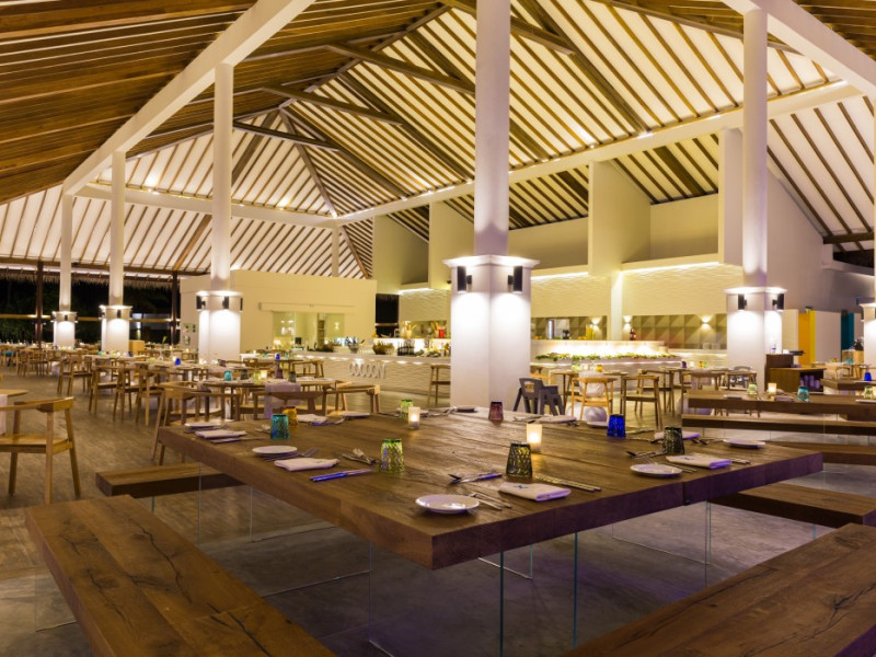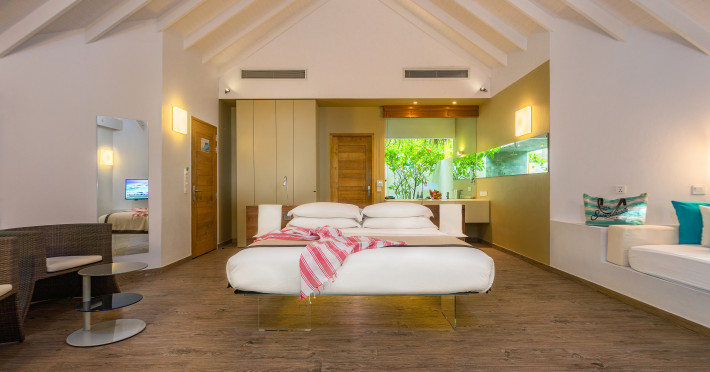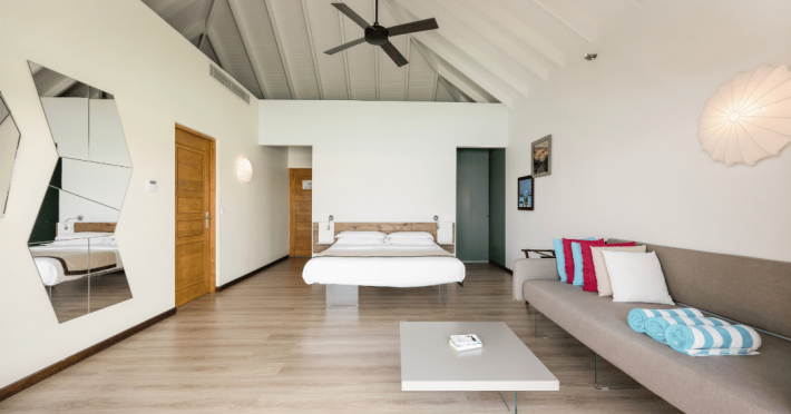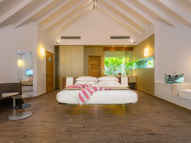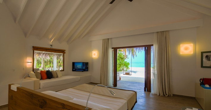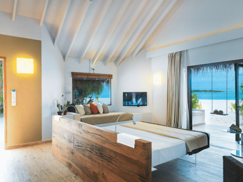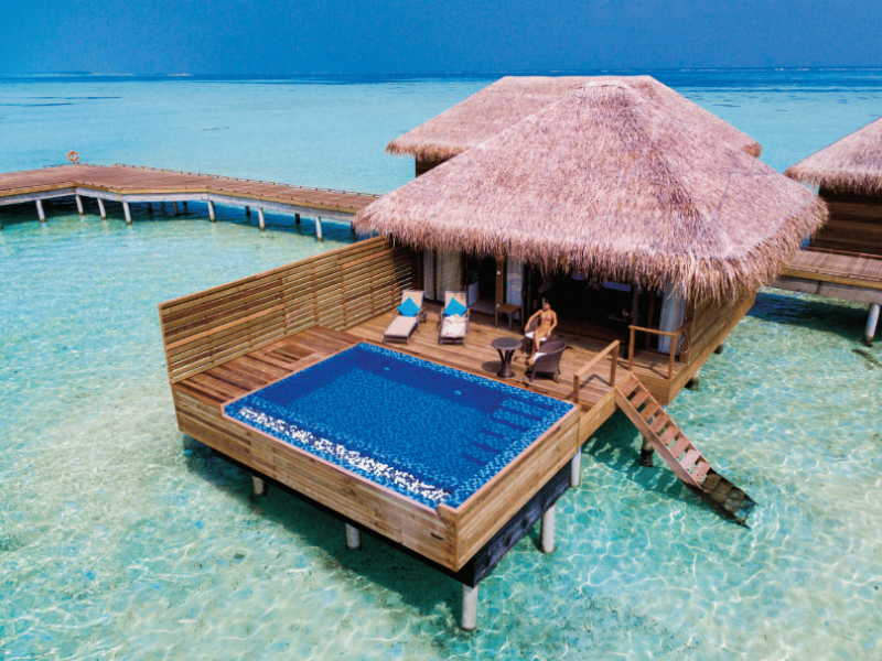 The stunning island of ‘Ookolhufinolhu’ (sandbank point) is located in Lhaviyani atoll, a 30-minute scenic seaplane ride from Male’ international airport. Cocoon blends the best of Italian design with the Maldives’ stunning natural beauty, all set against the backdrop of the azure Indian Ocean. Cocoon’s interiors are exclusively designed by Lago, one of Italy’s finest design companies. This 5-star, family-friendly, stylish resort, based on the principle of ‘affordable luxury’, is the perfect destination from which to discover the Maldives, whether you are honeymooning, scuba diving, or just looking for a place to unwind and relax. Inspired by the concept of lightness, Cocoon aims to regenerate the spirit and soothe the mind. Everything has been carefully planned to create a perfect atmosphere of harmony and tranquillity. The resort offers guests both privacy and a place to socialise if they wish, in the island’s clubs, restaurants and bars. Cocoon’s ‘community table’ is a place where people from all over the world sit together to break bread and cultural barriers. Guest accommodation includes Beach Villas, Beach Suites, Family Beach Villas, Beach Suites with Pools, Lagoon Villas, Lagoon Suites, Lagoon Suites with Pools and a Presidential Suite. Cocoon offers an affordable Half Board+ package, which includes breakfast, dinner and drinks. The resort boasts a variety of restaurants and bars, offering a wide array of food and drinks, surrounded by beautiful tropical greenery and the stunning turquoise lagoon. Lhaviyani Atoll is a great place to enjoy world-class scuba diving, with over 50 dive sites, including famous local shipwrecks. Cocoon also boasts a ‘Pupa Kids Club’, tailor-made guest excursions and entertainment, and a spa.