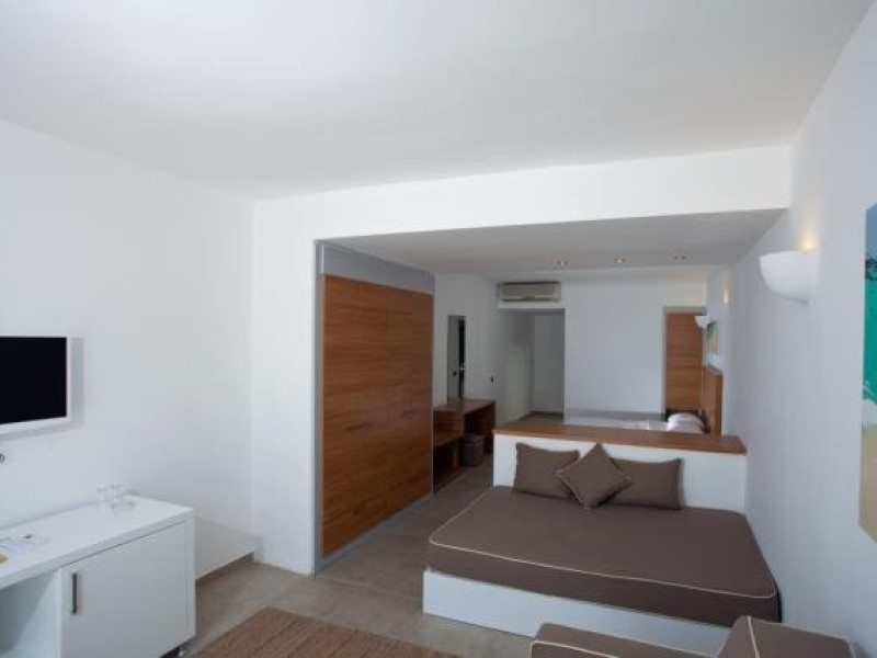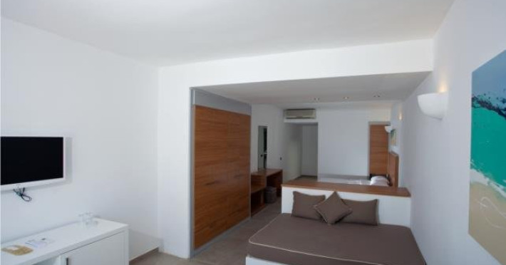 Camerele hotelului sunt spatioase, modern decorate si ofera vedere la mare sau la gradina. Hotelul dispune de 20 camere economic, 58 camere standard , 77 camere family standard (open plan, fara usa despartitoare, cu vedere la mare, au pat matrimonial, pat extensibil si sofa, maximum 4 persoane), 6 camere family superior (cu vedere la mare si 2 dormitoare separate cu usa, unul are pat matrimonial iar celalalt 2 paturi twin, dispun de balcon propriu si sofa) si 3 suite (decorate in spiritul arhitectonic local, terasa spectaculoasa cu vedere la mare, dispun de 2 dormitoare si living cu sofa, gratuit articole de baie, lumanari parfumate, mini bar si facilitati ceai / cafea).