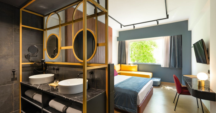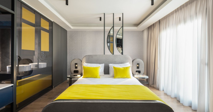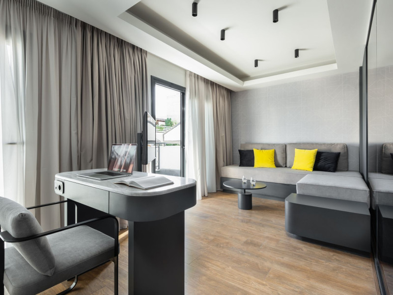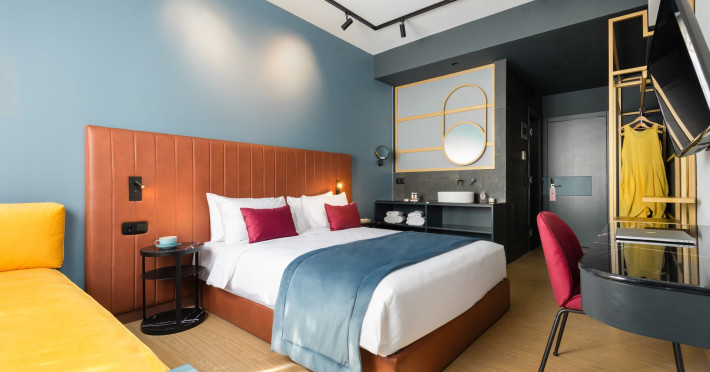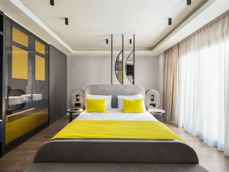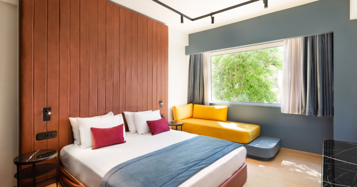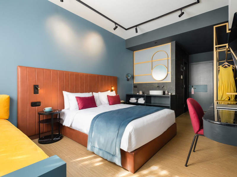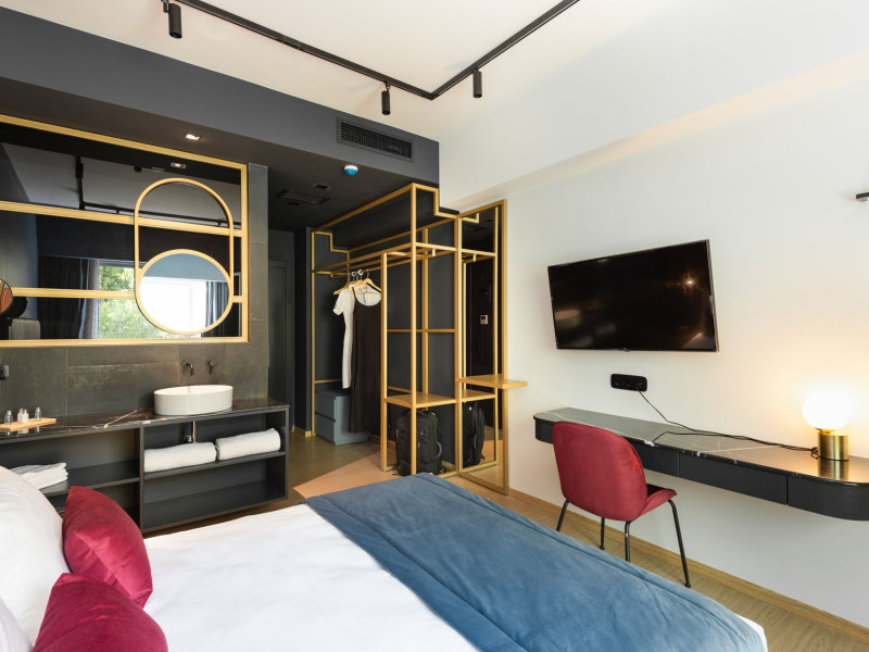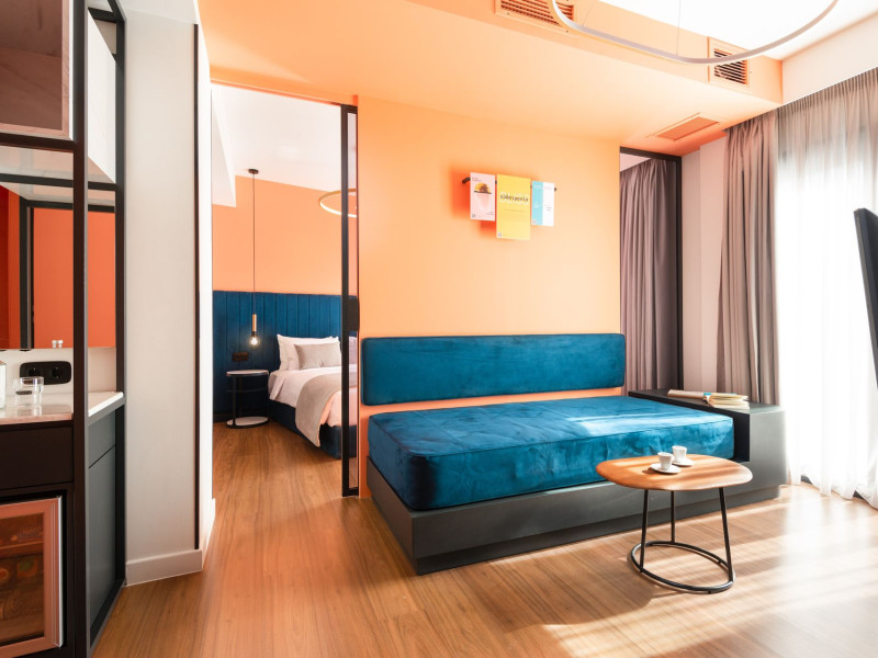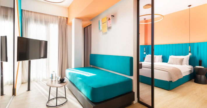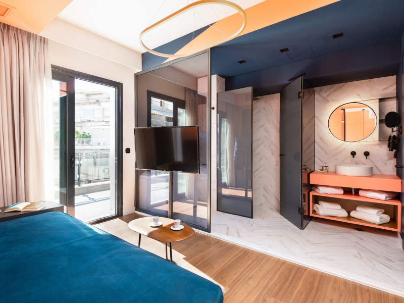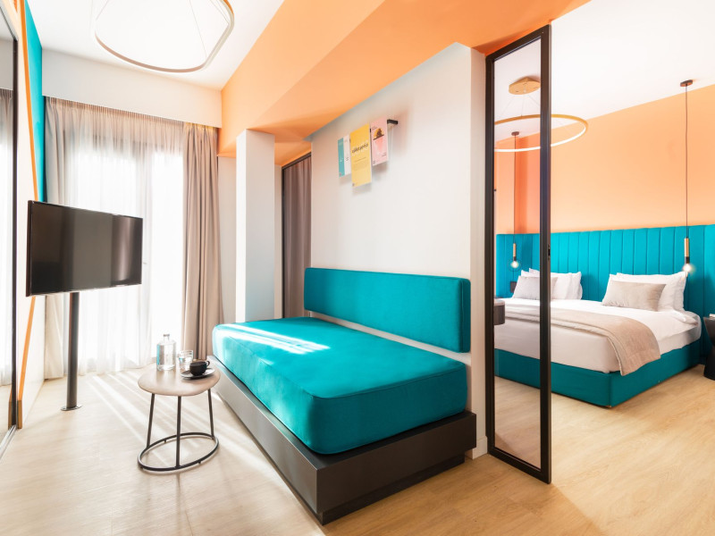 At the very centre of Athens, in COLORS Hotel Athens, you will enjoy a statement design that combines luxury and minimalism in a perfect balance.Let us spoil you –it is what we do best: a COLORS ambassador is at your service 24 hours a day, at the front desk. We will be happy to schedule your day together and share with you our little local secrets and surprises!Free Wi-Fi is standard as well as 43” satellite smart TVs.An award-winning interior design is great but it would be nothing without functionality: in COLORS Hotel Athens every room features a comfortable working desk as well as a sitting area and -of course- the most comfortable beds to ensure you enjoy a great night’s sleep. All magical highlights the city has to offer such as lively neighbourhoods, main businesses, cultural, entertainment and shopping areas are only minutes away for you to enjoy, when you wake up fresh the next morning!Refreshing drinks and cocktails can be savoured at the bar or in the lounge.The tube station is at a short 400m stroll distance and Athens International Airport, Eleftherios Venizelos, is 20km away.We speak your language!