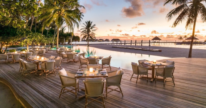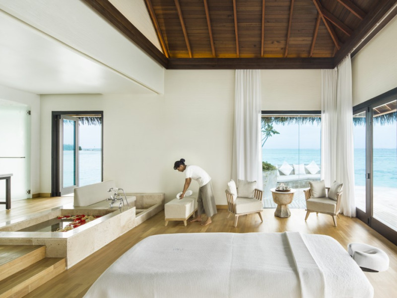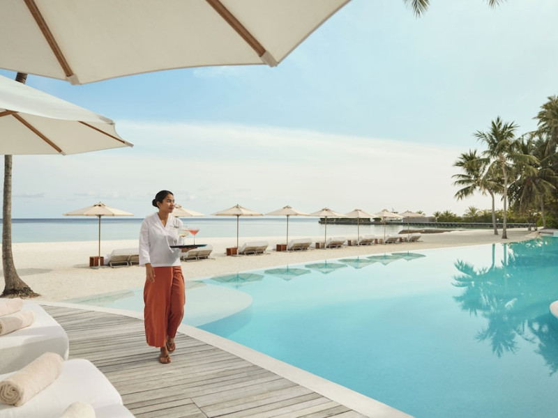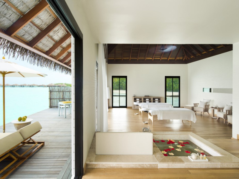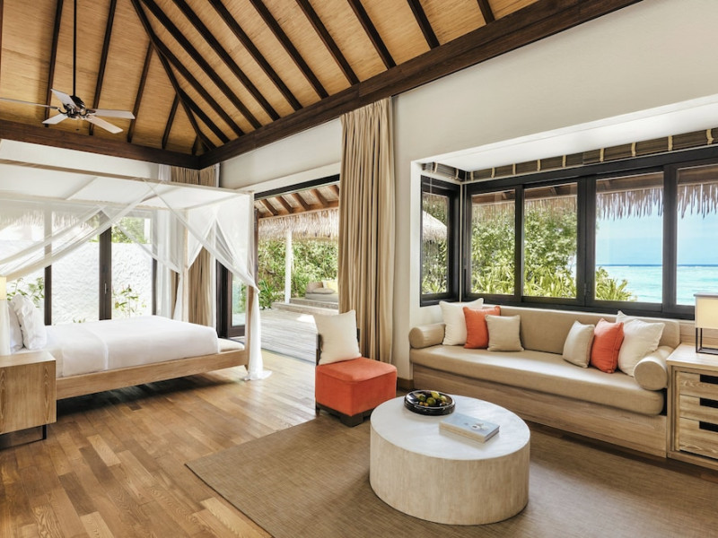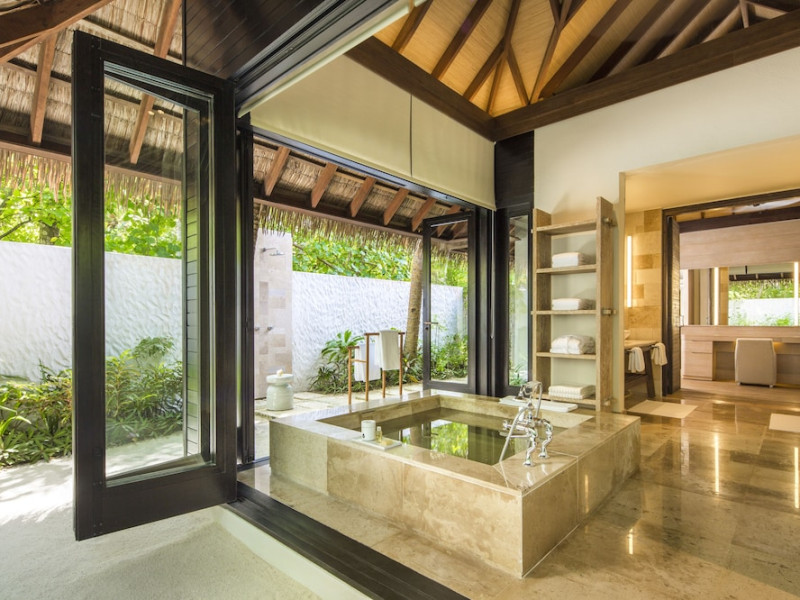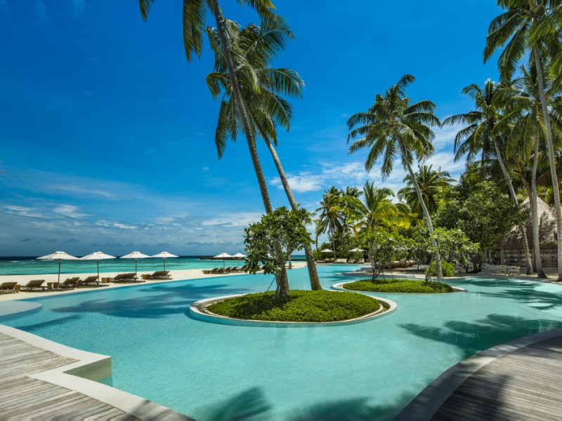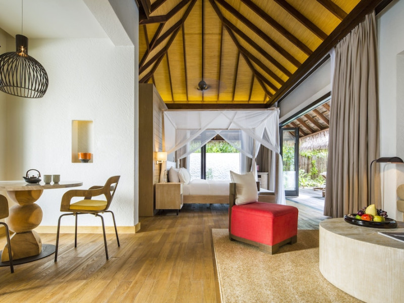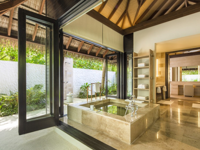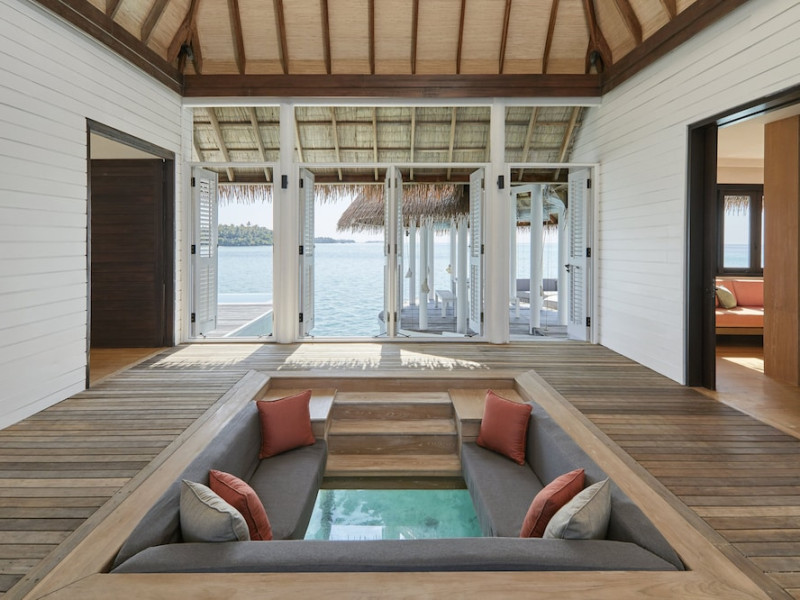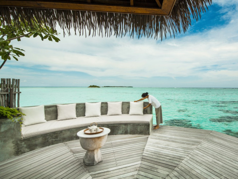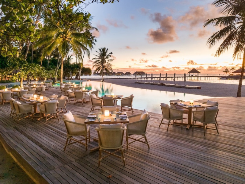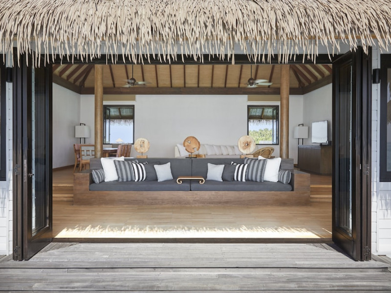 COMO Maalifushi, the first resort in the unspoiled Thaa Atoll, offers overwater and garden villas. Designed by Koichiro Ikebuchi, the resort features clean design with high rafters, teak floors, New Zealand pine, and Kajan thatched roofs. Rooms boast floor-to-ceiling windows, large decks, and interiors reflecting the sea, sand, and sky. Amenities include a full-service spa, private beach, health club, outdoor pool, complimentary Wi-Fi, concierge services, and babysitting (surcharge). Dining options include Madi restaurant and room service (limited hours). A bar/lounge and poolside bar are also available. A complimentary cooked-to-order breakfast is served daily (7 AM - 10:30 AM). Additional amenities include a business center, complimentary newspapers, and dry cleaning/laundry services. A roundtrip airport shuttle is available for a surcharge. Guestrooms feature iPod docking stations, minibars, down comforters, premium bedding, private patios, 46-inch flat-screen TVs with satellite programming, and partially open bathrooms with bathtubs or showers, complimentary toiletries, and bathrobes. The resort is located minutes from Island Port and approximately 210 km from Velana International Airport (MLE). The Como Maalifushi is a Tourist hotel. The nightlife/restaurants are easily accessible by taxi or bus from the hotel.