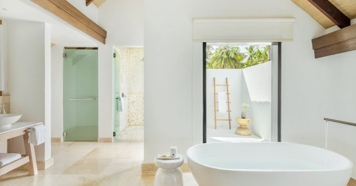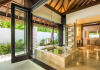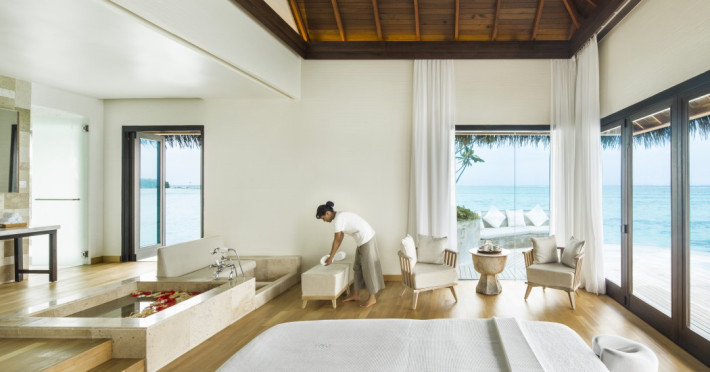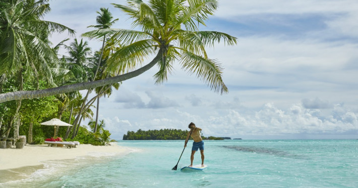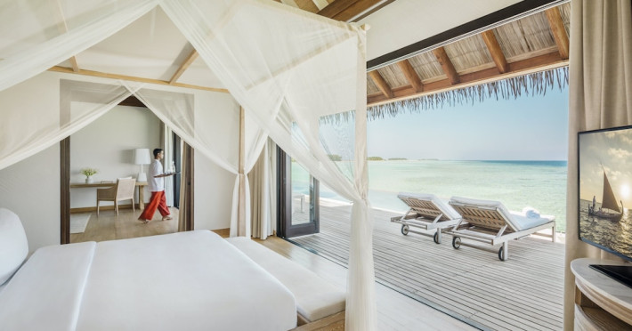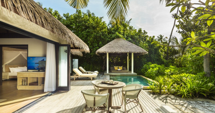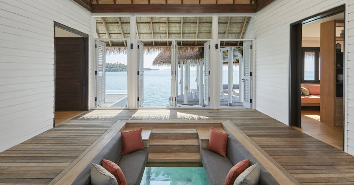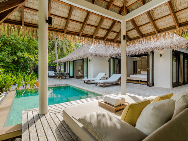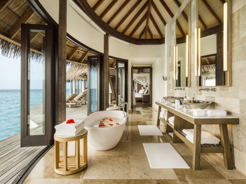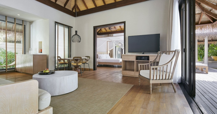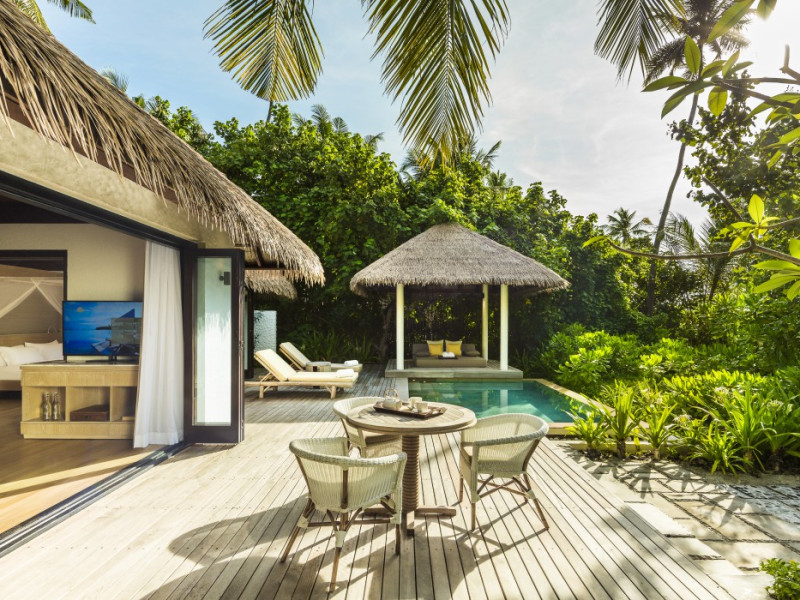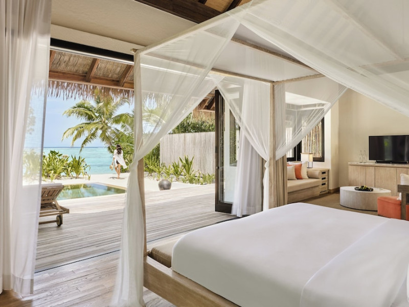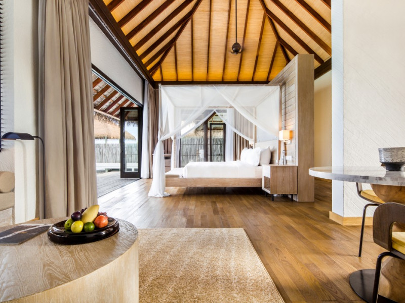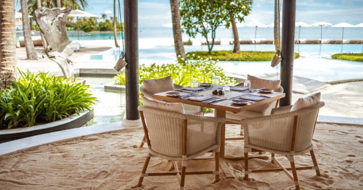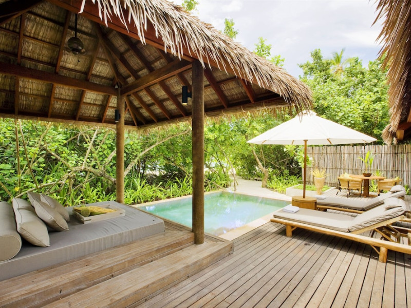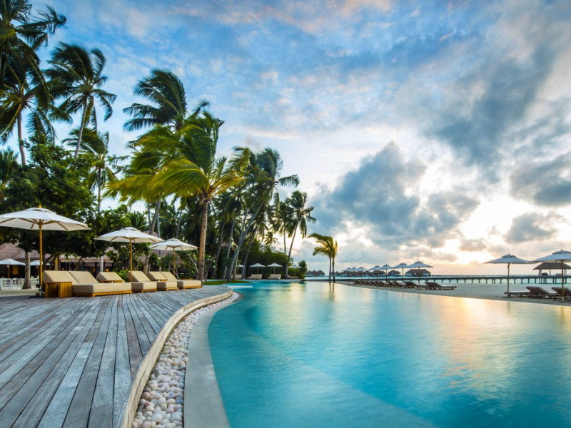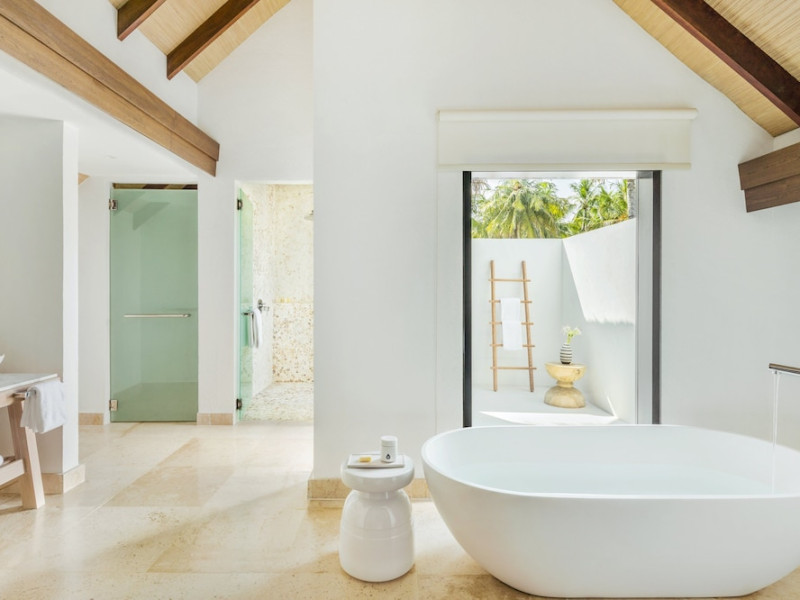 COMO Maalifushi, the first resort in the unspoiled Thaa Atoll, offers overwater and garden villas. Designed by Koichiro Ikebuchi, the resort features clean design with high rafters, teak floors, New Zealand pine, and Kajan thatched roofs. Rooms boast floor-to-ceiling windows, large decks, and interiors reflecting the sea, sand, and sky. Amenities include a full-service spa, private beach, health club, outdoor pool, complimentary Wi-Fi, concierge services, and babysitting (surcharge). Dining options include Madi restaurant and room service (limited hours). A bar/lounge and poolside bar are also available. A complimentary cooked-to-order breakfast is served daily (7 AM - 10:30 AM). Additional amenities include a business center, complimentary newspapers, and dry cleaning/laundry services. A roundtrip airport shuttle is available for a surcharge. Guestrooms feature iPod docking stations, minibars, down comforters, premium bedding, private patios, 46-inch flat-screen TVs with satellite programming, and partially open bathrooms with bathtubs or showers, complimentary toiletries, and bathrobes. The resort is located minutes from Island Port and approximately 210 km from Velana International Airport (MLE). The Como Maalifushi is a Tourist hotel. The nightlife/restaurants are easily accessible by taxi or bus from the hotel.