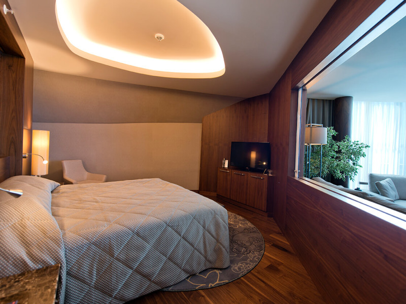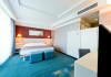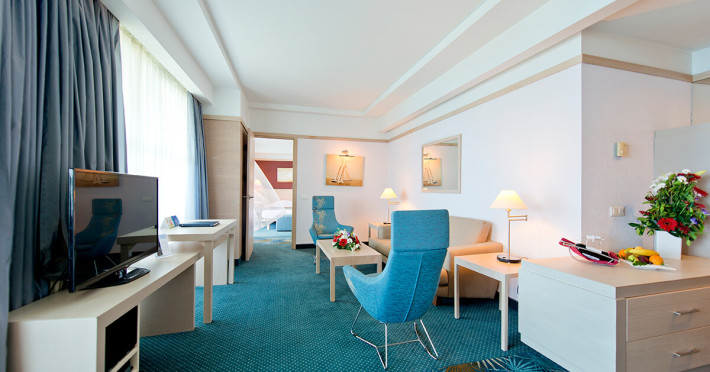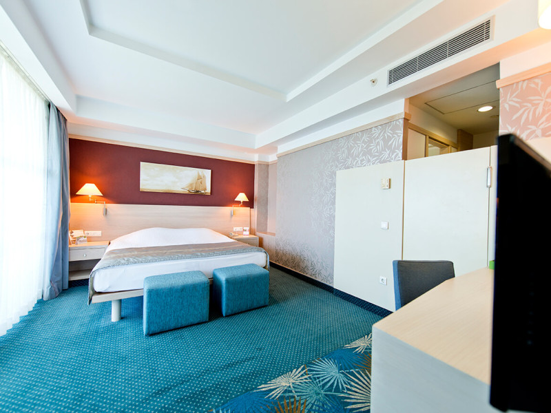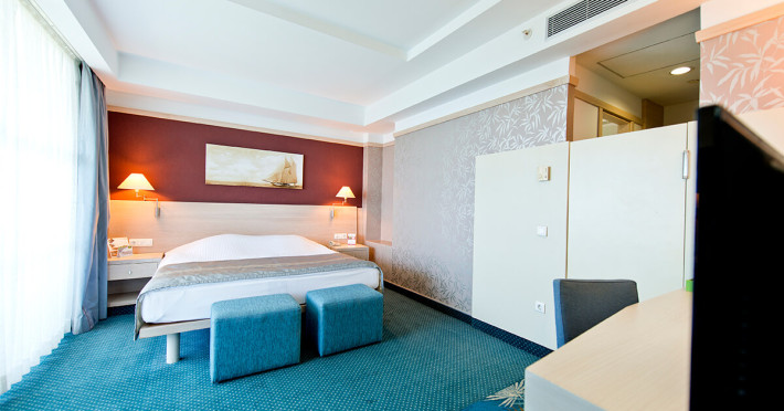 Toate camerele sunt dotate cu baie privata cu cada / dus, telefon, uscator de par, minibar (apa si bauturi racoritoare, bere reimprospatat zilnic) TV satelit, muzica, conexiune internet, aer conditionat, mocheta, seif si balcon.
