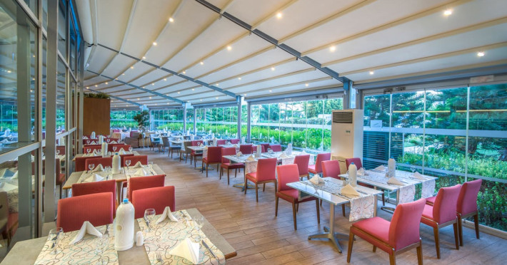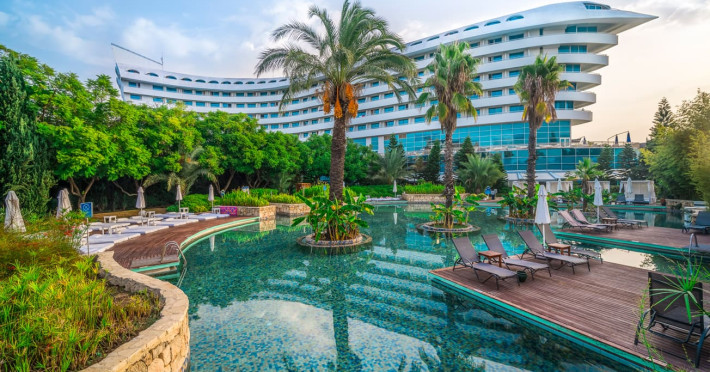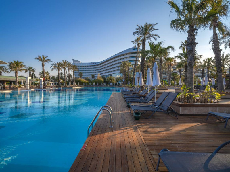 Facilitatile hotelului sunt: restaurant principal; restaurantele A`La Carte - Da Vinci (Italian), Asiana (chinezesc si japonez), Dafne (turcesc), Poseidon (pescaresc), Vinario (contra cost); baruri pe toata intinderea complexului hotelier, baby sitting, curatatorie, spalatorie, coafor, rent a car, sala de fitness, baie turceasca, sauna, baie de aburi, jacuzzi, trei terenuri de tenis, mini club pentru copii.