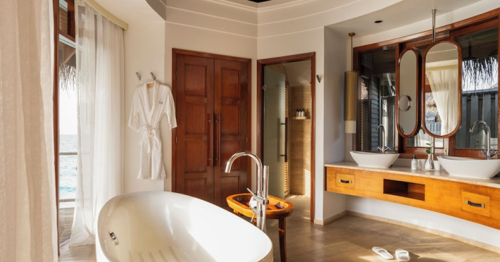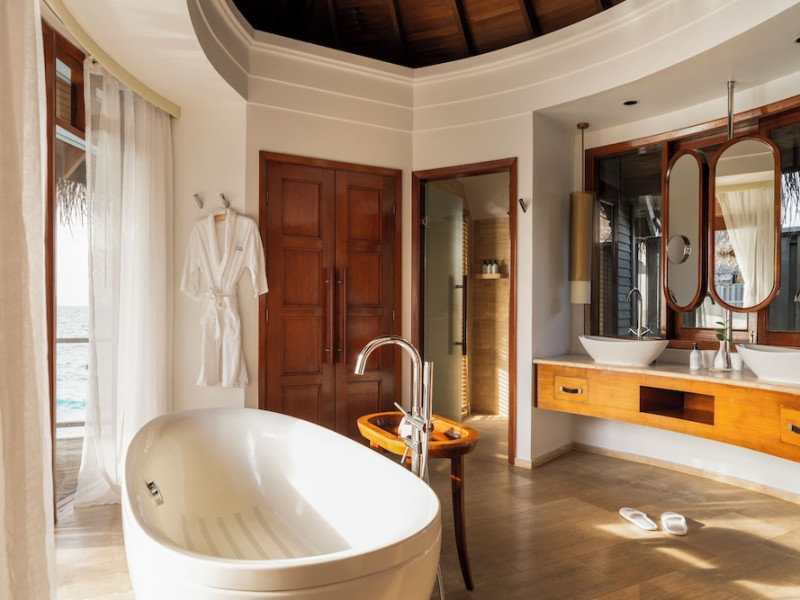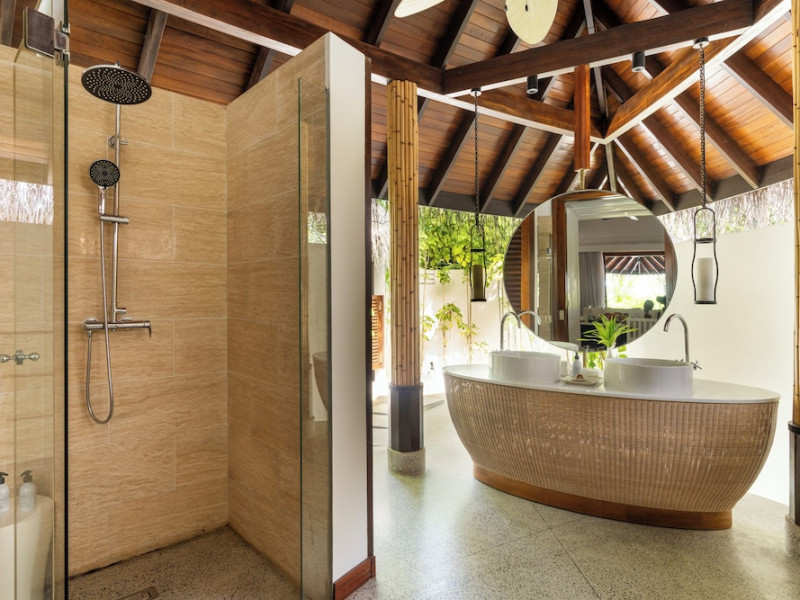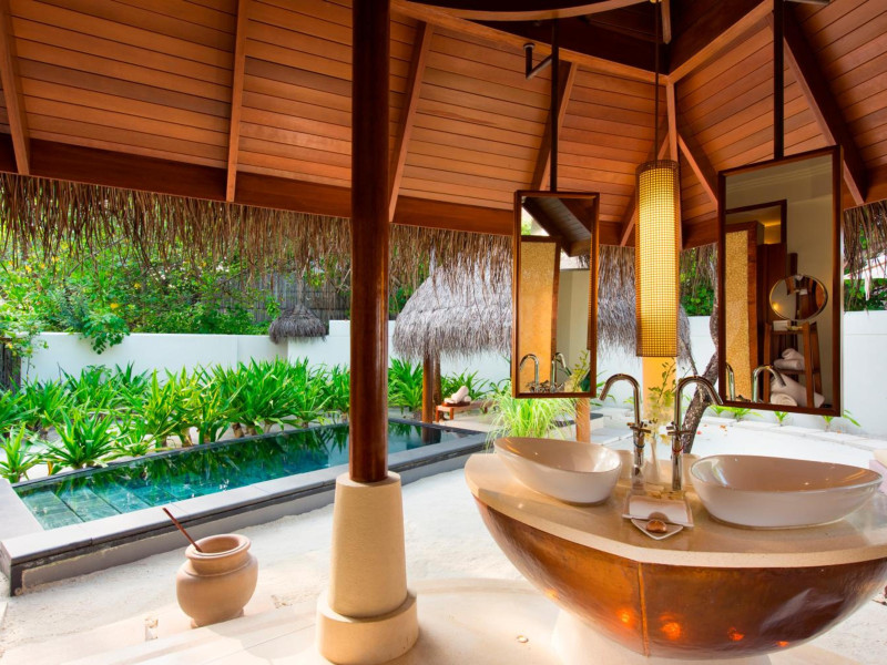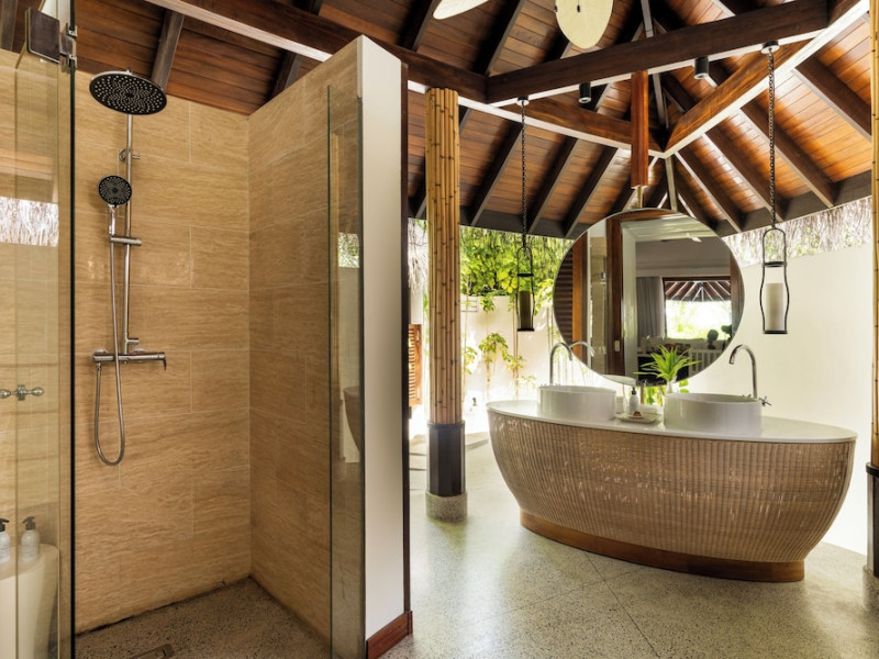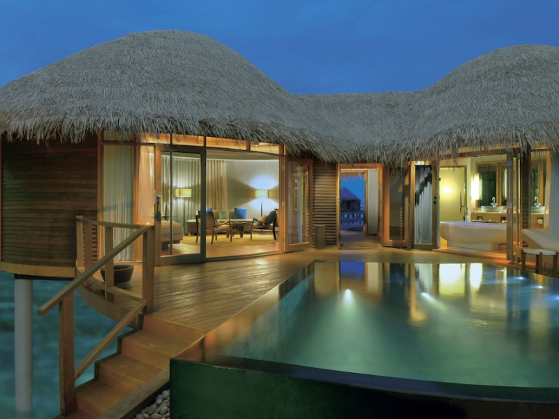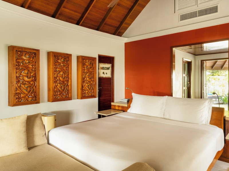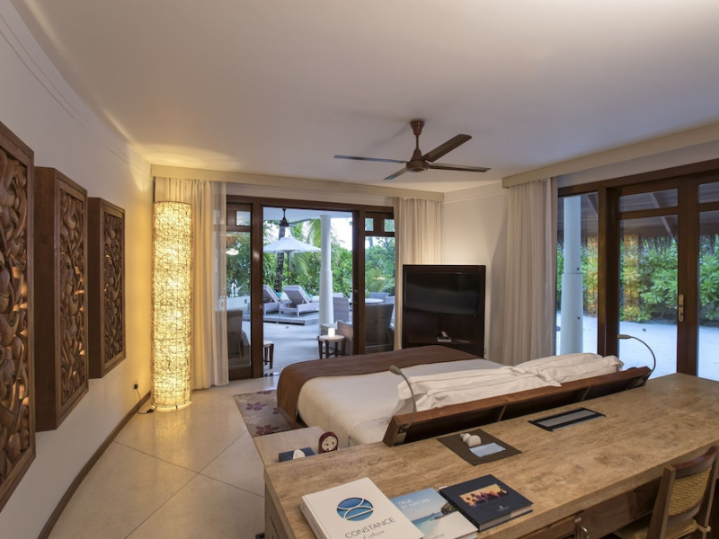 Constance Halaveli is an exclusive resort located on a small island (500 x 200 meters) in the North Ari Atoll, a 25-minute seaplane or 1-hour 15-minute speedboat ride from Malé. Surrounded by crystal-clear waters, pristine white sands, and lush foliage, the resort offers 85 air-conditioned rooms, each with a private pool, private balcony, LCD television, and free Wi-Fi. Three restaurants—Jahaz (international cuisine), Meeru (fresh seafood), and Jing (Asian food)—cater to diverse tastes. Additional amenities include a full-service spa, outdoor pool, hot tub, fitness center, tennis courts, concierge services, babysitting (surcharge), complimentary wireless internet access, and a computer station. All-inclusive rates are available; however, charges may apply to some restaurants, special dinners, certain beverages, and other amenities. The resort is steps from Ari Atoll and a short drive from Ukulhas Beach. Note: Seaplane transfers may involve a wait of 45 minutes to 2 hours due to varying schedules of independent seaplane companies. The resort is not responsible for these wait times. The Constance Halaveli Maldives is a Beach Resort, Business, Eco Friendly, Honeymoon, Leisure, Modern, Spa Resort, Tourist hotel. The nightlife/restaurants are located in the hotel.