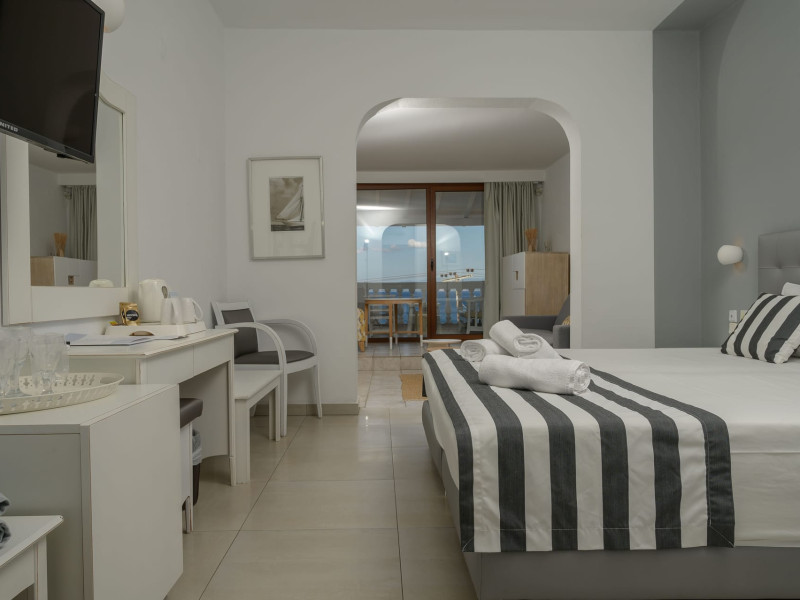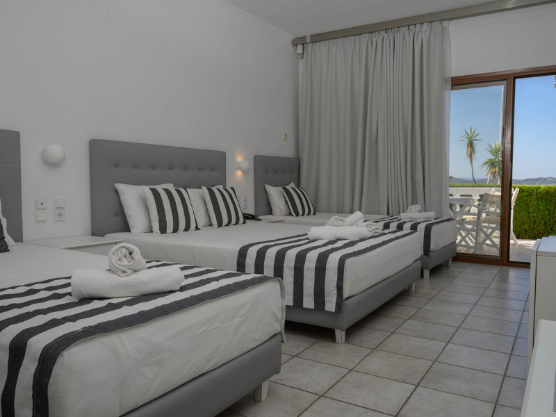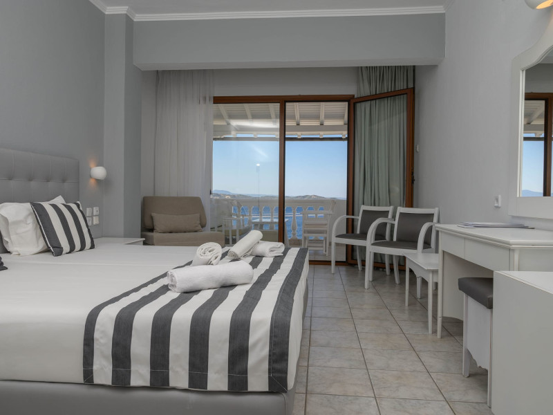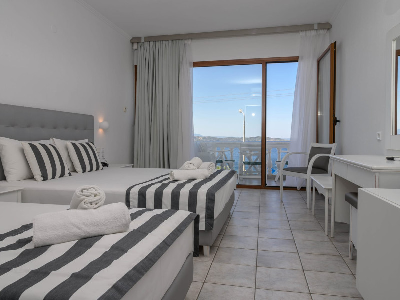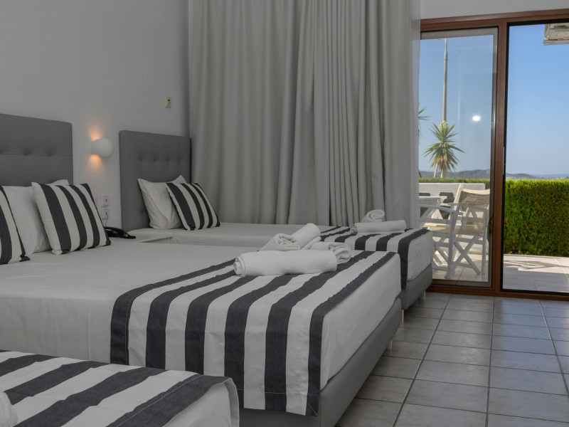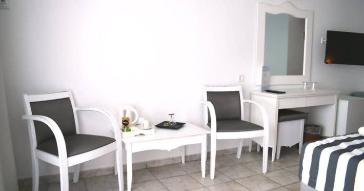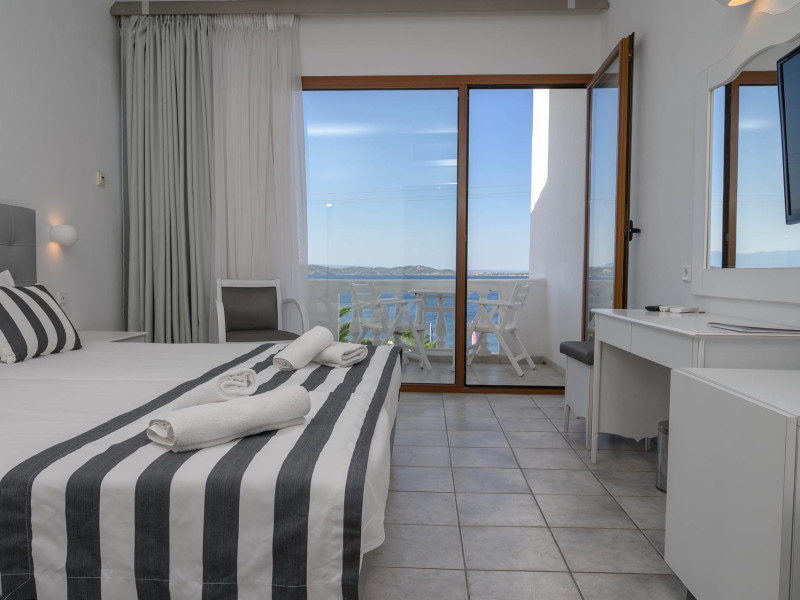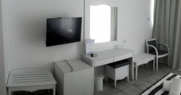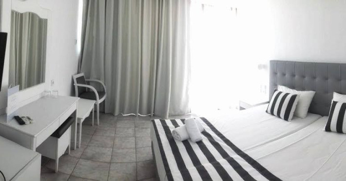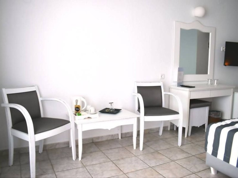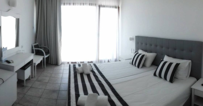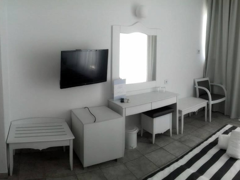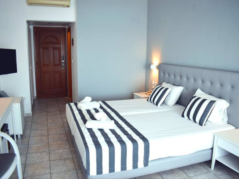 Hotelul dispune de 70 de camere ce sunt dotate cu aer conditionat (cu plata), TV telefon, frigider, uscator de par, balcon sau veranda cu vedere la mare, piscina sau gradina, pentru o vacanta reusita.