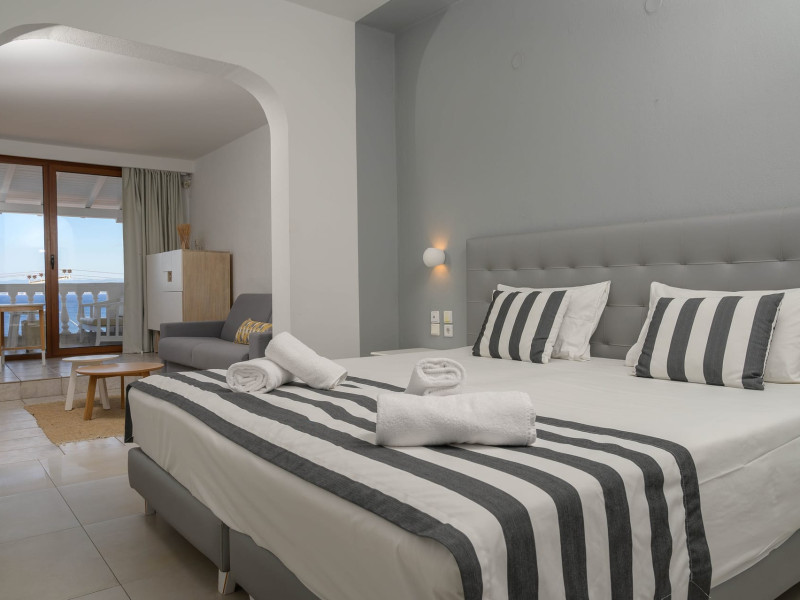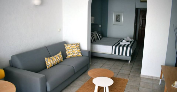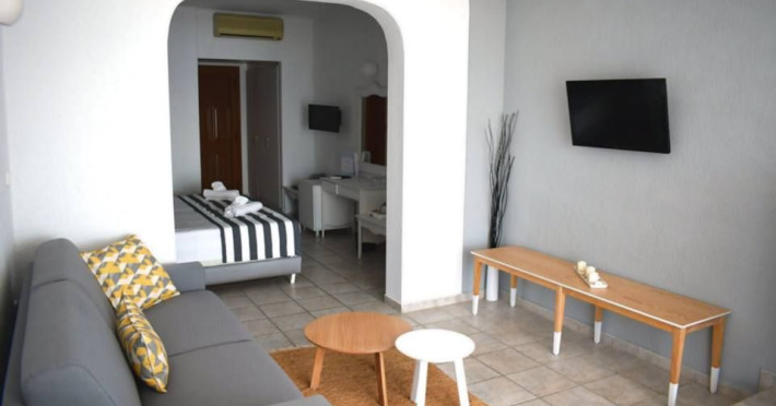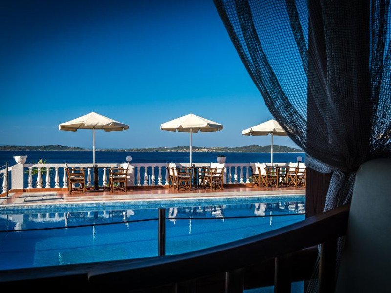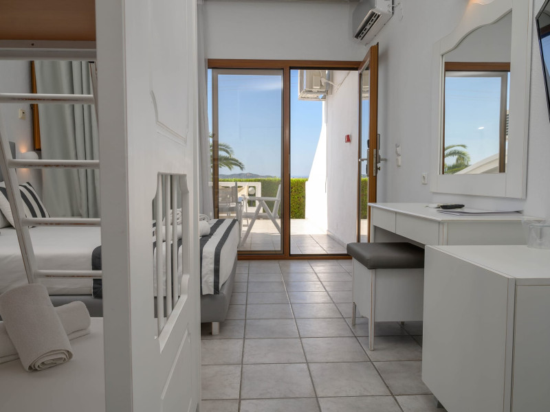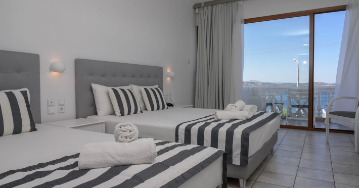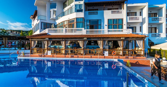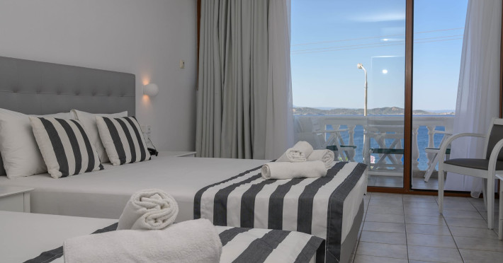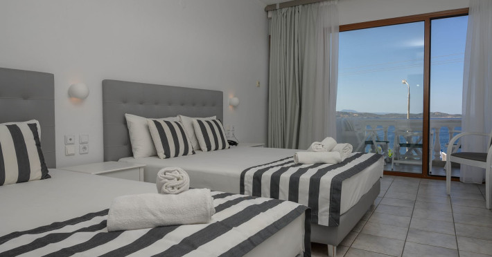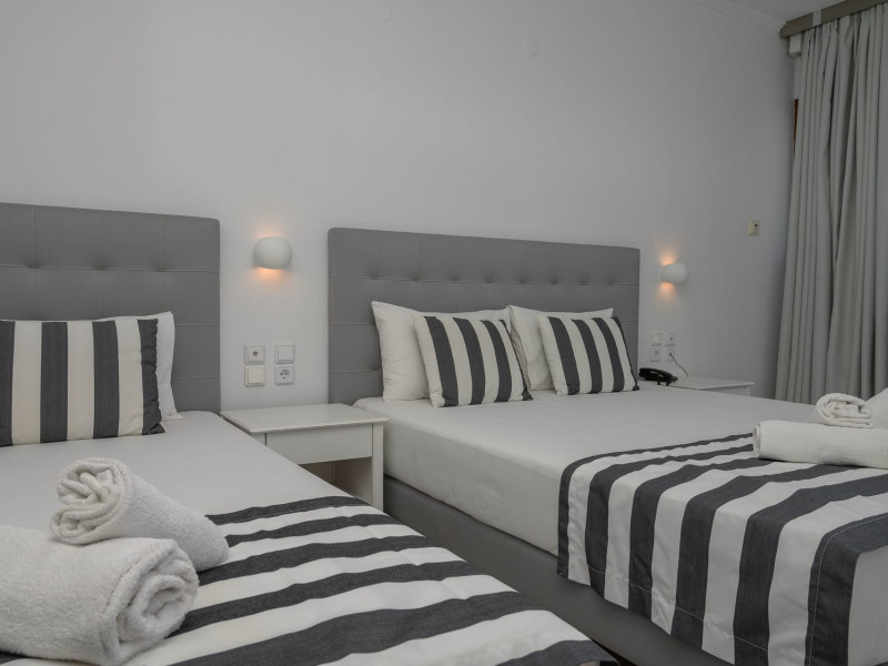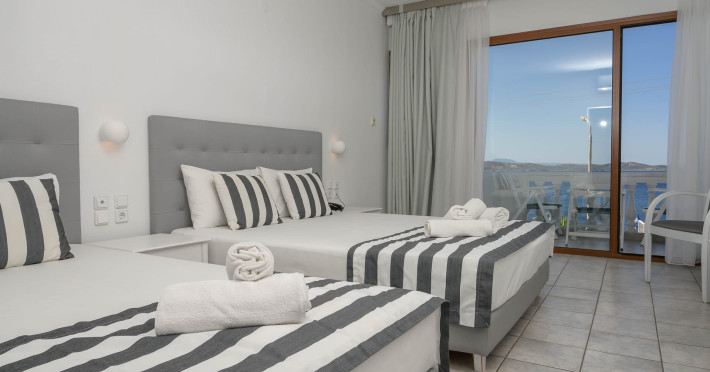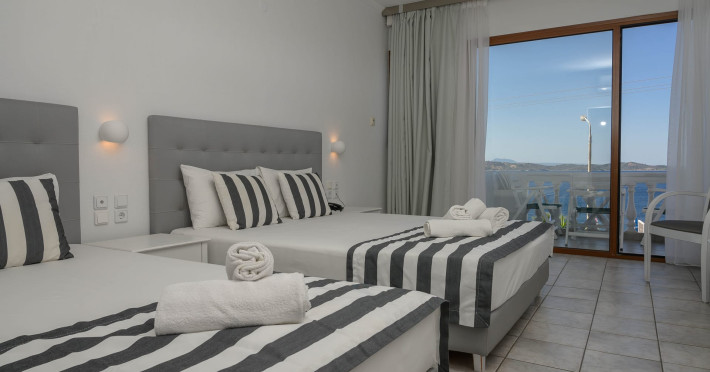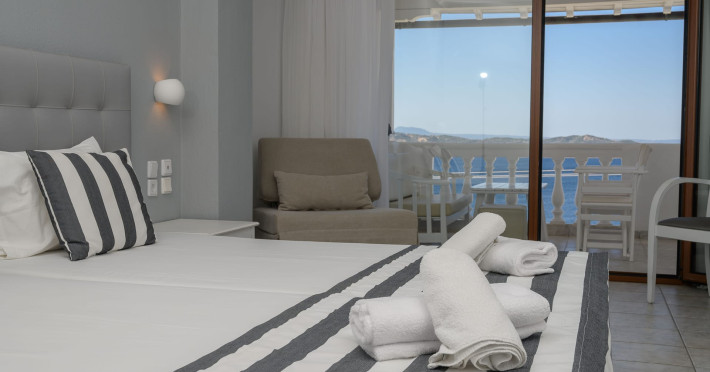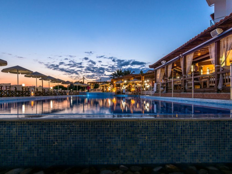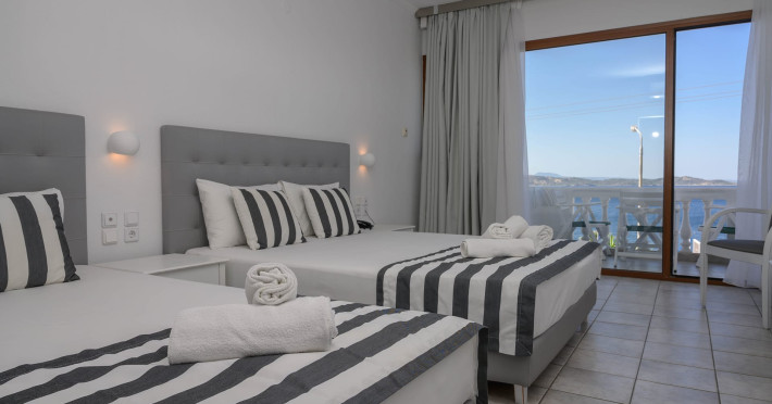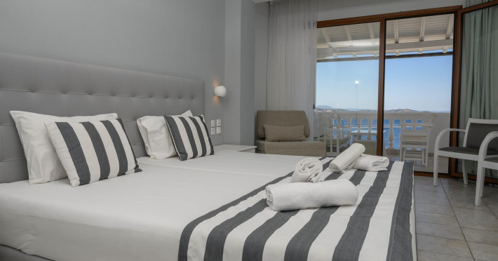 Hotelul dispune de 70 de camere ce sunt dotate cu aer conditionat (cu plata), TV telefon, frigider, uscator de par, balcon sau veranda cu vedere la mare, piscina sau gradina, pentru o vacanta reusita.