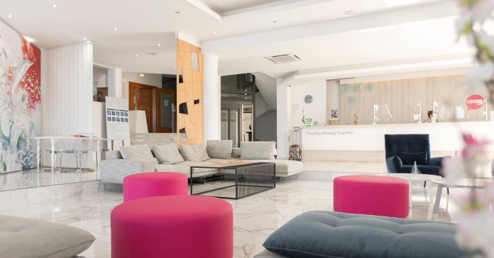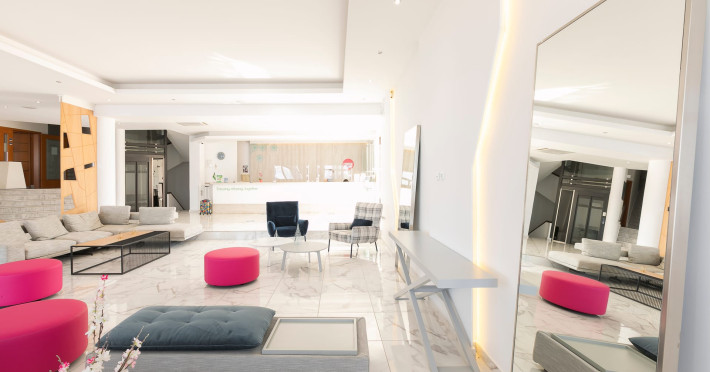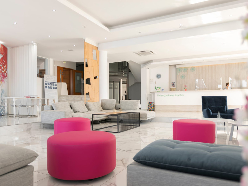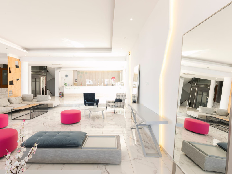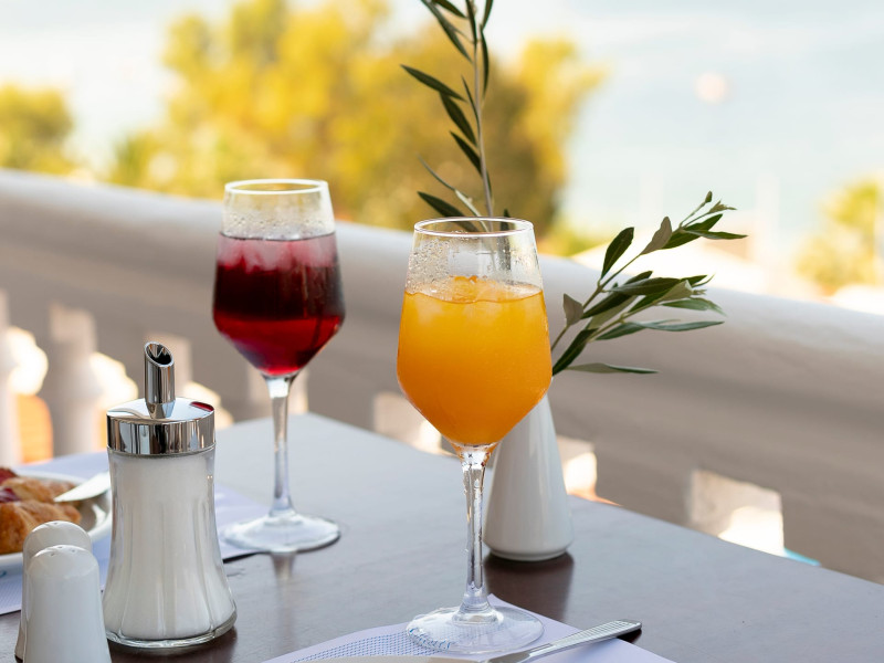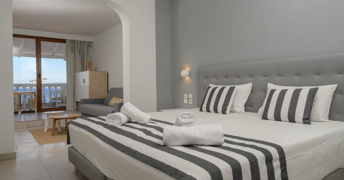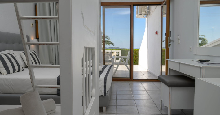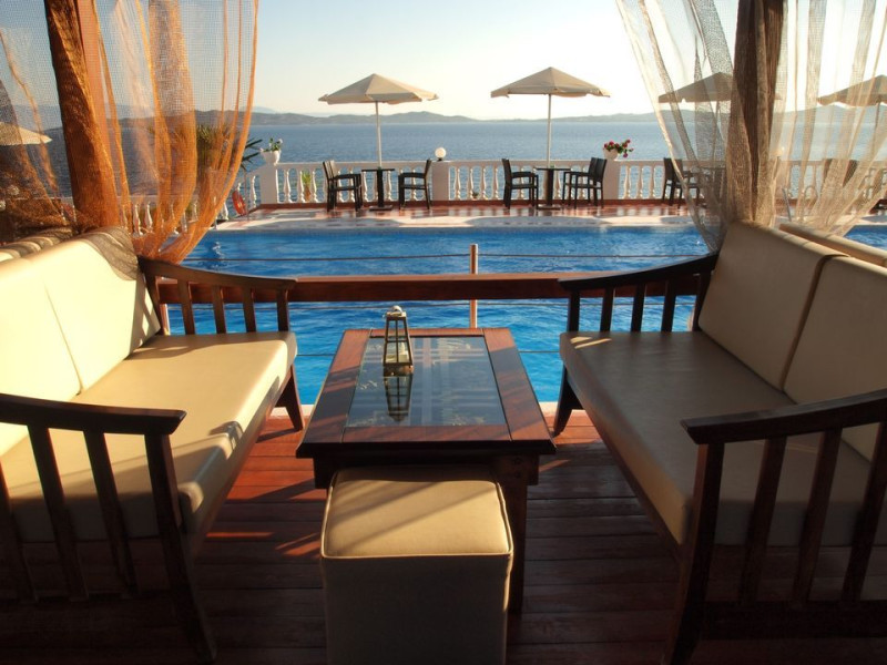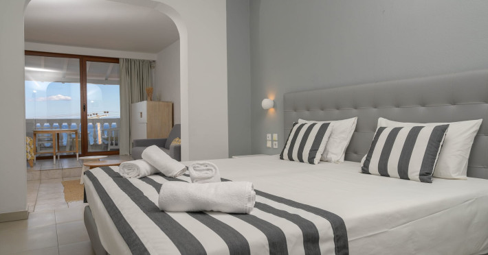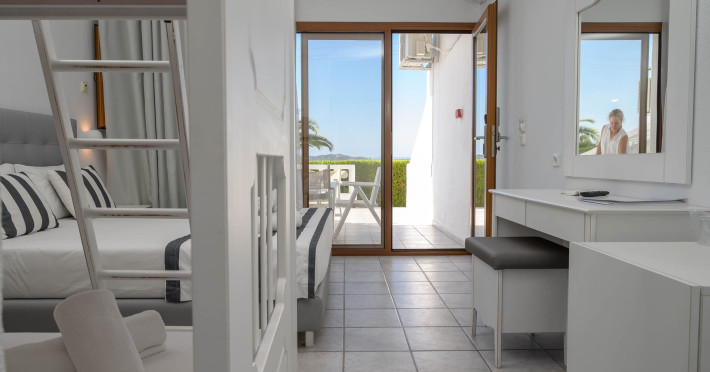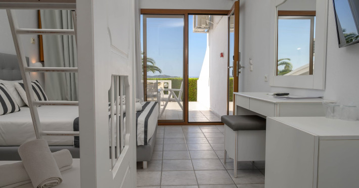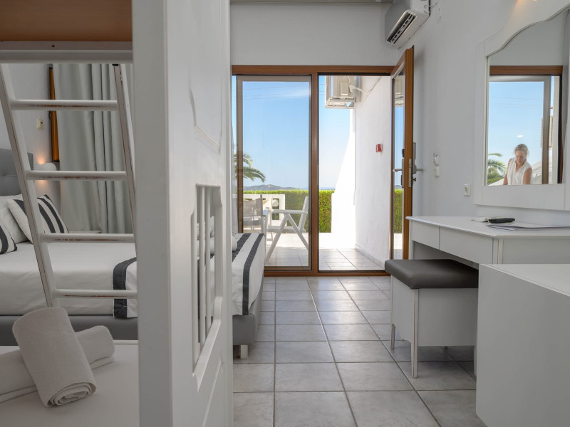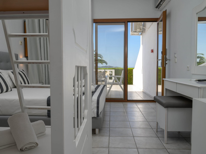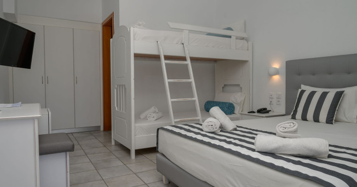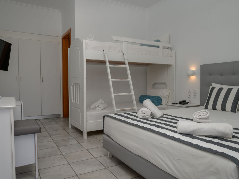 Hotelul dispune de 70 de camere ce sunt dotate cu aer conditionat (cu plata), TV telefon, frigider, uscator de par, balcon sau veranda cu vedere la mare, piscina sau gradina, pentru o vacanta reusita.