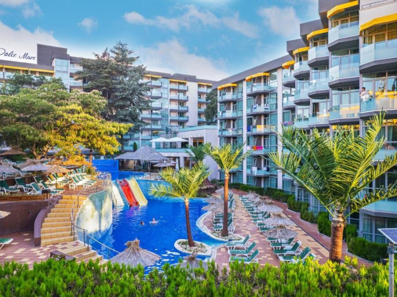 Hotel SH Dolce Mare.( ex Hotelul Mimosa) este situat la 250 m distanta de plaja privata a hotelului si in inima statiunii Nisipurile de Aur. Promenada si strazile comerciale cu numeroase magazine, cafenele, restaurante si locuri de divertisment sunt la doar 50 m. Facilitati Hotelul a fost construit in 2002, complet renovat in 2024, 2 blocuri, 6-7 etaje, 5 lifturi (2 dintre ele panoramice), 330 unitati. Hol spatios cu bar, receptie, bar de zi, seif in camere (plata), schimb valutar, serviciu de spalatorie (plata), restaurant cu terasa in aer liber, mehana (restaurant bulgaresc), 2 baruri la piscina, noua scena in aer liber pentru animatie si programe de spectacol si cinema in aer liber, loc de joaca de volei nou, sala de conferinte 100 - 120 locuri, centru spa cu echipamente moderne. Wi-Fi gratuit in hol si in camere. Nu sunt disponibile camere pentru persoanele cu dizabilitati. Fier de calcat la cerere/gratuit. Cazare Check-in: dupa ora 15:00 Check-out: pana la ora 11:00 Double rooms (max 2+1/3+0), aprox. 20-22 mp. Doua paturi obisnuite si patul suplimentar o canapea. Vedere la parc sau la mare. Double large rooms (min. 2+0; max 2+2/3+1) aprox. 26 mp. Doua paturi obisnuite cu 2 paturi suplimentare /un scaun de canapea/. Vedere la parc sau la mare. Este posibila o singura utilizare. Studio(min. 2+0; max 2+2 sau 3+1/4+0), aprox. 40 mp. Destul de mai mare decat camerele duble mari si duble, mobilate ca si camerele, cu un dormitor /pat king - size/ si 1 pat obisnuit, 1 canapea extensibila dubla si 1 canapea de o persoana. Vedere la piscina. 1 - bedroom Apartments (min. 2+0; max 2+3/5+0). aprox. 43 mp. Mobilat ca si camerele, dar foarte spatios, cu dormitor separat /pat king-size/. In living - pat obisnuit, canapea extensibila de o persoana si canapea extensibila dubla. Doua bai cu dus. Vedere la parc. Toate unitatile sunt dotate cu A/C centralizat, TV satelit, mini frigider, telefon, baie cu dus si uscator de par, balcon mobilat. Wi-Fi (gratuit), cutie de valori (se plateste aproximativ 49 BGN/ 7 zile). Copii: 3 piscine pentru copii cu tobogane cu apa, piscina interioara - sectiune copii, club pentru copii de la 4-12 ani, animatie, 2 locuri de joaca, patuturi (gratuit/la cerere), scaune inalte in restaurant. Sport si divertisment Gratuit: 2 piscine (cu tobogane cu apa) si o terasa la soare cu sezlonguri si umbrele, 1 piscina interioara, prosoape (depozit la receptie). Noul loc de joaca pentru volei. Fitness, tenis de masa, animatie sportiva in timpul zilei: darts, volei pe apa si baschet, gimnastica, spectacole seara de 6 ori pe saptamana. Internet Wi-Fi in holul hotelului si in toate camerele. Contra cost: tratamente wellness si spa in Wellness Center & SPA, masaje, sauna, baie turceasca, salon de infrumusetare, coafor, servicii medicale. Seif in camera, biliard. Animalele de companie nu se accepta. Parcarea este o parcare privata cu plata, in functie de disponibilitatea locurilor. (18 BGN pe zi/iunie si septembrie; 25 BGN pe zi in iulie si august). Hotelul isi rezerva dreptul de a face modificari si completari la program in orice moment si de a modifica preturile pentru serviciile suplimentare in orice moment https://splendidomare-hotel.net/en/