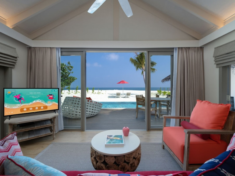 Located in Maamigili Island, Cora Cora Maldives-Premium All-Inclusive is a 5-star beachfront resort in Raa Atoll. It offers all-inclusive rates with meals and beverages included at onsite dining establishments, though charges may apply for some options. The resort features a private beach, outdoor swimming pool, fitness centre, and complimentary wireless internet access throughout the property. Guests can enjoy international cuisine at one of the 4 restaurants, including Tazaa®, and relax at the bar/lounge, beach bar, or poolside bar. A complimentary reception is held daily, and a complimentary buffet breakfast is served. The resort also offers a full-service spa with massages, a 24-hour front desk, dry cleaning/laundry services, a kids' club, an arcade/game room, and babysitting/childcare (surcharge). Airport transfers are available for a surcharge. The 100 individually decorated guestrooms feature fireplaces or private pools, Smart televisions, down comforters, premium bedding, phones, safes, and desks. Activities such as billiards, table tennis, and snorkeling are available. The Cora Cora Maldives is a hotel.