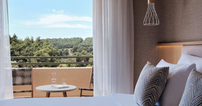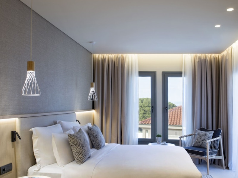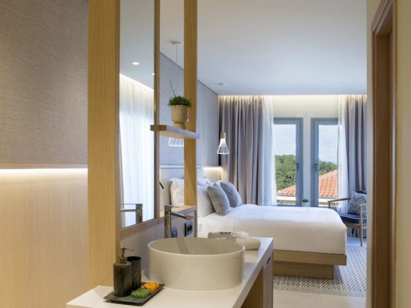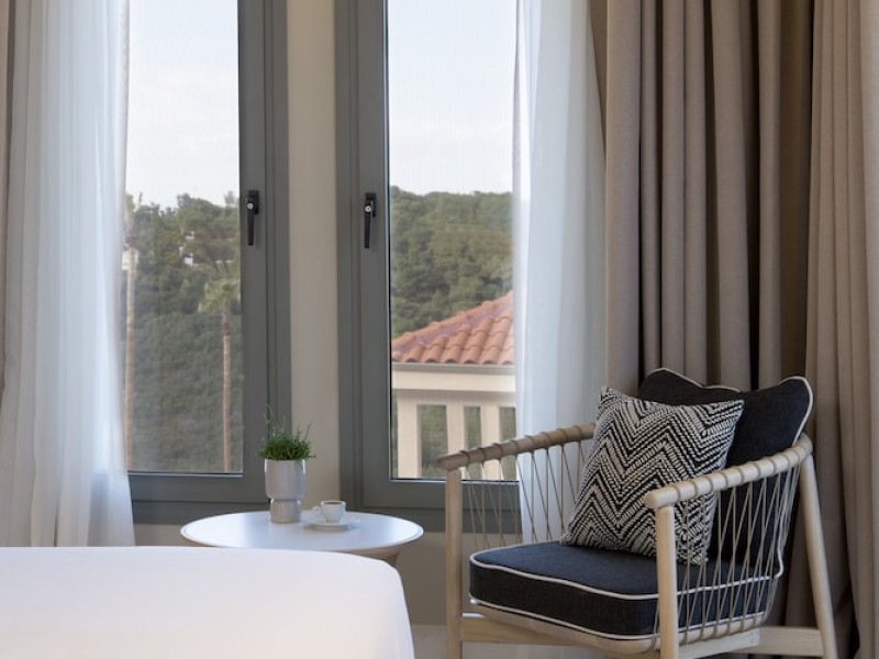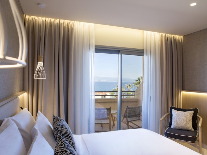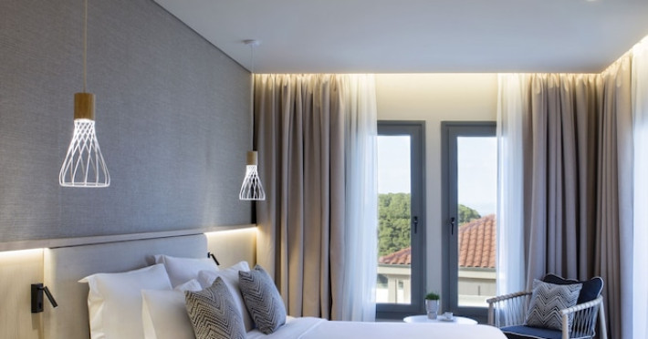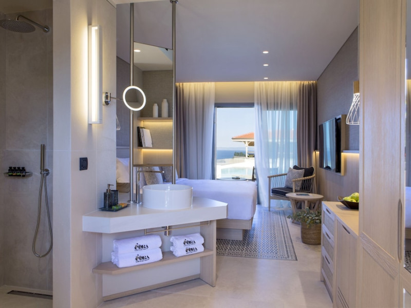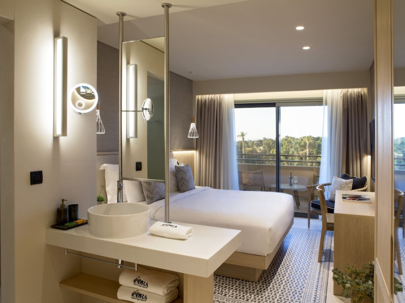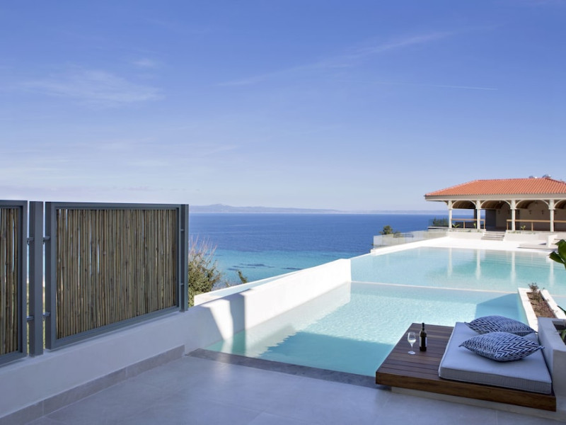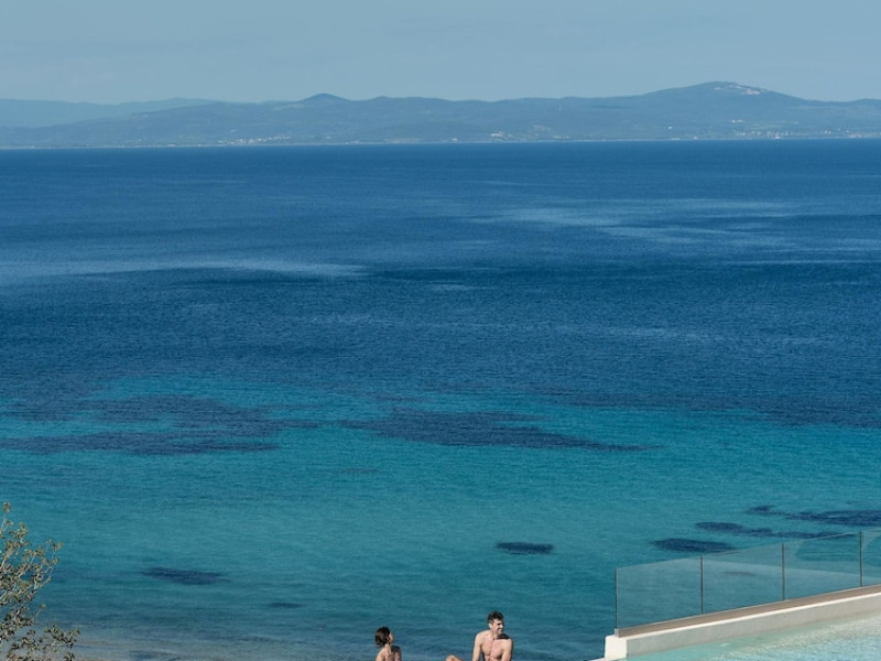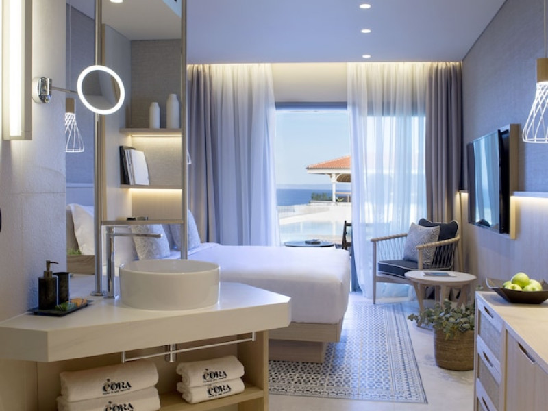 Located in Afitos, Chalkidiki, the 5-star Cora Hotel & Spa offers a blend of contemporary comfort and natural beauty with a private beach area. The hotel features a seasonal outdoor pool, health club, garden, terrace, and a shared lounge. Guests can enjoy complimentary WiFi throughout the property. The hotel offers 181 air-conditioned rooms, each equipped with a desk, coffee machine, refrigerator, minibar, safety deposit box, flat-screen TV, and a private bathroom with a shower, rainfall showerhead, and designer toiletries. Rooms also include a memory foam bed with down comforters and premium bedding. Some rooms offer balconies and sea views. Dining options include Ertha Main Restaurant and a coffee shop/cafe, with room service available during limited hours. Guests can enjoy a complimentary buffet breakfast daily. The hotel has multiple bars, including a beach bar and a poolside bar. Additional amenities include a 24-hour front desk, concierge services, luggage storage, dry cleaning/laundry services, and free self-parking. Bike and car hire are available. The hotel restaurant serves Italian, Mediterranean, and international cuisine, with vegetarian, dairy-free, and vegan options available upon request. Airport transfers, taxi, car hire and shuttle offerings are available. The property is closed between December 12 and April 30. Nearby attractions include the Folklore Museum of Afitos and Varkes Beach. The Cora Hotel and Spa is a hotel.