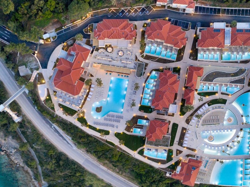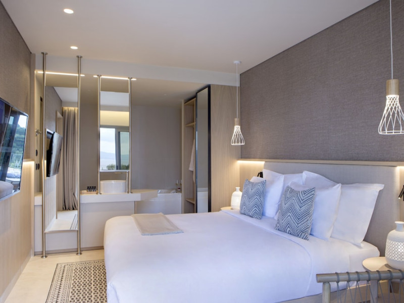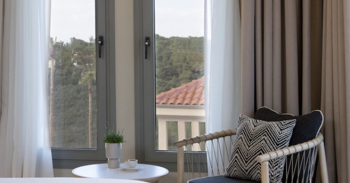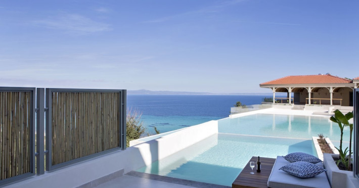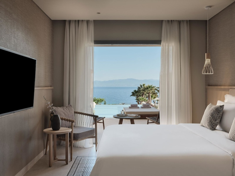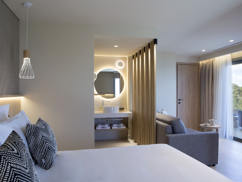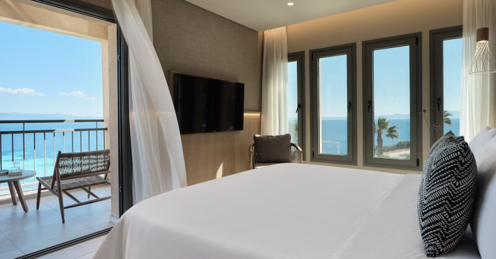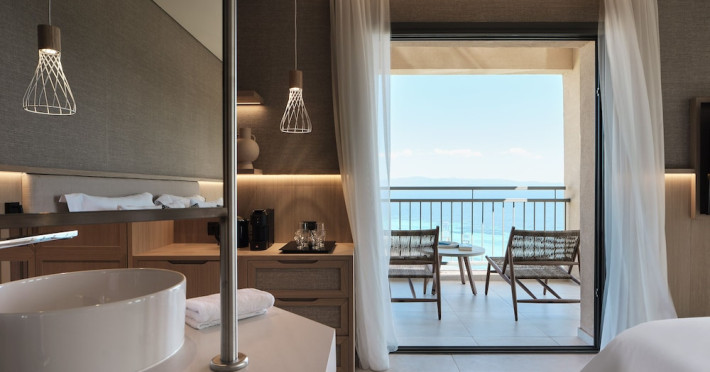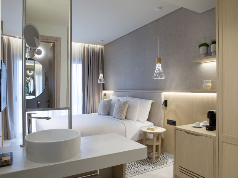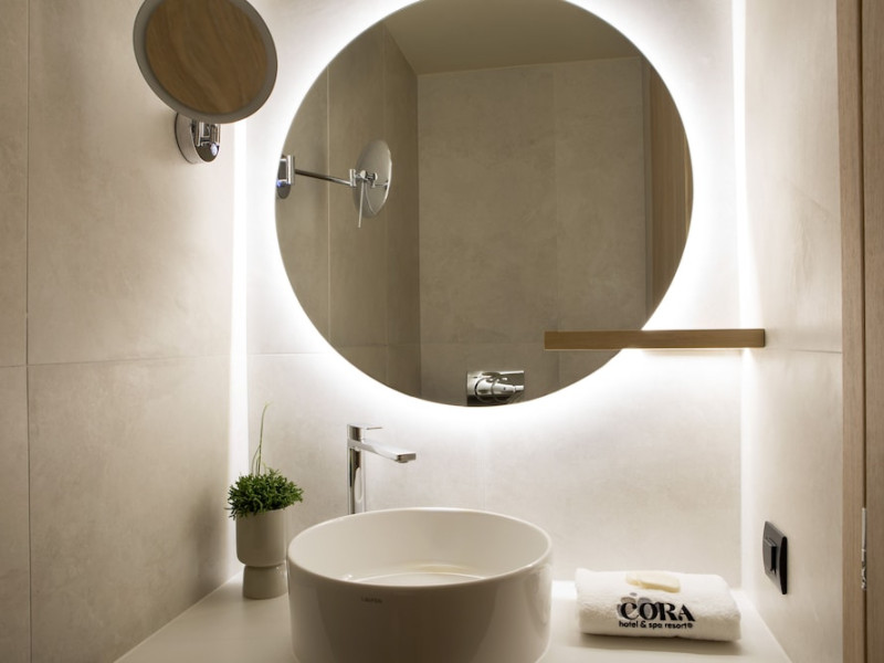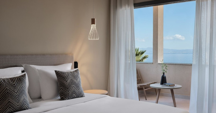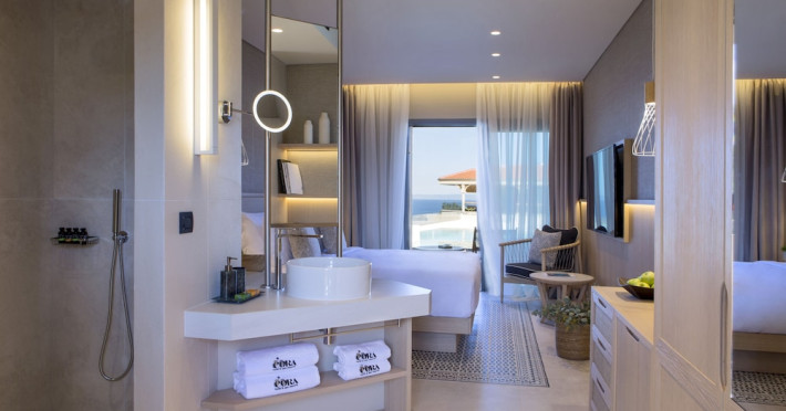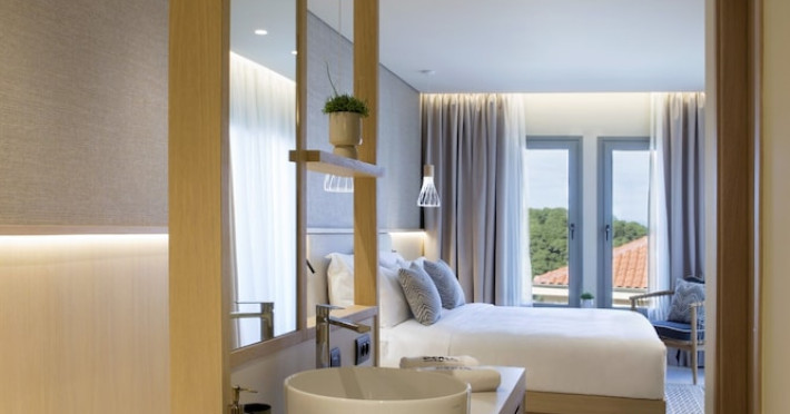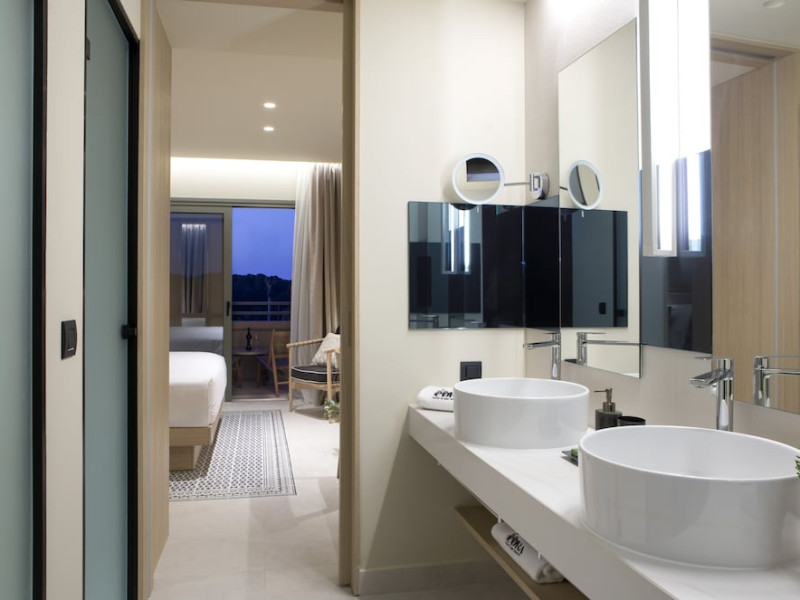Located in Afitos, Chalkidiki, the 5-star Cora Hotel & Spa offers a blend of contemporary comfort and natural beauty with a private beach area. The hotel features a seasonal outdoor pool, health club, garden, terrace, and a shared lounge. Guests can enjoy complimentary WiFi throughout the property. The hotel offers 181 air-conditioned rooms, each equipped with a desk, coffee machine, refrigerator, minibar, safety deposit box, flat-screen TV, and a private bathroom with a shower, rainfall showerhead, and designer toiletries. Rooms also include a memory foam bed with down comforters and premium bedding. Some rooms offer balconies and sea views. Dining options include Ertha Main Restaurant and a coffee shop/cafe, with room service available during limited hours. Guests can enjoy a complimentary buffet breakfast daily. The hotel has multiple bars, including a beach bar and a poolside bar. Additional amenities include a 24-hour front desk, concierge services, luggage storage, dry cleaning/laundry services, and free self-parking. Bike and car hire are available. The hotel restaurant serves Italian, Mediterranean, and international cuisine, with vegetarian, dairy-free, and vegan options available upon request. Airport transfers, taxi, car hire and shuttle offerings are available. The property is closed between December 12 and April 30. Nearby attractions include the Folklore Museum of Afitos and Varkes Beach. The Cora Hotel and Spa is a hotel.