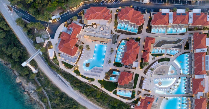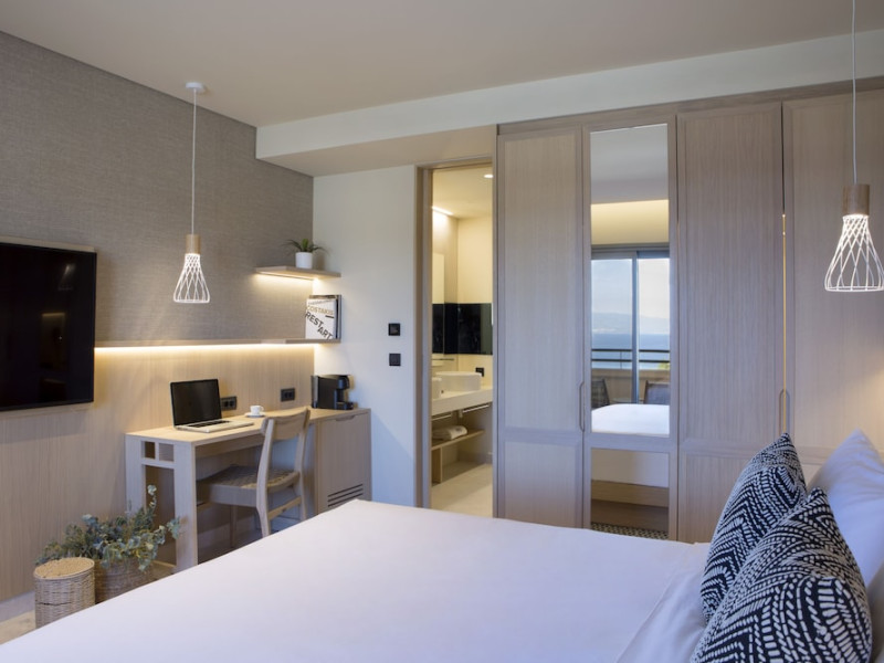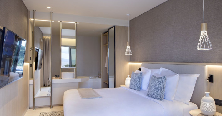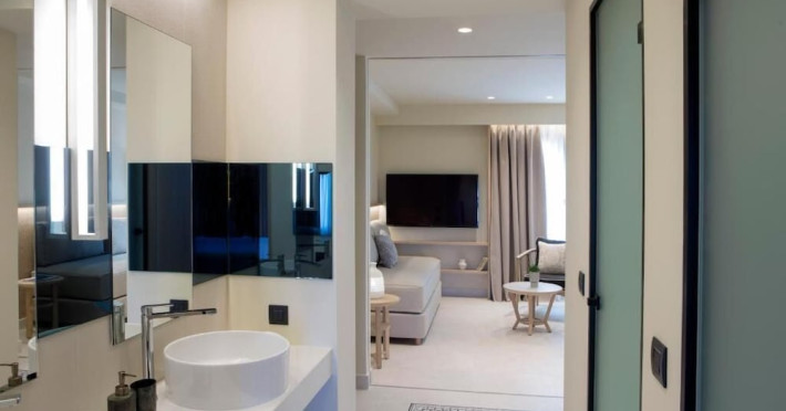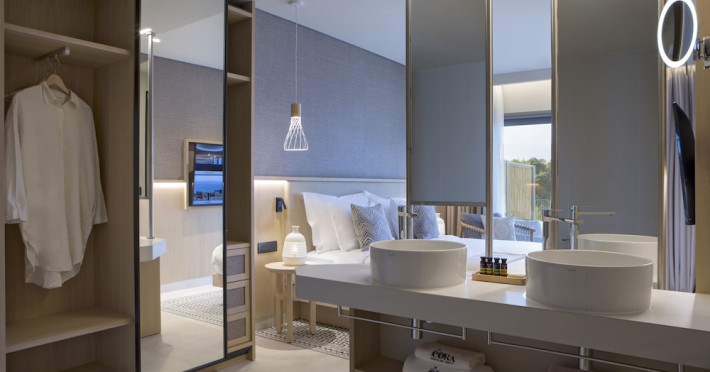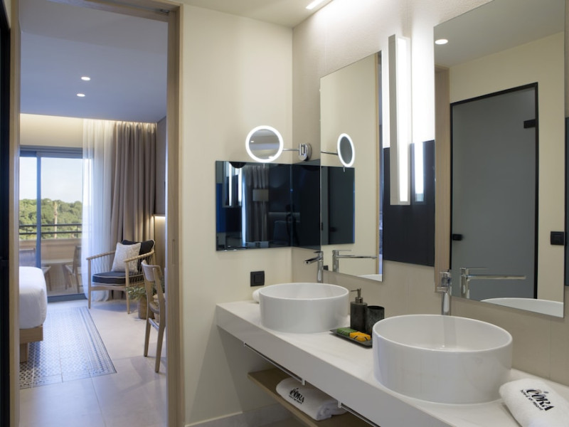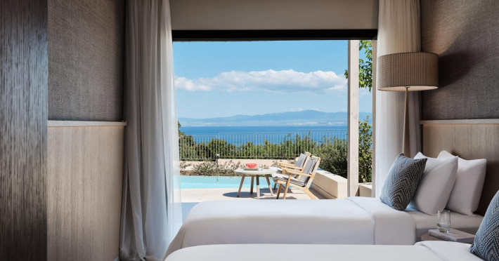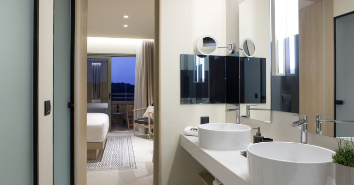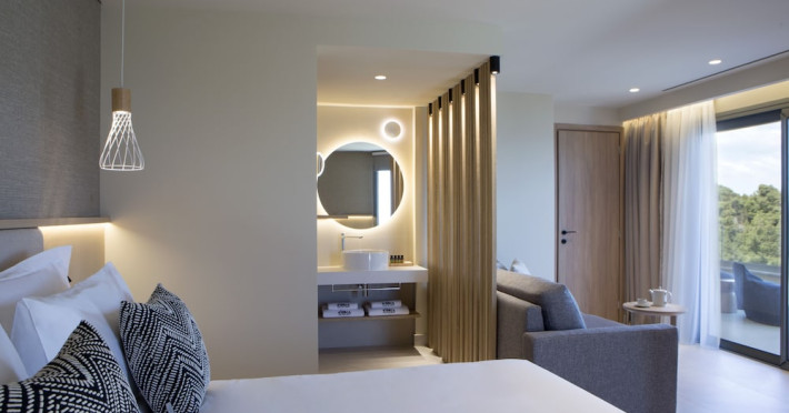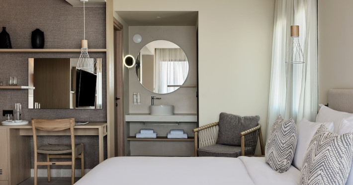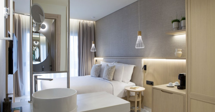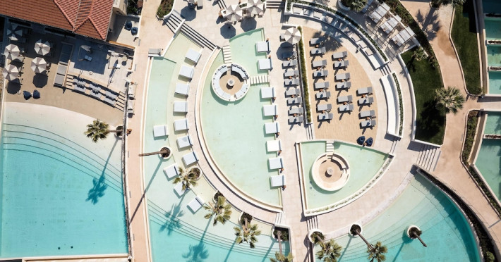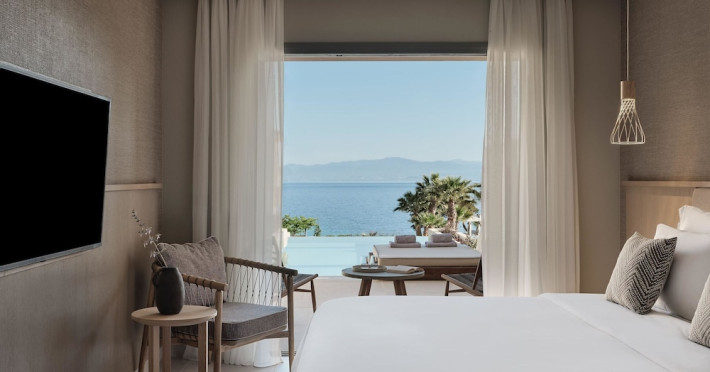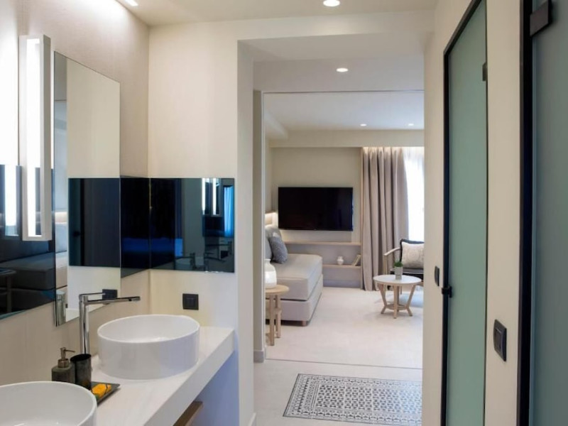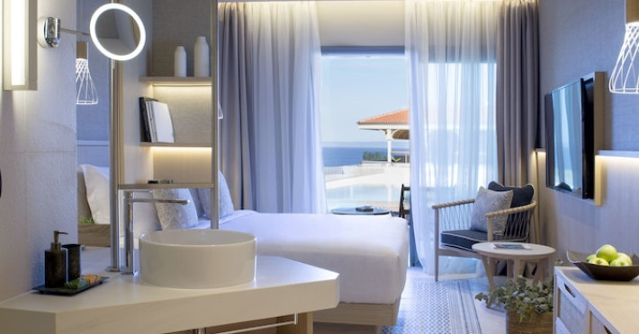 Located in Afitos, Chalkidiki, the 5-star Cora Hotel & Spa offers a blend of contemporary comfort and natural beauty with a private beach area. The hotel features a seasonal outdoor pool, health club, garden, terrace, and a shared lounge. Guests can enjoy complimentary WiFi throughout the property. The hotel offers 181 air-conditioned rooms, each equipped with a desk, coffee machine, refrigerator, minibar, safety deposit box, flat-screen TV, and a private bathroom with a shower, rainfall showerhead, and designer toiletries. Rooms also include a memory foam bed with down comforters and premium bedding. Some rooms offer balconies and sea views. Dining options include Ertha Main Restaurant and a coffee shop/cafe, with room service available during limited hours. Guests can enjoy a complimentary buffet breakfast daily. The hotel has multiple bars, including a beach bar and a poolside bar. Additional amenities include a 24-hour front desk, concierge services, luggage storage, dry cleaning/laundry services, and free self-parking. Bike and car hire are available. The hotel restaurant serves Italian, Mediterranean, and international cuisine, with vegetarian, dairy-free, and vegan options available upon request. Airport transfers, taxi, car hire and shuttle offerings are available. The property is closed between December 12 and April 30. Nearby attractions include the Folklore Museum of Afitos and Varkes Beach. The Cora Hotel and Spa is a hotel.
