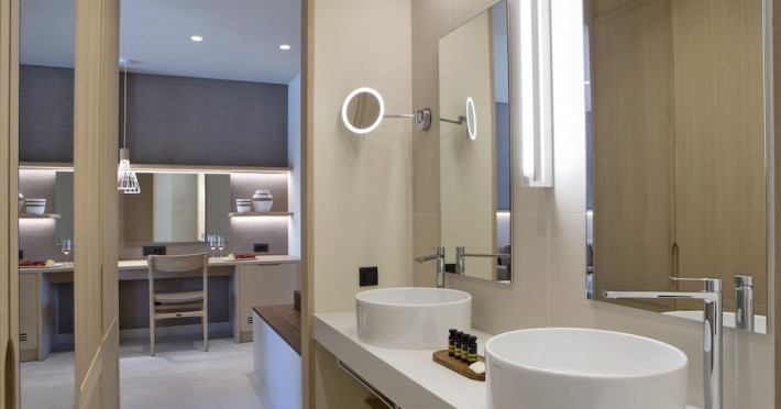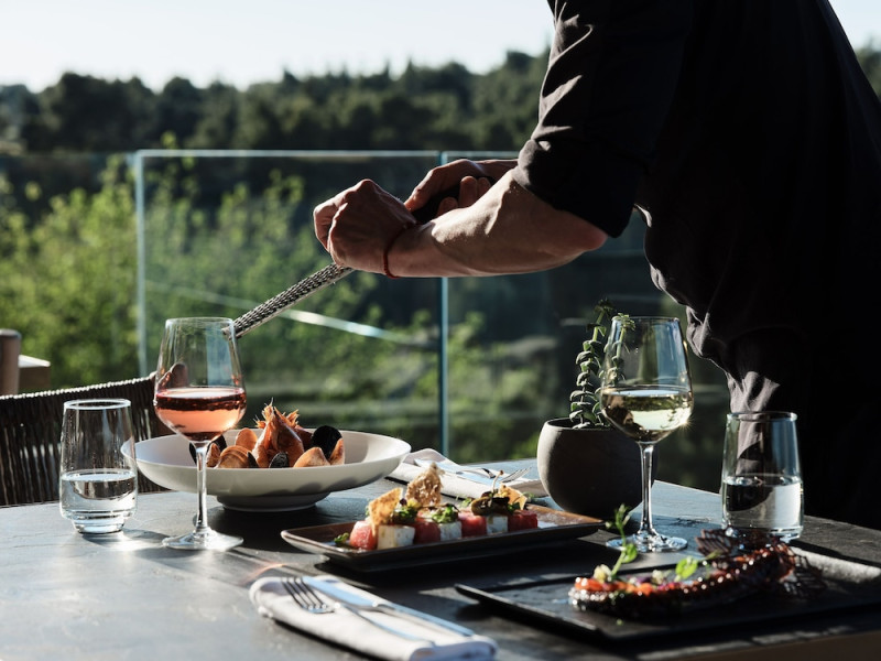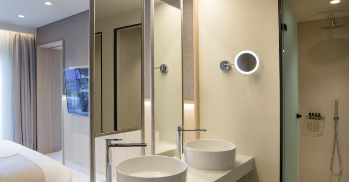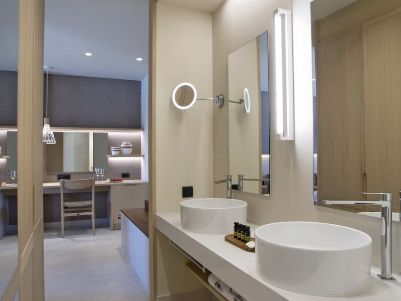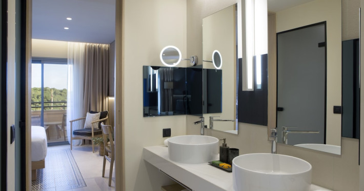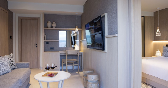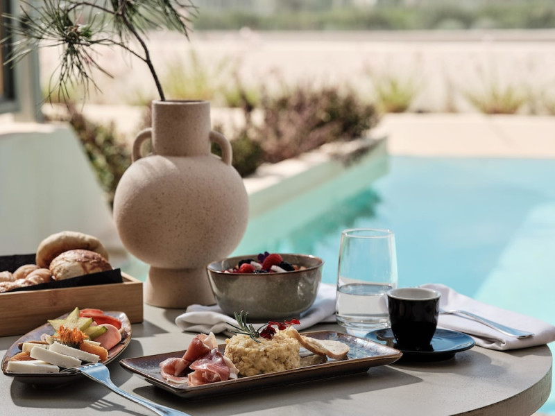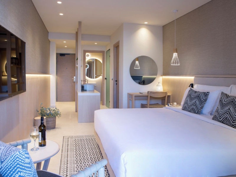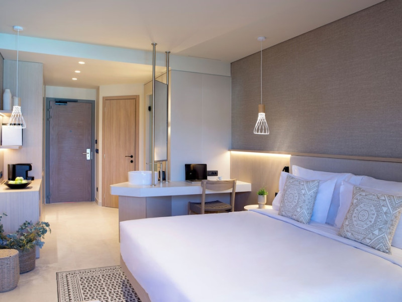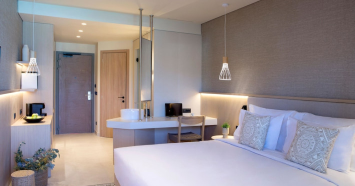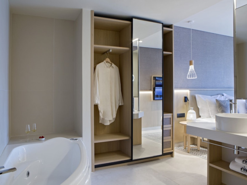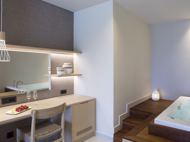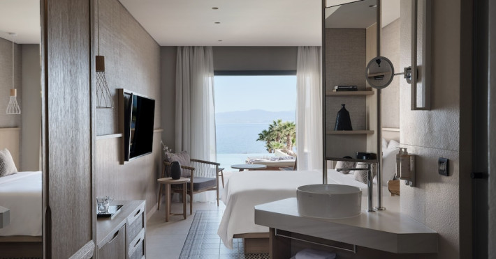 Located in Afitos, Chalkidiki, the 5-star Cora Hotel & Spa offers a blend of contemporary comfort and natural beauty with a private beach area. The hotel features a seasonal outdoor pool, health club, garden, terrace, and a shared lounge. Guests can enjoy complimentary WiFi throughout the property. The hotel offers 181 air-conditioned rooms, each equipped with a desk, coffee machine, refrigerator, minibar, safety deposit box, flat-screen TV, and a private bathroom with a shower, rainfall showerhead, and designer toiletries. Rooms also include a memory foam bed with down comforters and premium bedding. Some rooms offer balconies and sea views. Dining options include Ertha Main Restaurant and a coffee shop/cafe, with room service available during limited hours. Guests can enjoy a complimentary buffet breakfast daily. The hotel has multiple bars, including a beach bar and a poolside bar. Additional amenities include a 24-hour front desk, concierge services, luggage storage, dry cleaning/laundry services, and free self-parking. Bike and car hire are available. The hotel restaurant serves Italian, Mediterranean, and international cuisine, with vegetarian, dairy-free, and vegan options available upon request. Airport transfers, taxi, car hire and shuttle offerings are available. The property is closed between December 12 and April 30. Nearby attractions include the Folklore Museum of Afitos and Varkes Beach. The Cora Hotel and Spa is a hotel.
