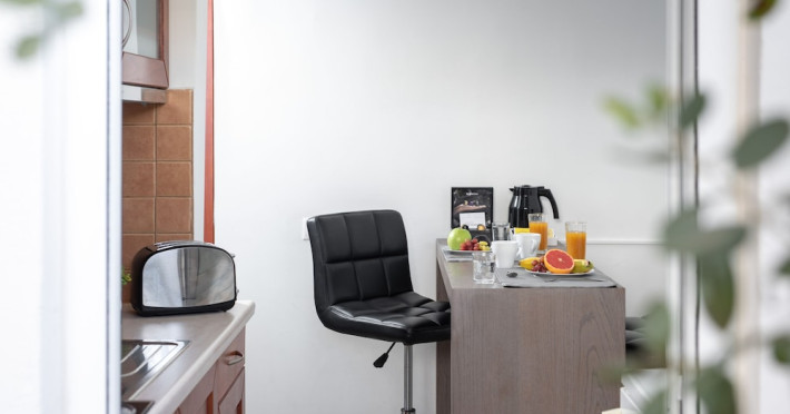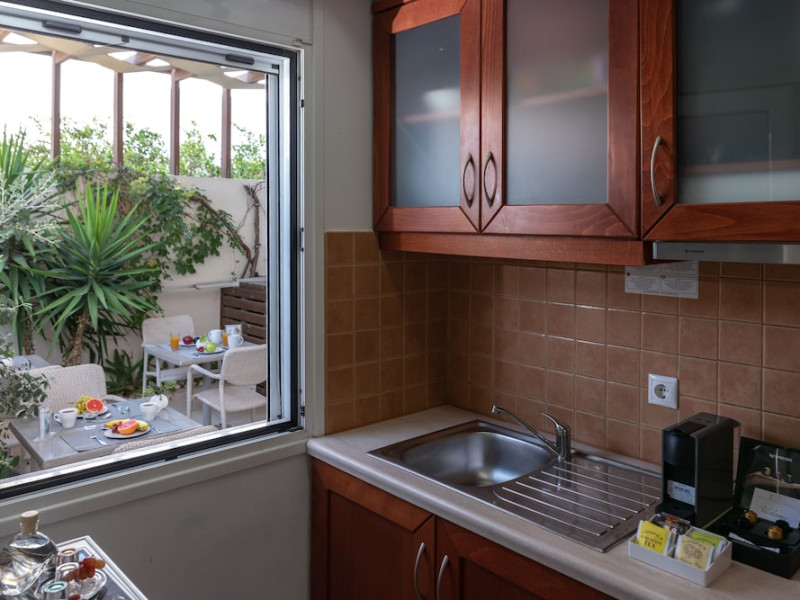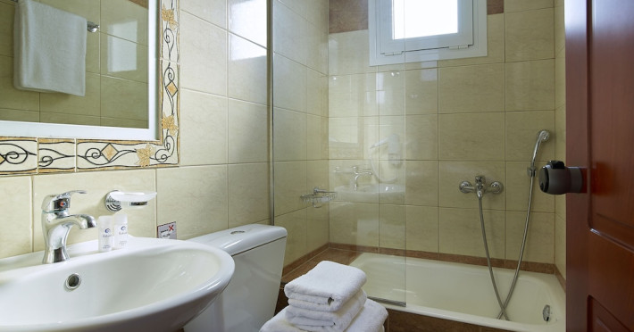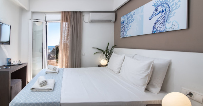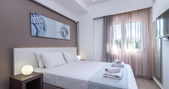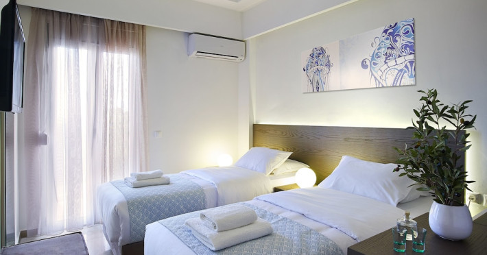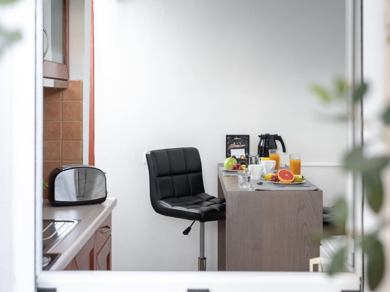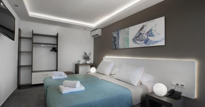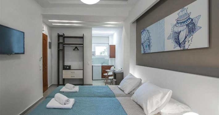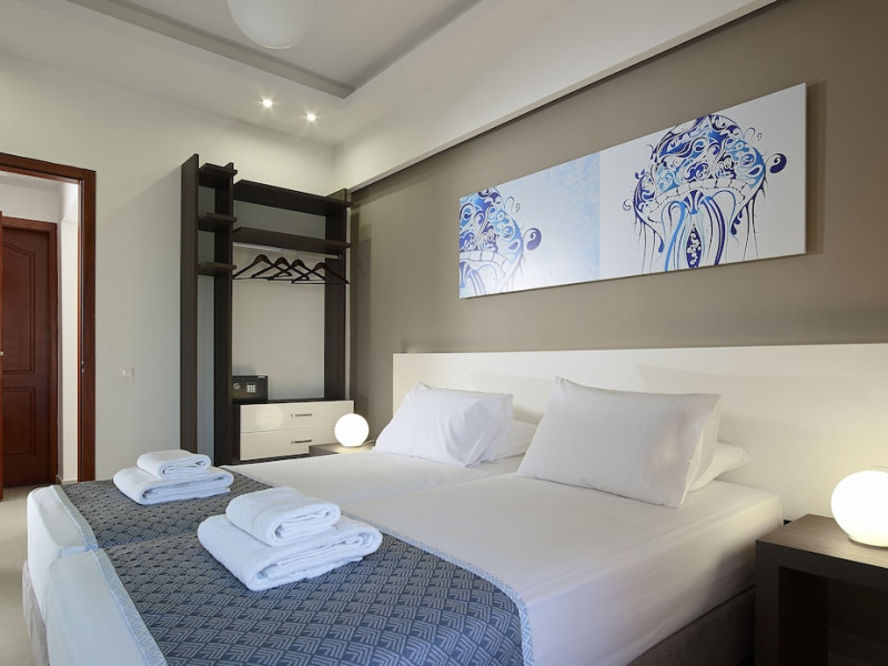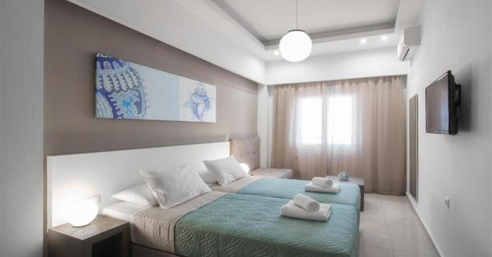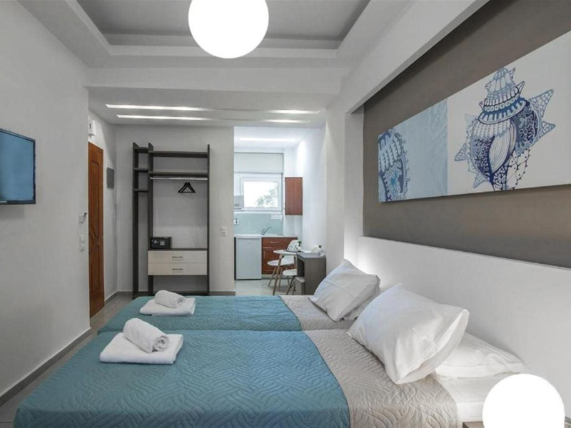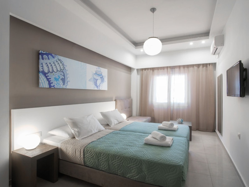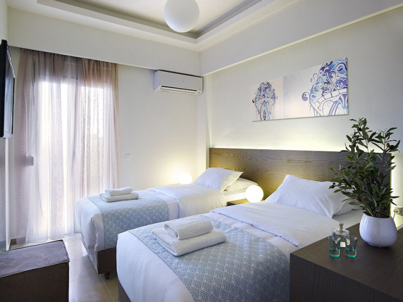 Facilities and services include air conditioning (extra charge) safety deposit box (extra charge), car parking, elevator, free wi-fi and telephone.Room features air conditioning(extra charge), bath/shower combo, cable/satellite TV, coffee/tea making facilities, daily housekeeping, hairdryer, private bathroom, safe in room, telephone, towels provided and wi-fi free.Address: Papamastoraki 5, 72200 Ierapetra, Greece.