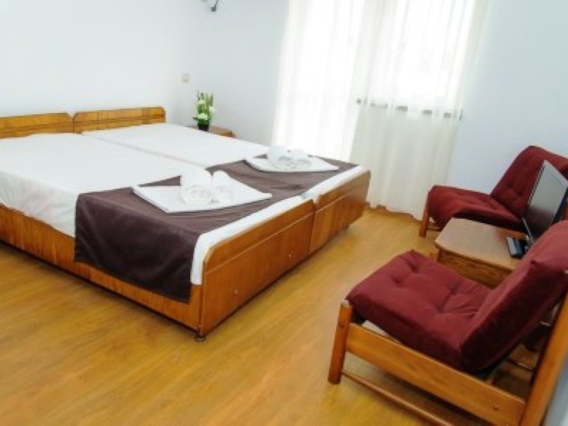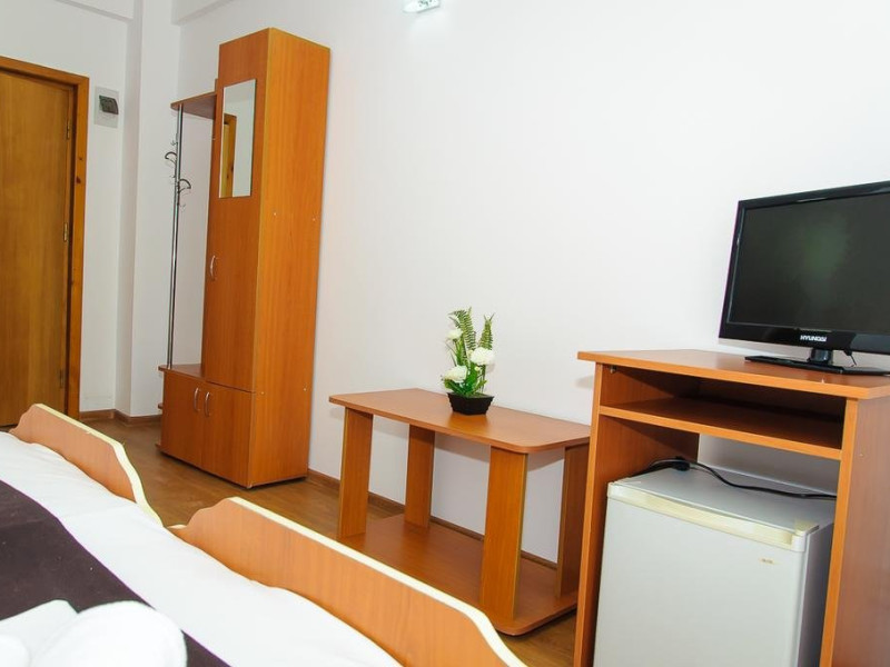 Dotari si servicii Hotelul este prevazut cu terasa de vara, unde se prepara minuturi la comanda, pizza, gelaterie, cofetarie, bar-de-zi. Restaurantul principal al hotelului este Restaurant Coralis, care se afla la 150 m distanta, in drumul catre plaja, unde se poate servi masa atat la linie de autoservire, cat si a la carte. Hotelul se afla intr-o zona linistita, fara trafic intens. Nu se accepta animale de companie. Servicii masa MASA: restaurant Coralis in sistem autoservire sau a la carte. PACHETELE CU MASA NU INCLUD MASA PENTRU COPIII CU VARSTA INTRE 0 - 9.99 ANI. Dotari camere Camerele sunt dotate cu TV, racitor, aer conditionat, internet, uscator par, telefon, terasa de vara, bar-de-zi, gelaterie, cofetarie. Facilitati copii In camera cu 2 adulti: -0-11.99 ani beneficiaza de gratuitate, fara pat suplimentar; -peste 12 ani beneficiaza de gratuitate, fara pat suplimentar; - al doilea copil achita 50% din valoarea unui loc, doar daca se doreste pat suplimentar; contravaloarea cazarii poate fi inclusa in biletul de odihna; in cazul in care pe bilet nu este precizat faptul ca turistul a achitat valoarea cazarii pentru copii, acesta va plati la receptia hotelului suma respectiva, dar la tariful afisat la receptie.