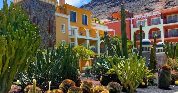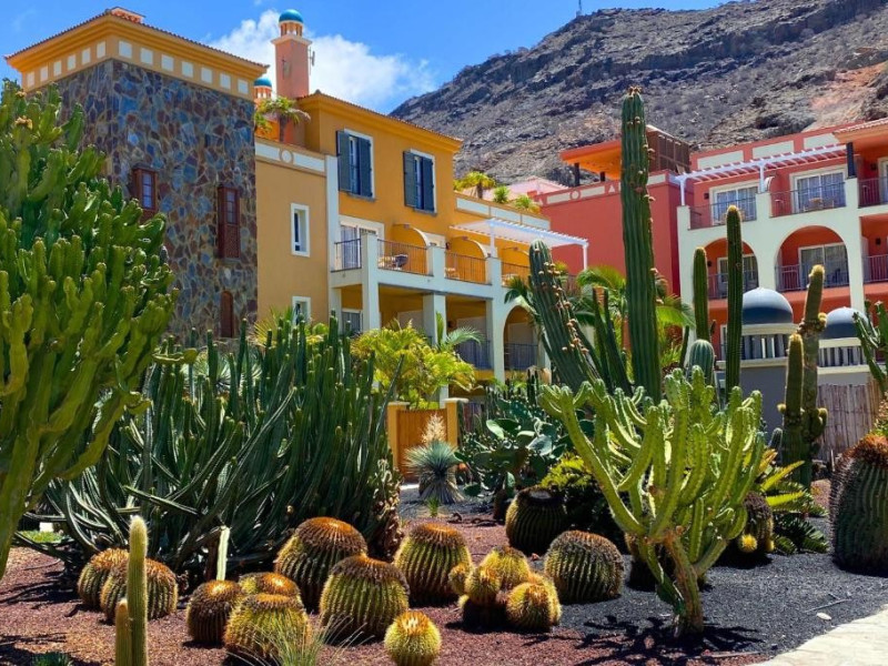 Hotel Cordial Mogan Playa, o capodopera arhitecturala situata in idilicul sat pescaresc Puerto de Mogan! In stilul unui sat canar, camerele si cele doua piscine spectaculoase sunt distribuite intr-o gradina botanica fascinanta, cu peste 450 de specii diferite de plante.