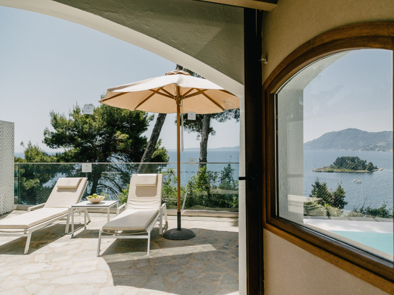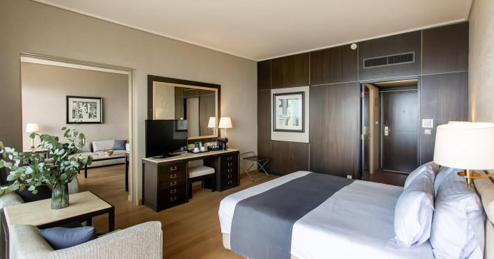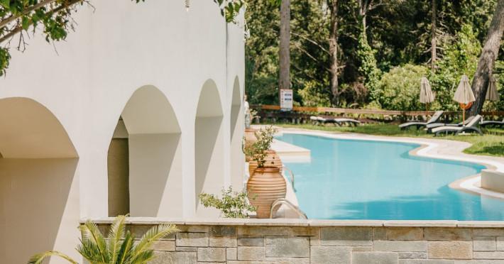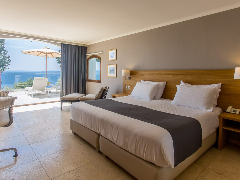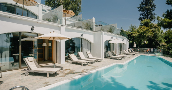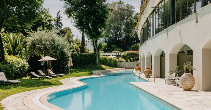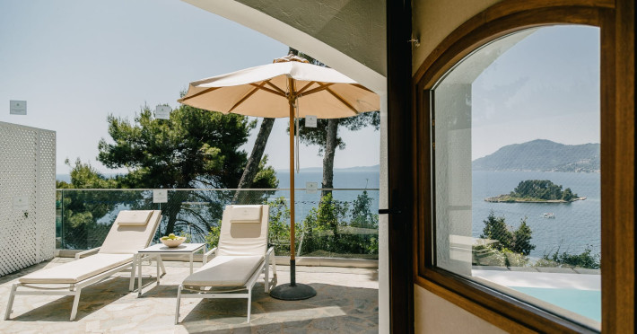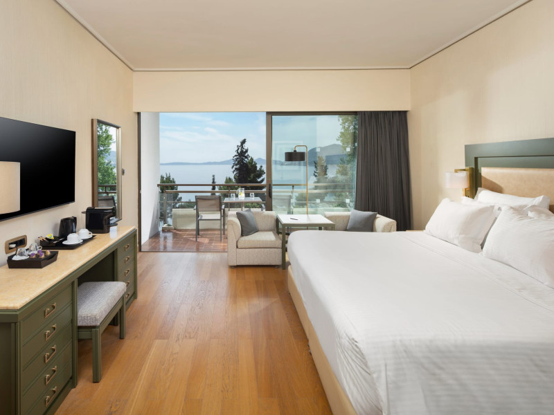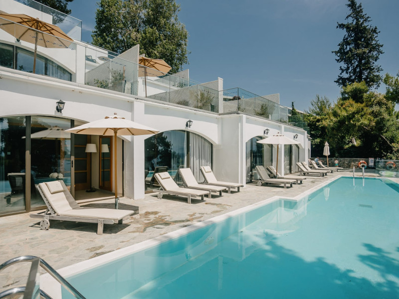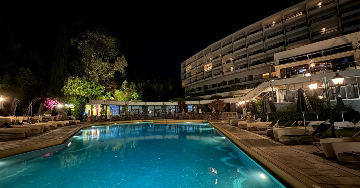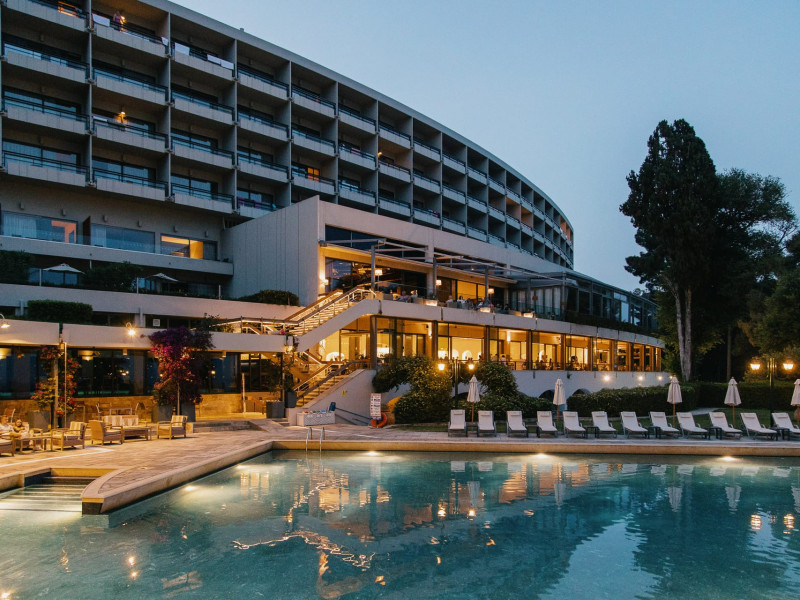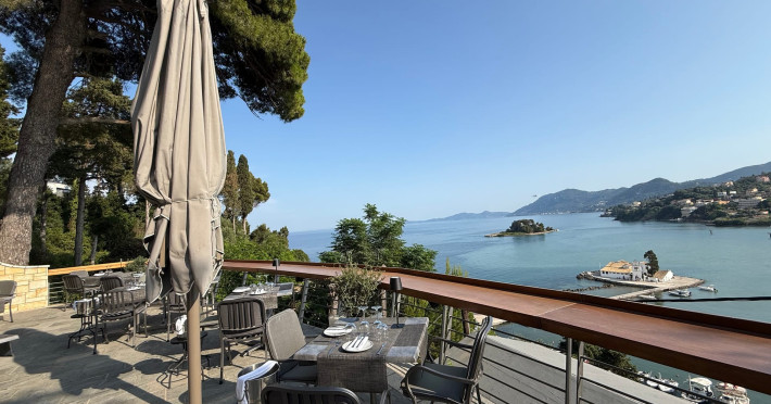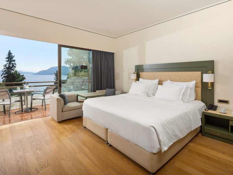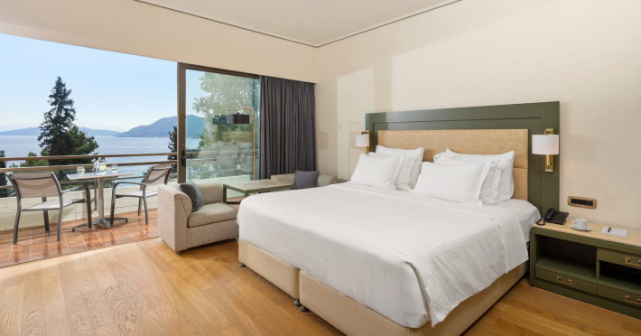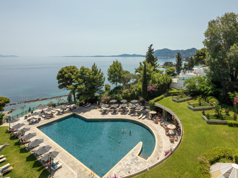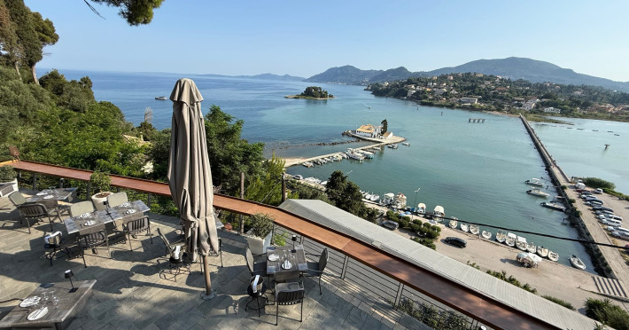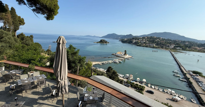 Luxurious accommodation in Corfu in the Historic Corfu Holiday Palace HotelThe 5-star Corfu Holiday Palace Hotel, ex Hilton International, is the only hotel with a direct view to the famous landmark of the island, Pontikonissi, and the monastery of Mary of Vlachernes, just 4km away from the old town of Corfu (UNESCO historical monument), built in Kanoni, in a 45,000 square meters area, on a peninsula which has been characterized as one of particular natural beauty with pine trees, cypresses, eucalyptuses and a magical beach with green-blue waters.