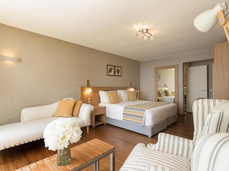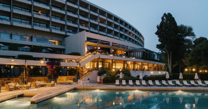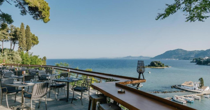 The 5-star Corfu Holiday Palace Hotel, ex Hilton International, is the only hotel with a direct view to the famous landmark of the island, Pontikonissi, and the monastery of Mary of Vlachernes, just 4km away from the old town of Corfu (UNESCO historical monument), built in Kanoni, in a 45,000 square meters area, on a peninsula which has been characterized as one of particular natural beauty with pine trees, cypresses, eucalyptuses and a magical beach with green-blue waters.