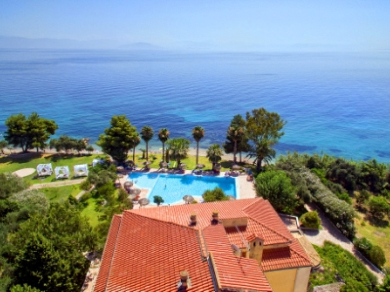 The hotel Corfu Senses Resort is located on the shore of the Ionian Sea in a picturesque corner of Greece - on the island of Corfu. Just a half an hour from the international Kapodistria airport, and you find yourself in the three-star hotel Corfu Senses Resort with its own outdoor pool, orange garden and a unique strip of beach with the purest sea water.