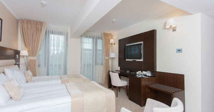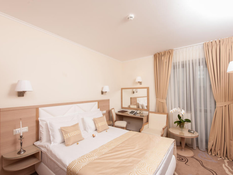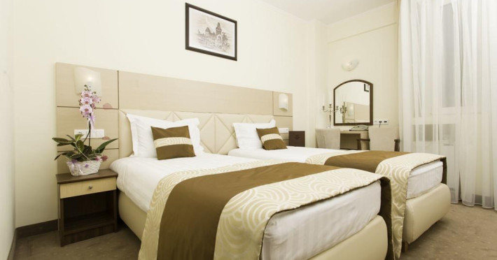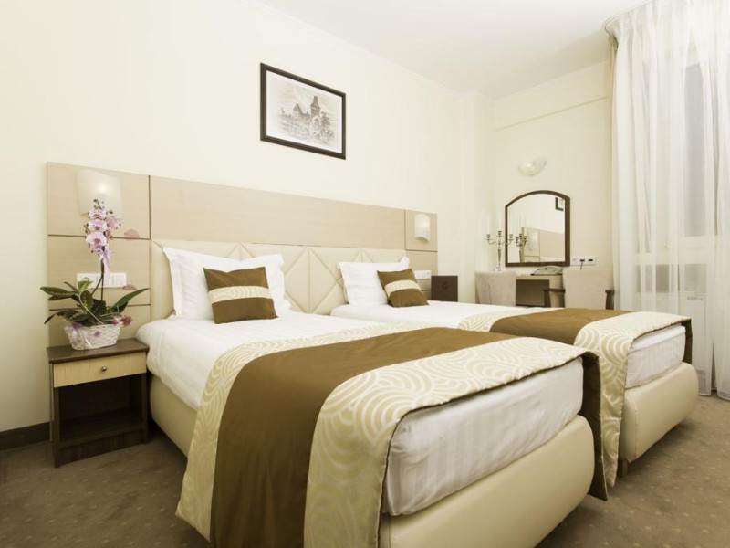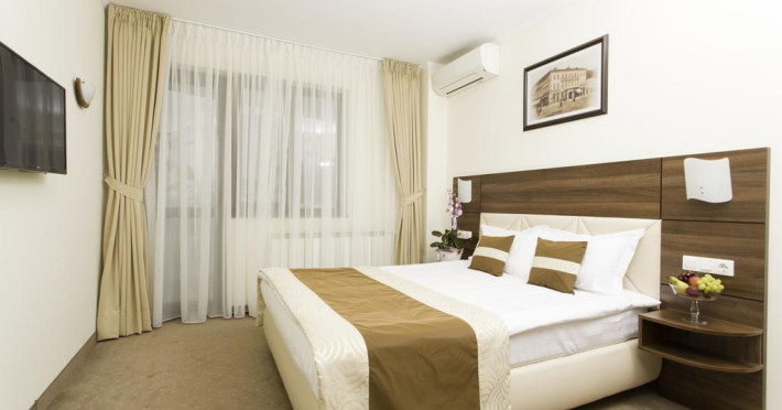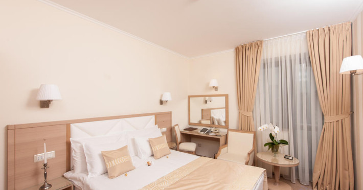 Hotel characteristics: ; 98 rooms Location: A great option for a journey on a budget - hotel «Hotel Coroana De Aur» is located in Bistrita. This hotel is located in the city center. In the morning, have a cup of coffee while looking at the city from the window At the hotel: You can stop by the bar. Taste the local cuisine and have a rest in the restaurant. Free Wi-Fi on the territory will help you to stay on-line. If you travel by car, thereâs a parking zone; The beauty and wellness services: a massage room. For participants of business meetings, there is a business center. Accessibility: there is an elevator/lift. At the guestsâ disposal, thereâs also a laundry, an ATM, ironing, a safe-deposit box and a concierge; The staff of the hotel speaks English, Spanish, Italian, German and French