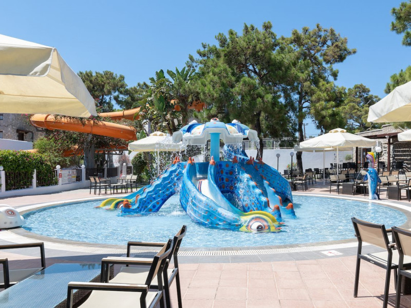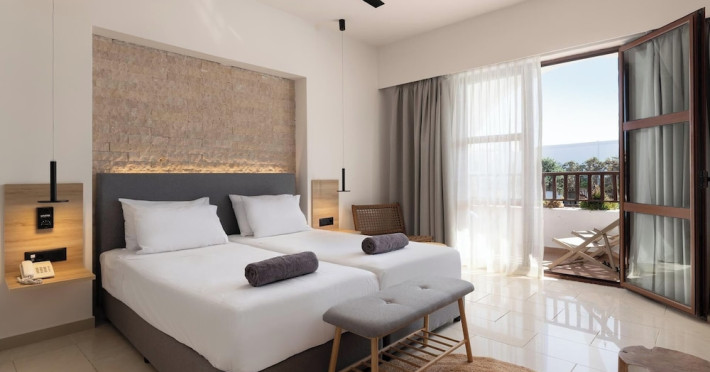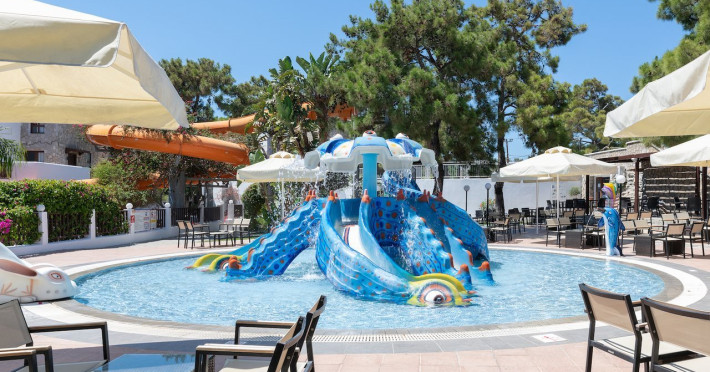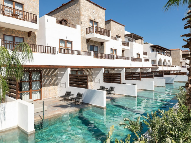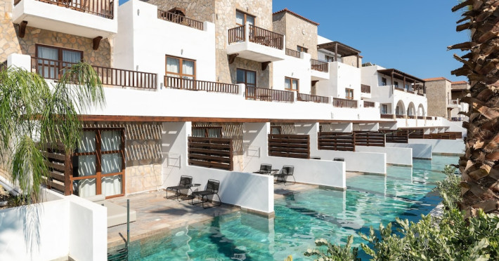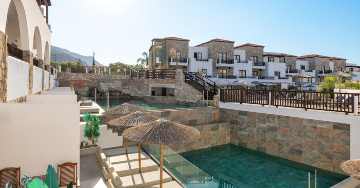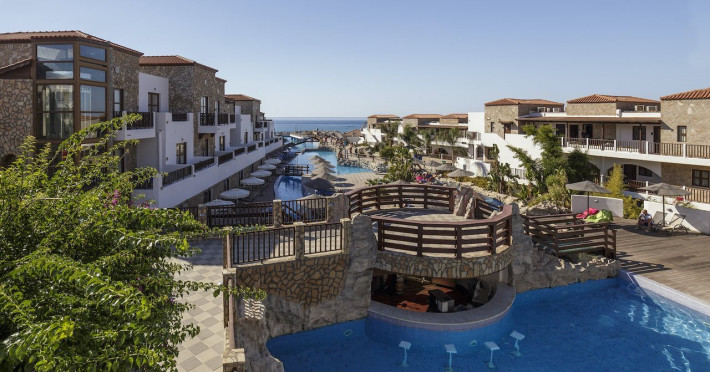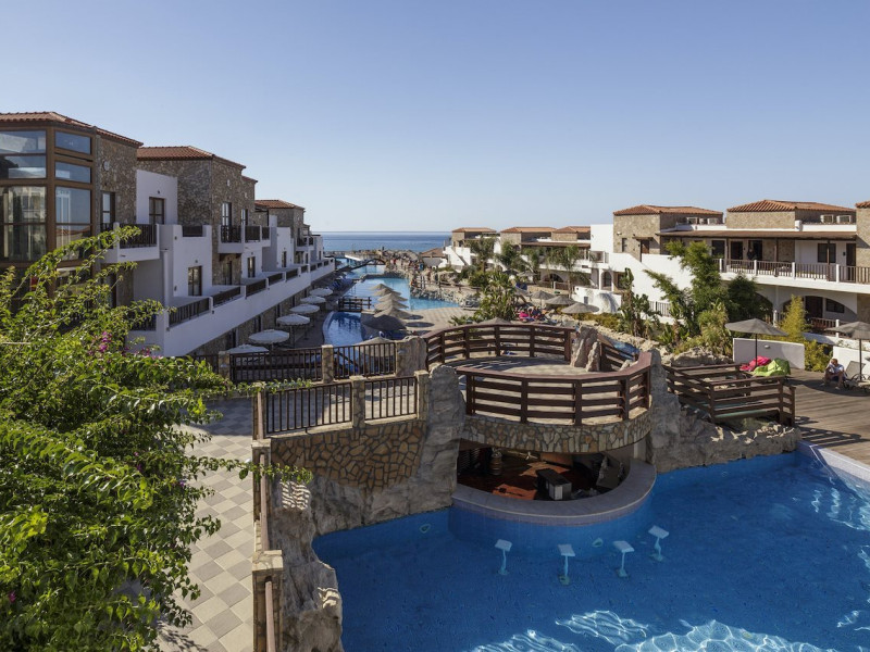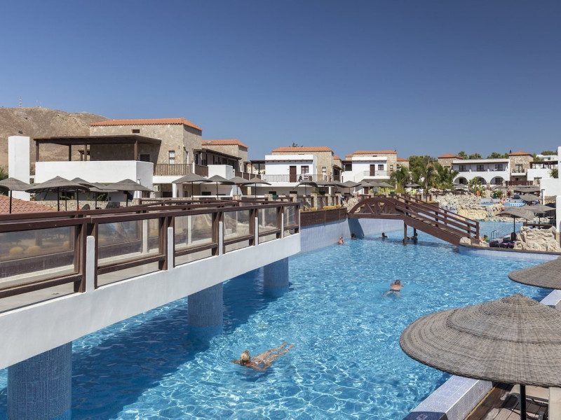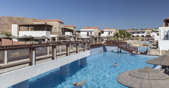 Located on the southeast beachfront of Rhodes, Greece, this all-inclusive hotel is designed in the authentic Aegean style, featuring stone, white surfaces, terracotta tiles, and wooden details. It offers a pool with bridges, rivers, and waterfalls. Guests can enjoy meals and beverages at 5 on-site restaurants and 4 bars/lounges. A complimentary buffet breakfast is served daily. The 290 air-conditioned rooms feature minibars, espresso makers, private balconies or patios, 50-inch flat-screen televisions, and complimentary wireless internet access. Private bathrooms offer showers, complimentary toiletries, and hair dryers. Amenities include express check-in/check-out and a 24-hour front desk. Guests can indulge in massages, body treatments, and facials. Lardos Beach is nearby. Diagoras Airport (RHO) is the nearest major airport.