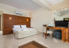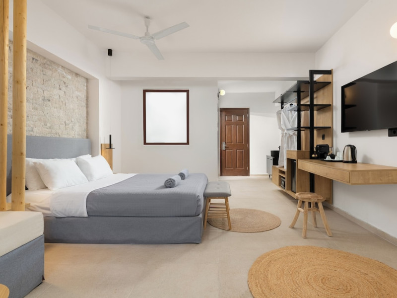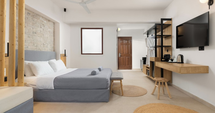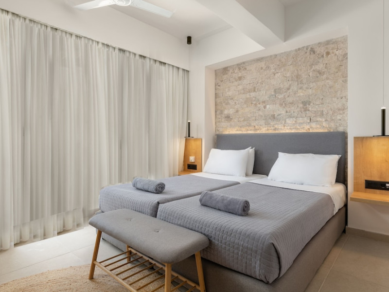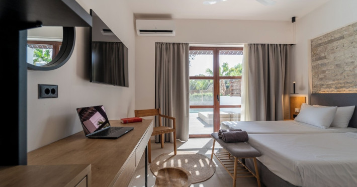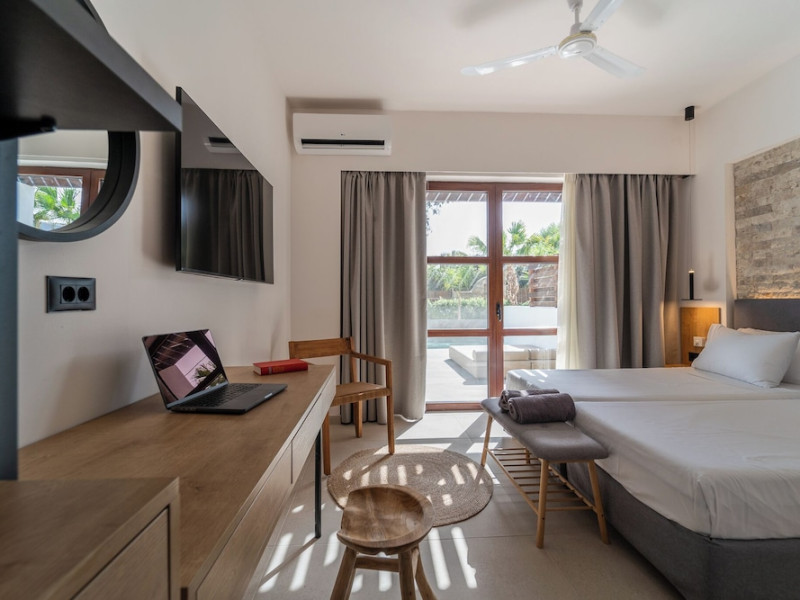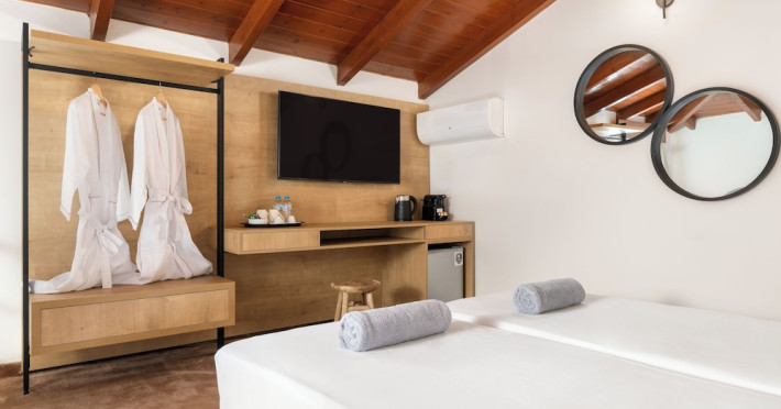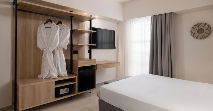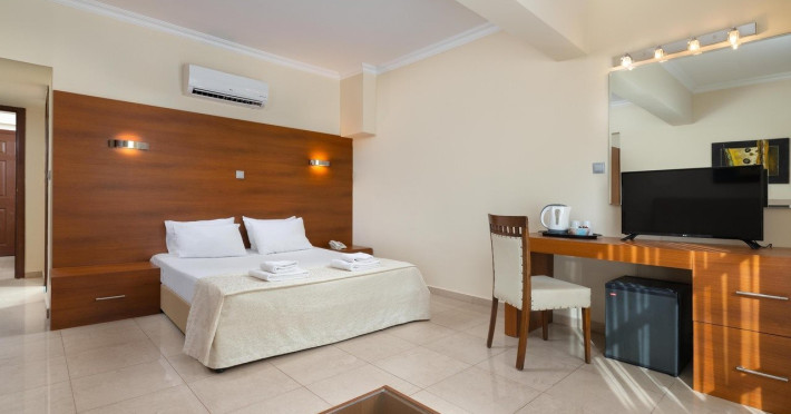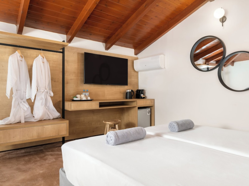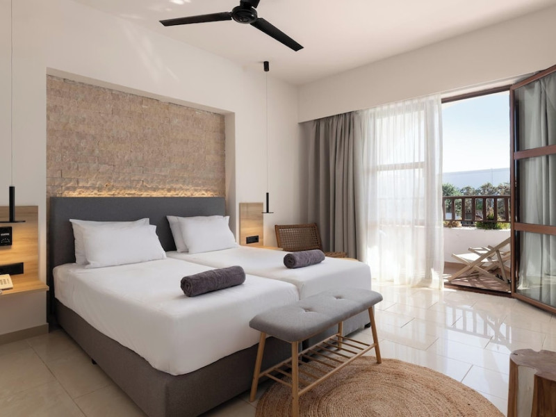 Located on the southeast beachfront of Rhodes, Greece, this all-inclusive hotel is designed in the authentic Aegean style, featuring stone, white surfaces, terracotta tiles, and wooden details. It offers a pool with bridges, rivers, and waterfalls. Guests can enjoy meals and beverages at 5 on-site restaurants and 4 bars/lounges. A complimentary buffet breakfast is served daily. The 290 air-conditioned rooms feature minibars, espresso makers, private balconies or patios, 50-inch flat-screen televisions, and complimentary wireless internet access. Private bathrooms offer showers, complimentary toiletries, and hair dryers. Amenities include express check-in/check-out and a 24-hour front desk. Guests can indulge in massages, body treatments, and facials. Lardos Beach is nearby. Diagoras Airport (RHO) is the nearest major airport.